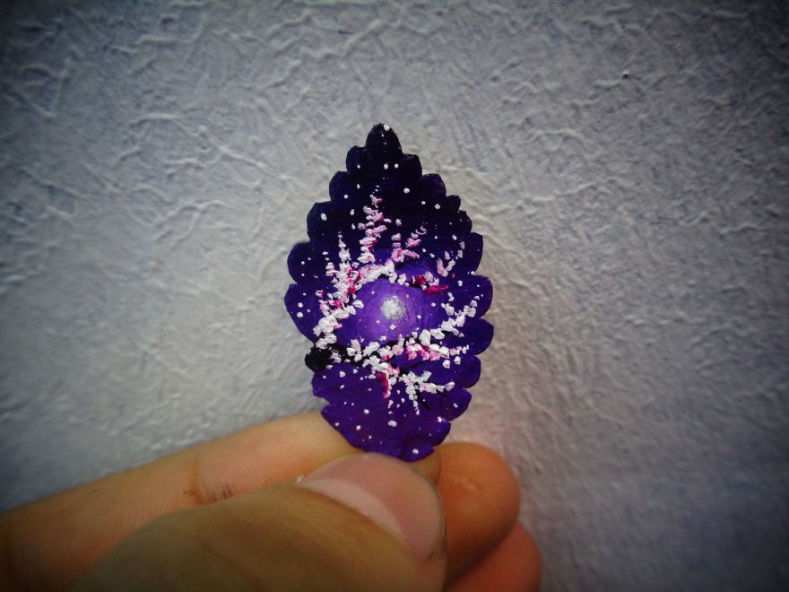 Mākslinieces Kristi Botkoveli un Beka Zaridze iedvesmojās no rudens krāsotajām krāšņajām lapām un nolēma pašas veidot krāšņus mākslas darbus uz kļavas lapām.