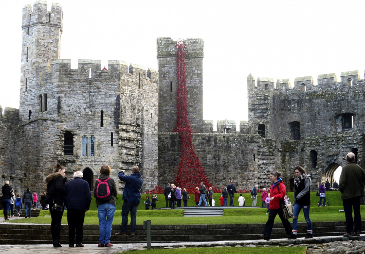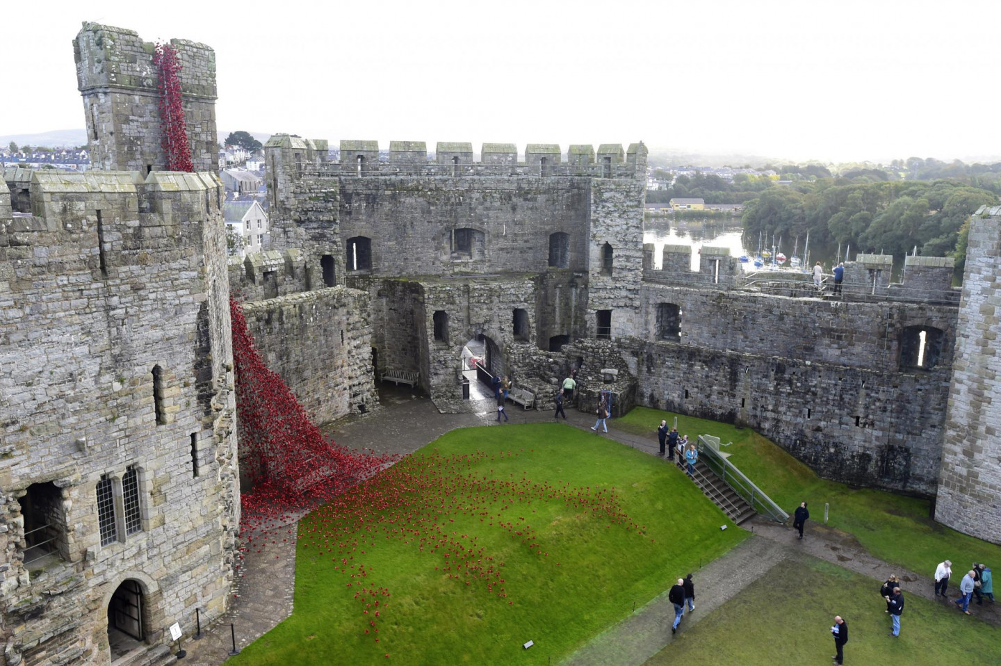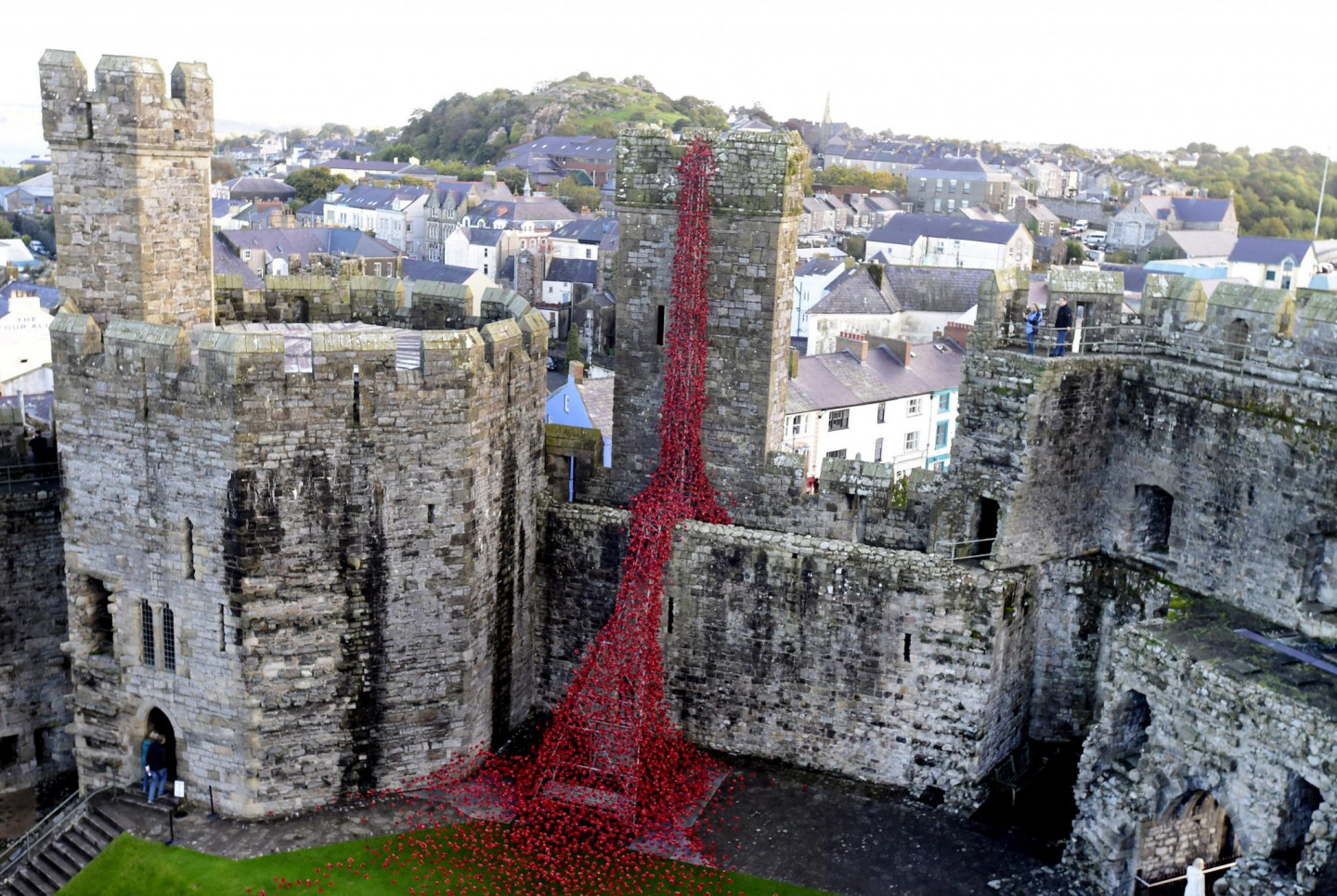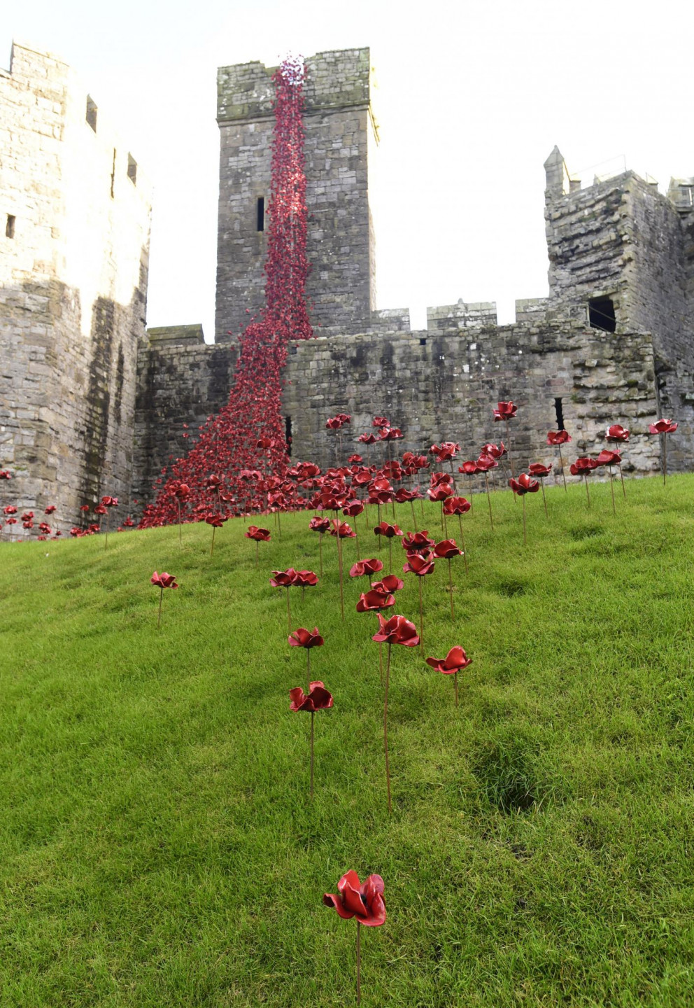 Kernarfonas pilī izvietotas tūkstošiem no keramikas veidotas magones.