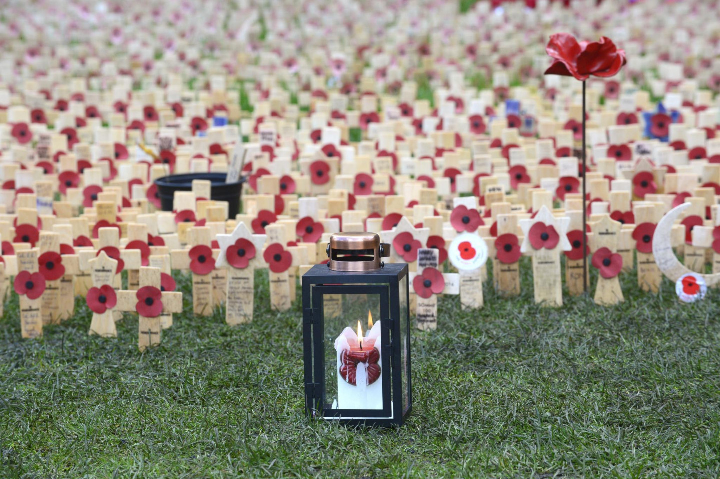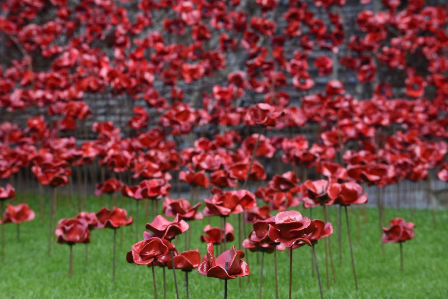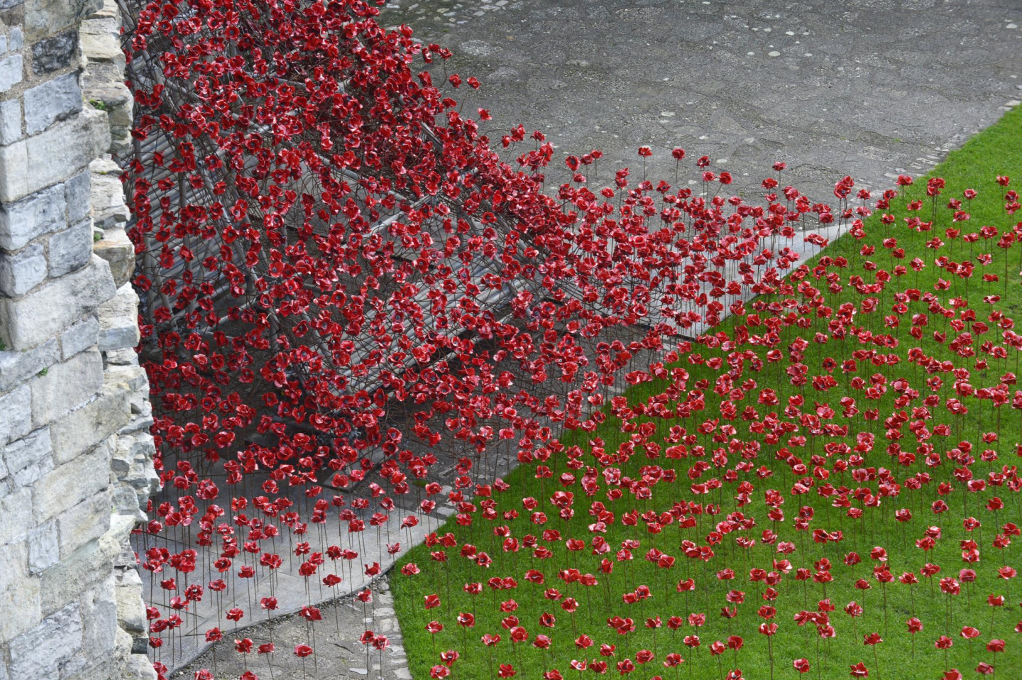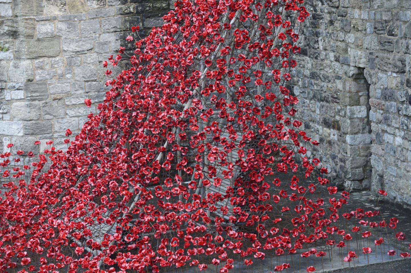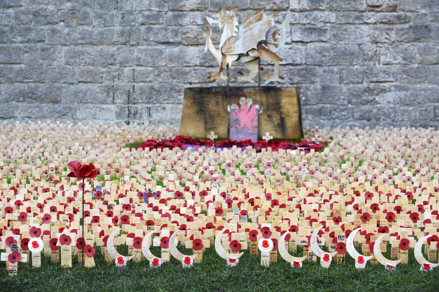 Kernarfonas pilī izvietotas tūkstošiem no keramikas veidotas magones.