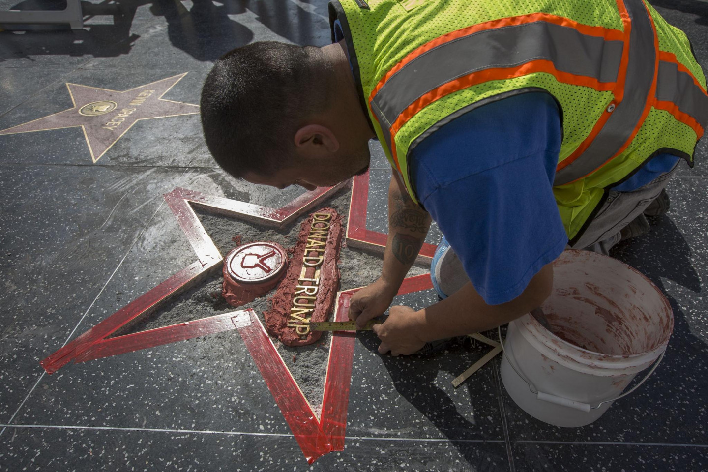 Ārvalstu mediji informē, ka kāds kungs, kurš bruņojies ar āmuru un cirvi, izpostījis Republikāņu partijas prezidenta amata kandidāta Donalda Trampa zvaigzni Holivudas "Slavas alejā".