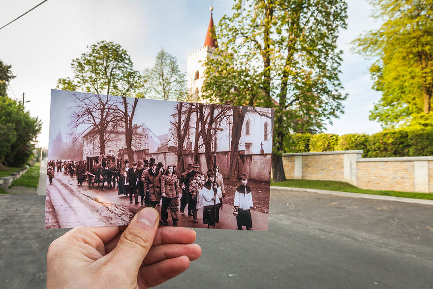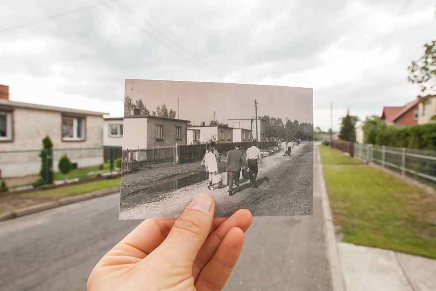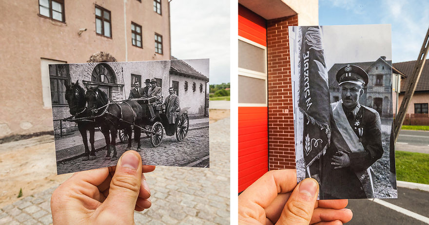 Fotogrāfs Blažejs Duks no Polijas interesantā veidā atjaunoja sendienu fotogrāfijas no savas bērnības dzīvesvietas un izveidoja oriģinālu galeriju.