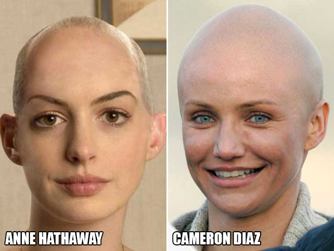 Mēs esam pieraduši redzēt sabiedrībā iemīļotas personas dažādos apģērbos un matu sakārtojumos. Tomēr, vai spēj iedomāties, kā slavenības izskatītos bez matiem?