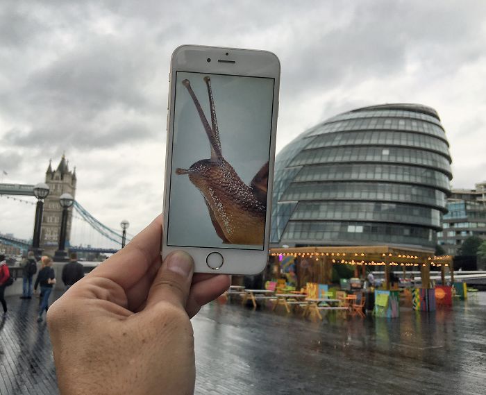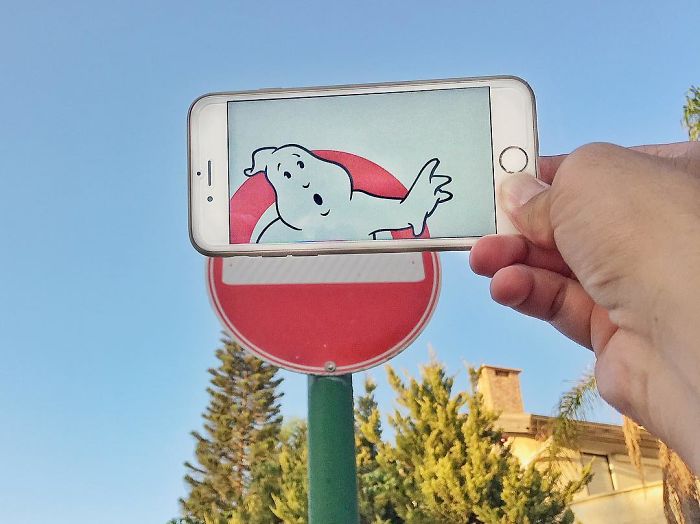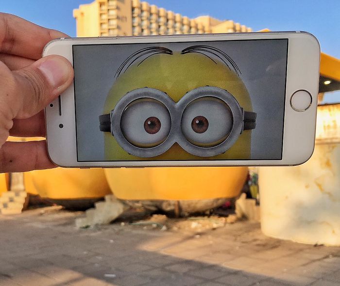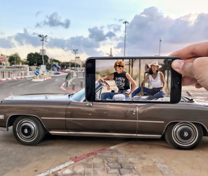 Fotogrāfs Jahavs Draizins ir izveidojis interesantu foto projektu, kura laikā viņš telefonā esošajām bildēm piemeklē ideāli atbilstošu fonu un šo kombināciju nofotografē. Rezultātā bildes no Jahava telefona pārtop realitātē.