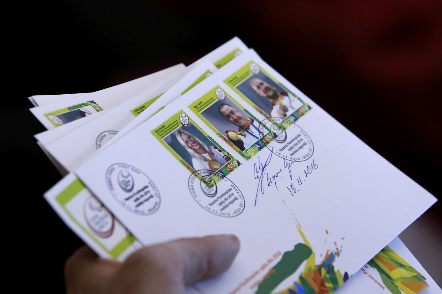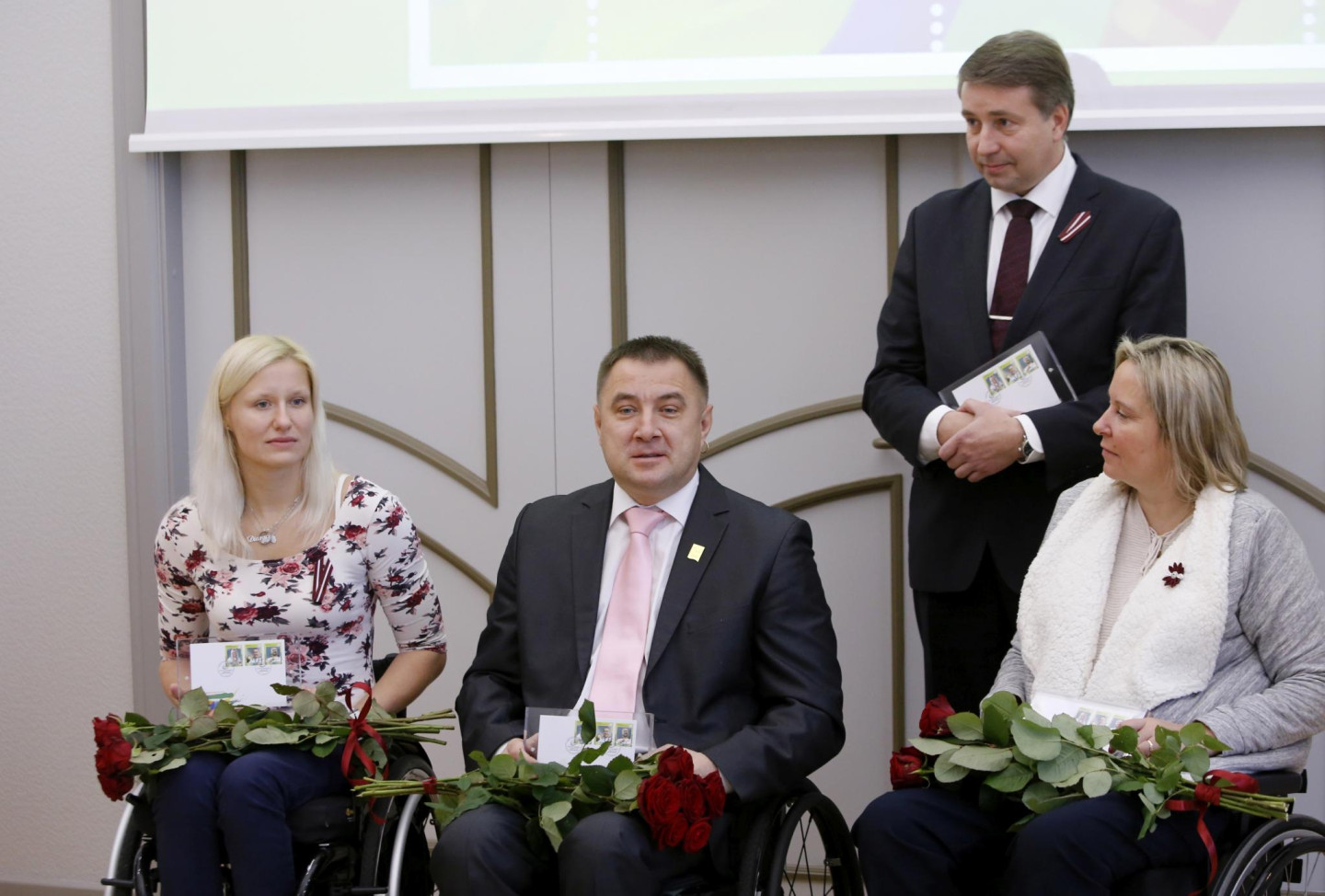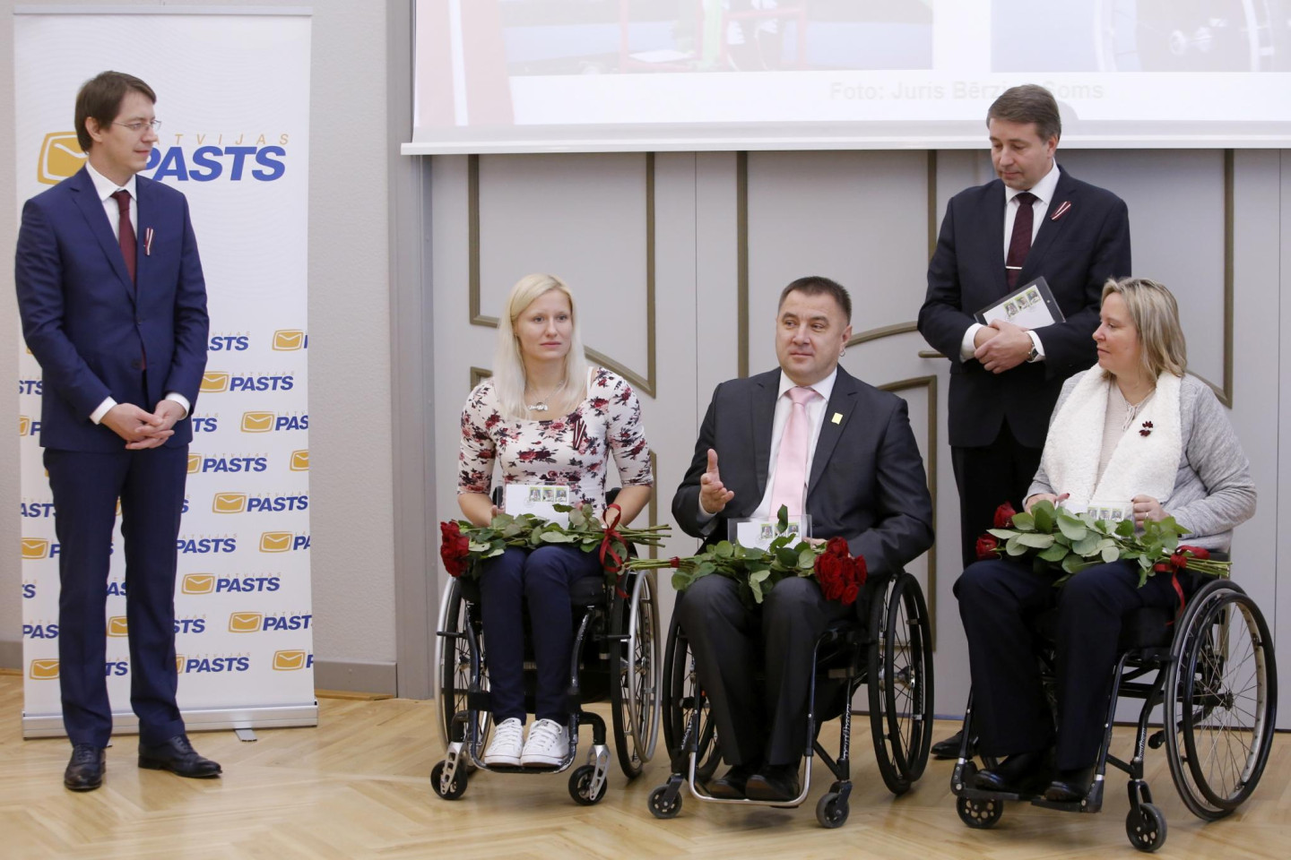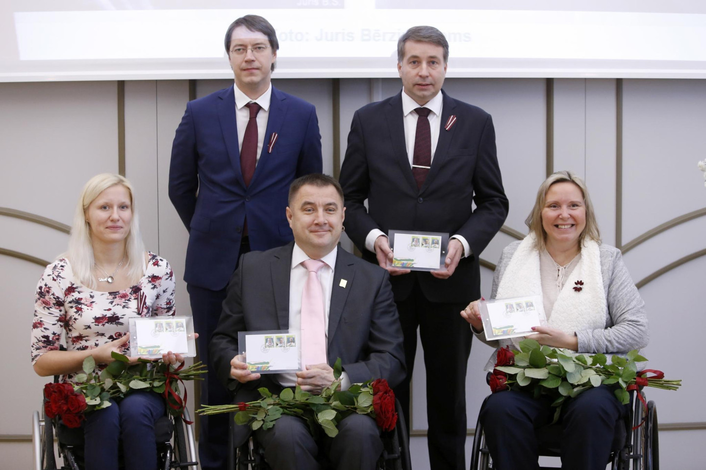 Ar medaļnieku līdzdalību Rīgā, Satiksmes ministrijā, atklāja paralimpiskajiem čempioniem veltītas pastmarku sērija.