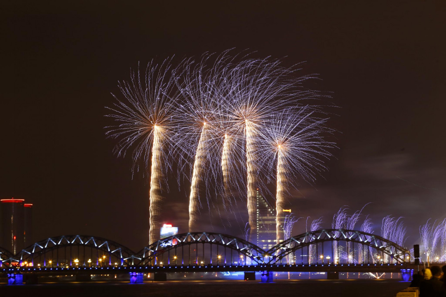 Šodien plkst. 21.00 rīdziniekus, Rīgas viesus un cilvēkus visā Latvijā priecēja krāšņs salūts par godu Latvijas 98. dzimšanas dienai