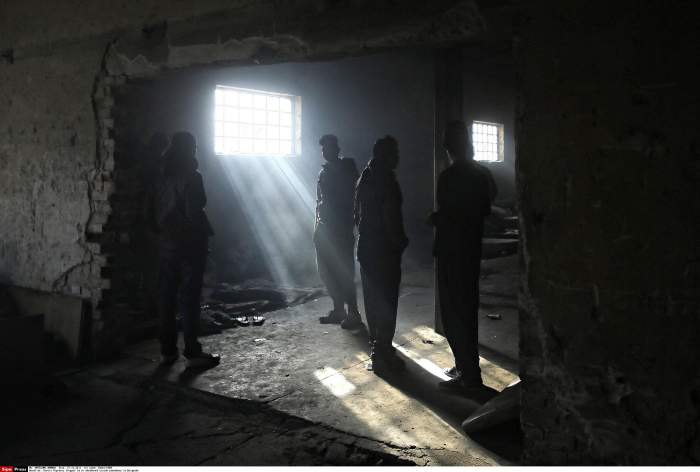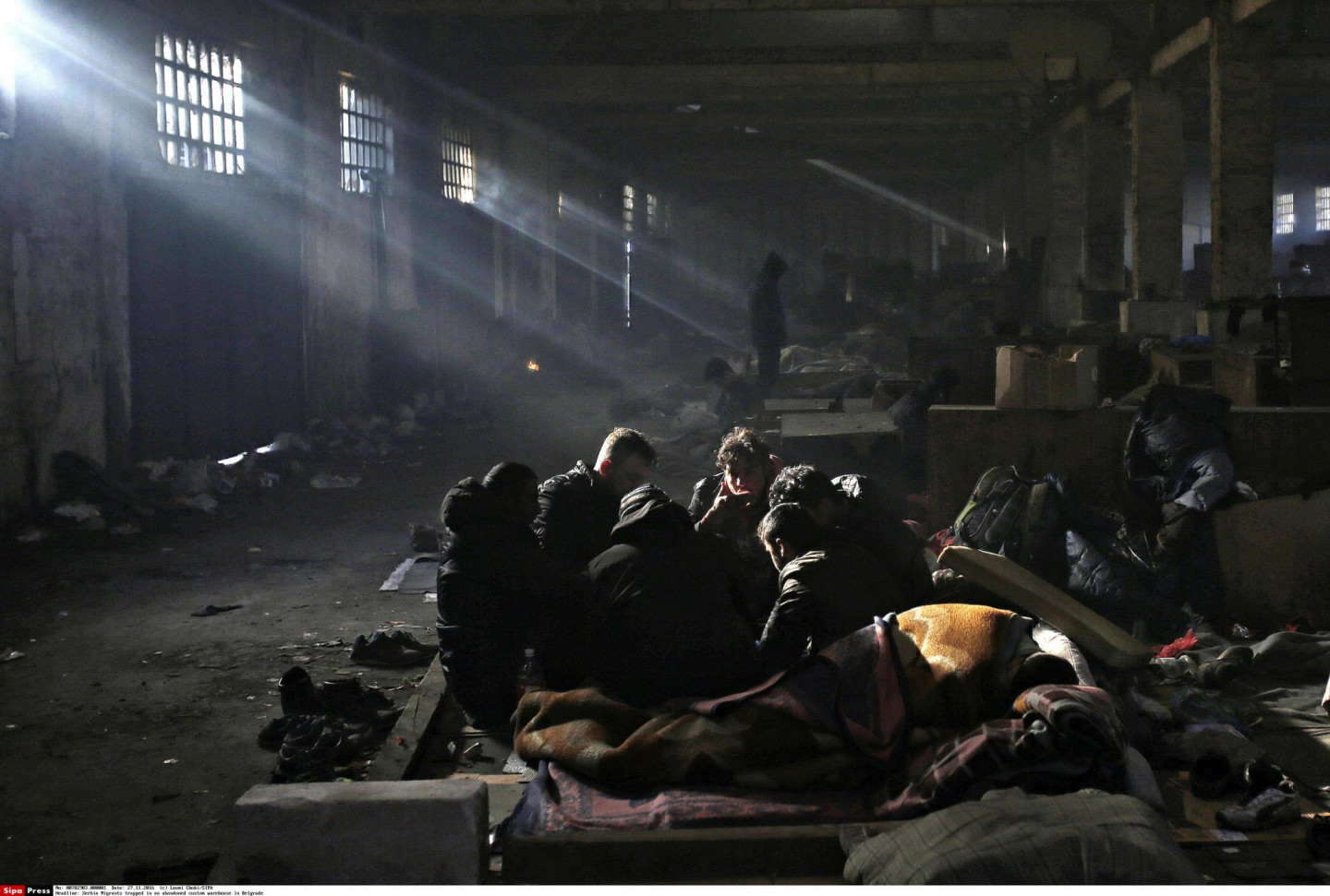 Ārvalstu fotogrāfi iemūžinājuši kādas bēgļu grupas dzīvi pamestā graustā Serbijā.