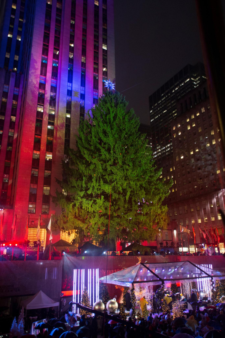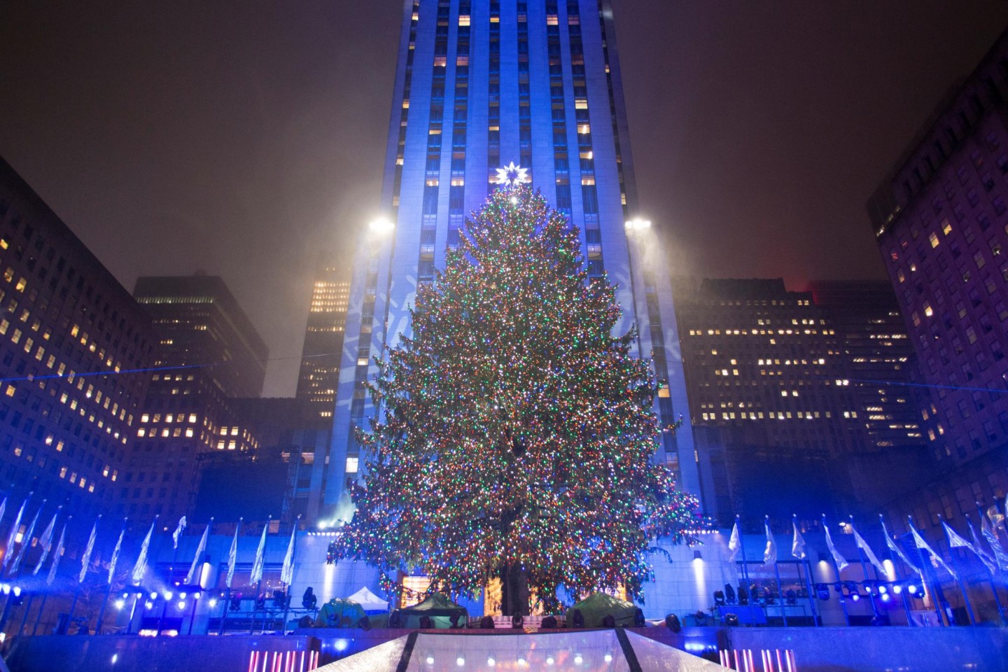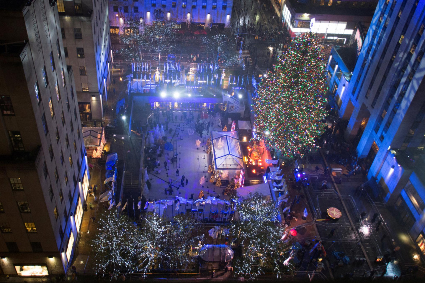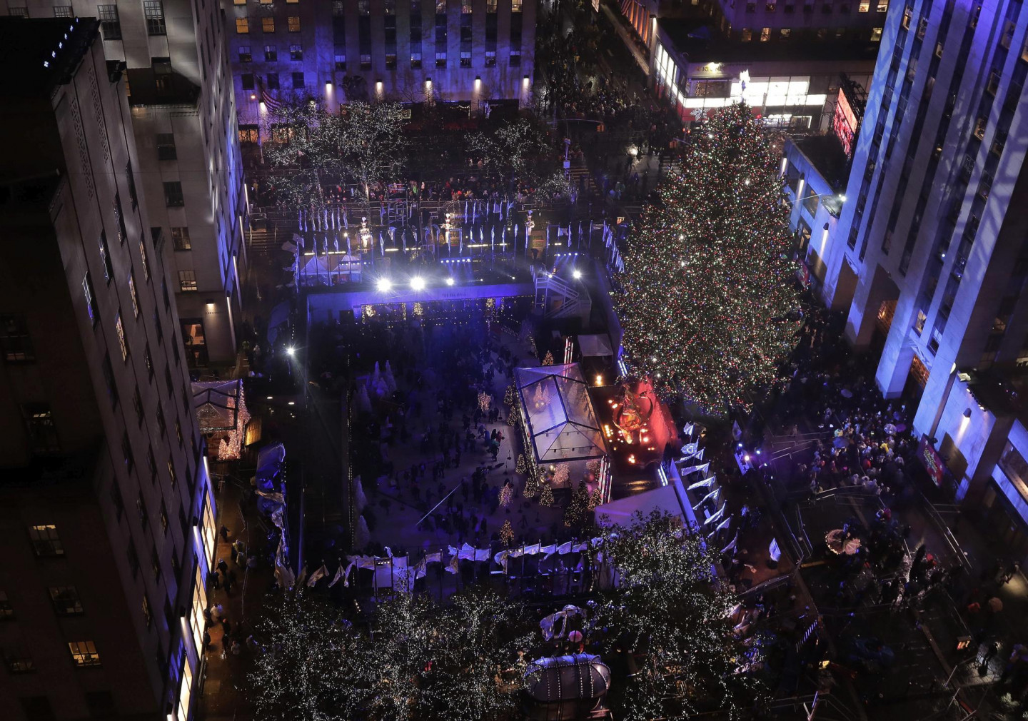 Tūkstošiem cilvēku vakar pulcējušies Ņujorkā, lai vērotu krāšņās Ziemassvētku egles iedegšanu.