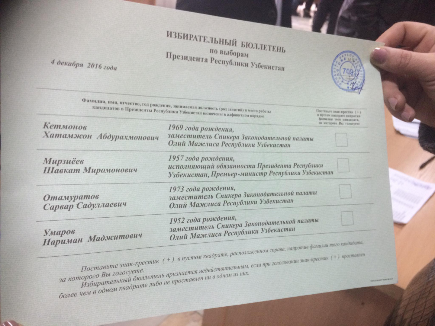 4.decembrī Uzbekistānā notiek prezidenta vēlēšanas, pirmās pēc ilggadējā prezidenta Islāma Karimova nāves. Uzbeki izdara izvēli no četriem kandidātiem, no kuriem par ticamāko uzvarētāju uzskata tagadējo prezidenta vietas izpildītāju Šavkatu Mirzijojevu.