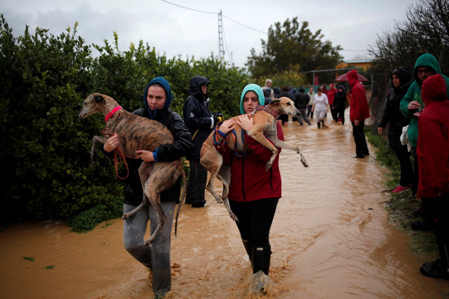 Pēdējo divu dienu laikā Spānijas dienvidos turpinās spēcīgas lietusgāzes, kas appludinājušas lielas pilsētu teritorijas.