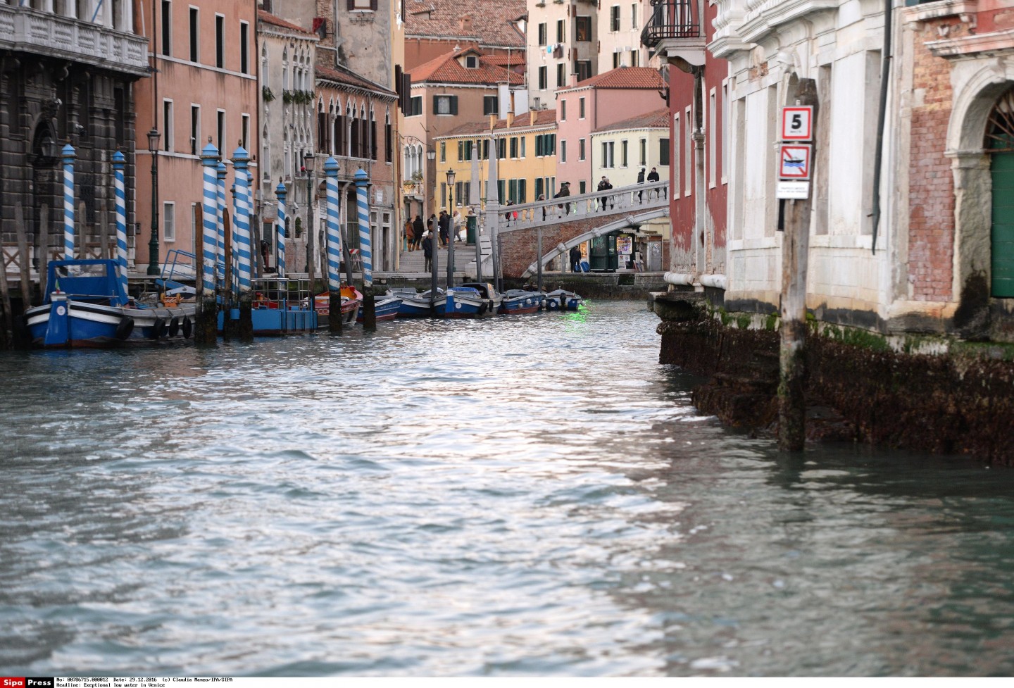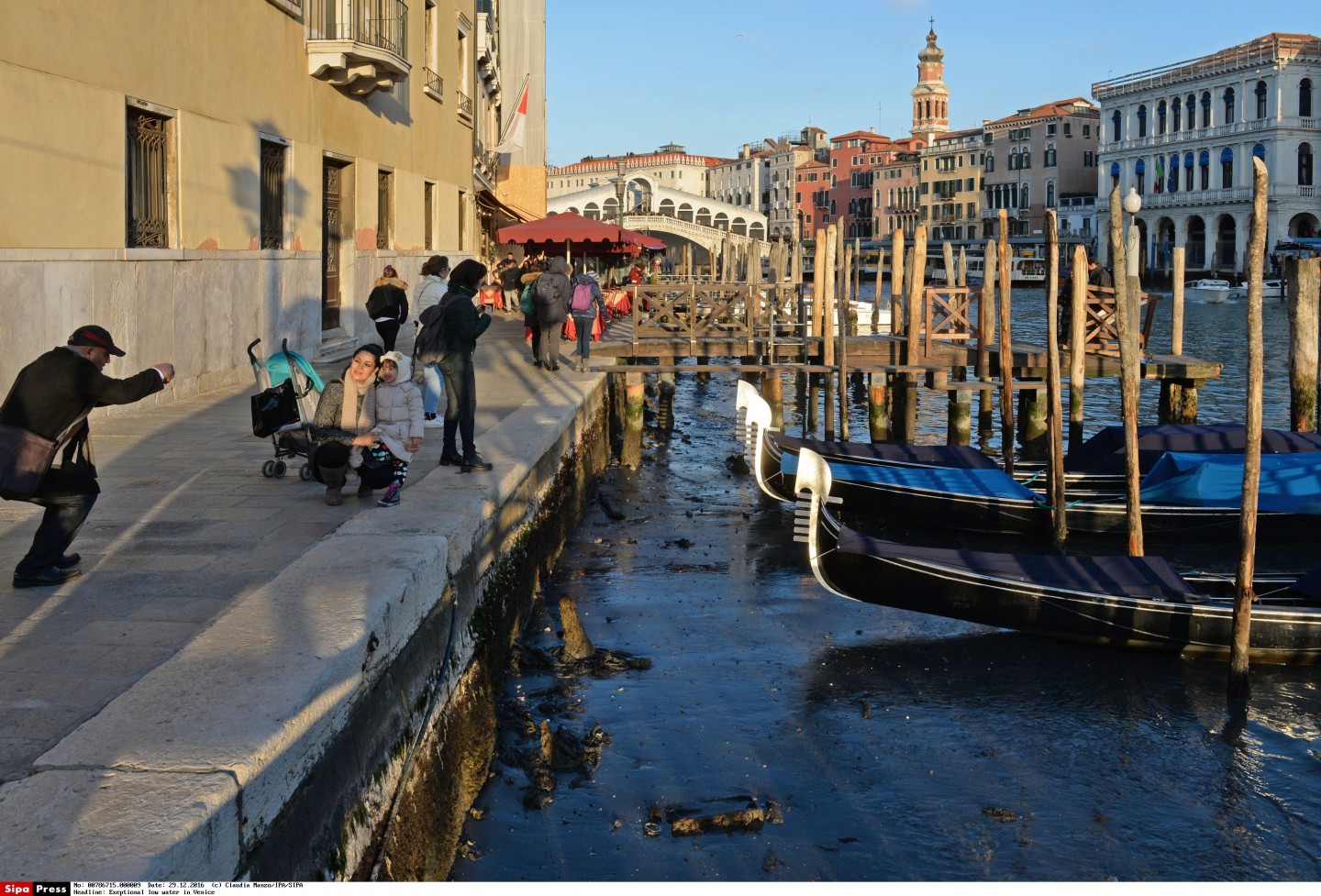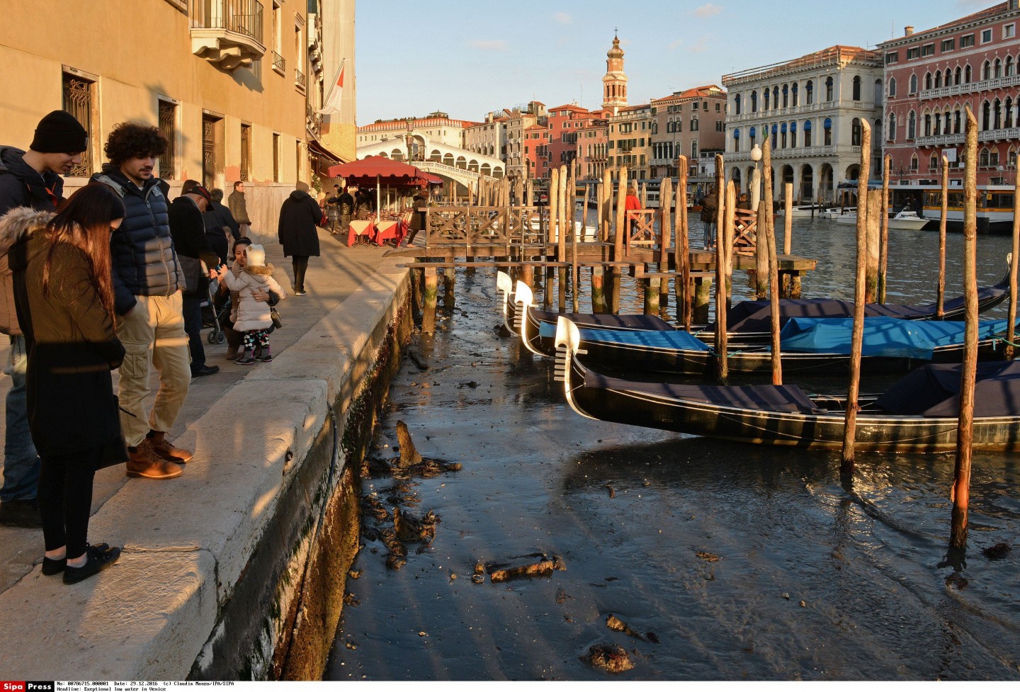 Šodien Venēcijā bija novērojams interesants skats - vairāki pilsētas kanāli bija palikuši bez ūdens un gondolas stāvēja uz zemes. Tiek vēstīts, ka ūdens līmenis Venēcijā šodien esot samazinājies par 70 centimetriem.