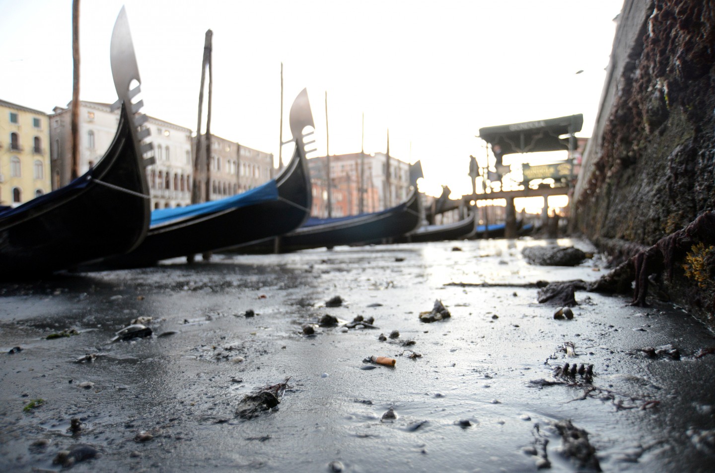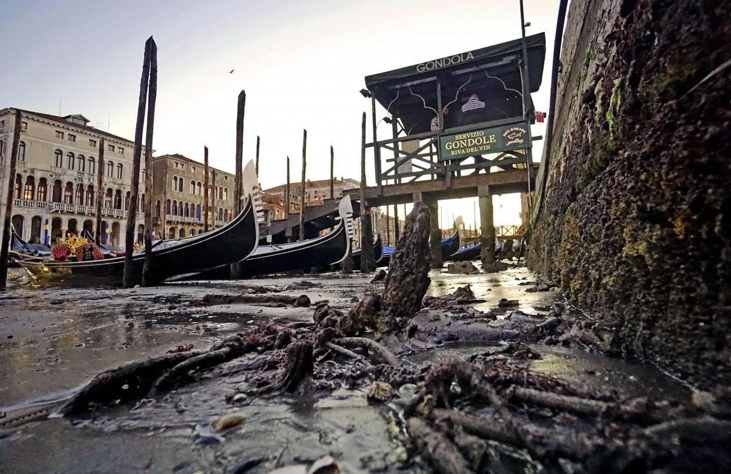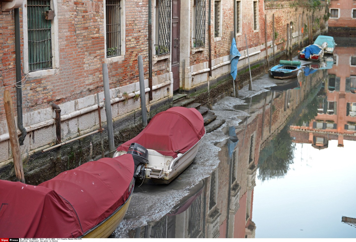 Šodien Venēcijā bija novērojams interesants skats - vairāki pilsētas kanāli bija palikuši bez ūdens un gondolas stāvēja uz zemes. Tiek vēstīts, ka ūdens līmenis Venēcijā šodien esot samazinājies par 70 centimetriem.