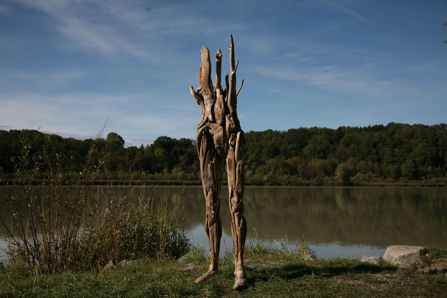 Kad tiek runāts par koka skulptūrām, parasti, nāk prātā skulptūras, kas tiek izgrebtas no koka. Mākslinieks Nagato Ivasaki koka skulptūru veidošanai ir atradis jaunu veidu - viņš tās gatavo no ūdens izskalotiem koka gabaliem