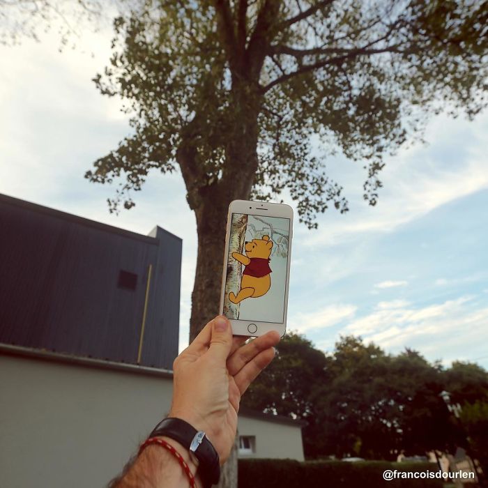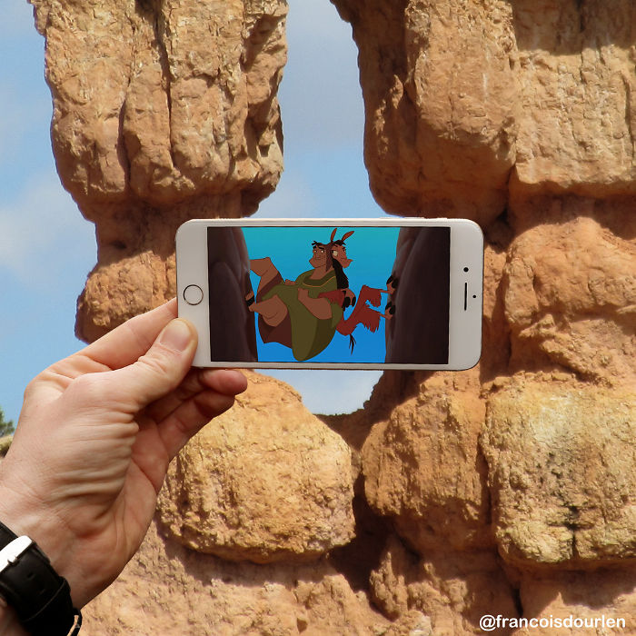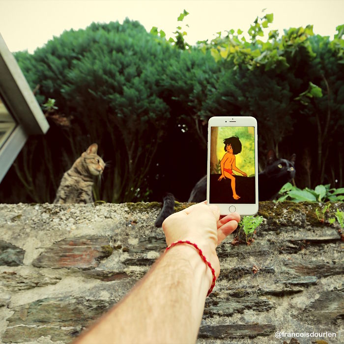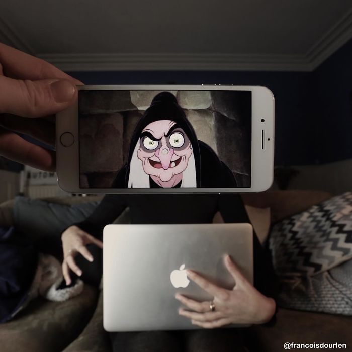 Fotogrāfs Franciss Doulrens ir aizrāvies ar interesantu fotografēšanas veidu. Viņš, izmantojot viedtālruni un iztēli, iemūžina "Disneja" multfilmu tēlus reālās dzīves situācijās.