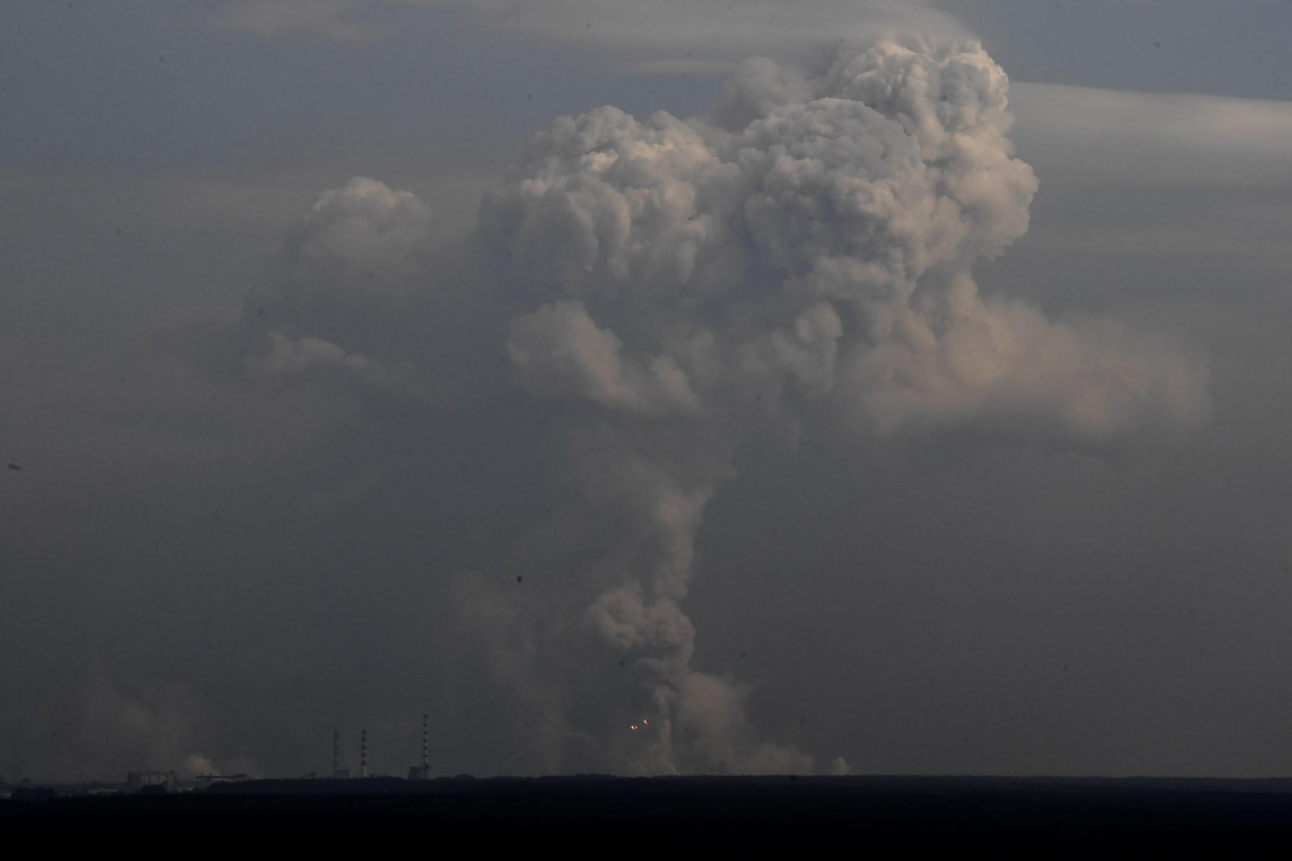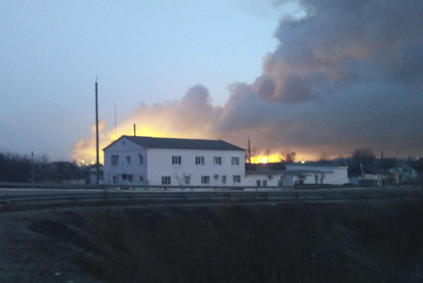 Piektdien, 23. martā, Ukrainas austrumos esošajā munīcijas noliktavā nogranda vairāki sprādzieni un izcēlās ugunsgrēks. Skats, kāds paveras noliktavas apkārtnē pēc ugunsgrēka atgādina kara ainas.