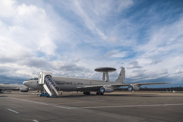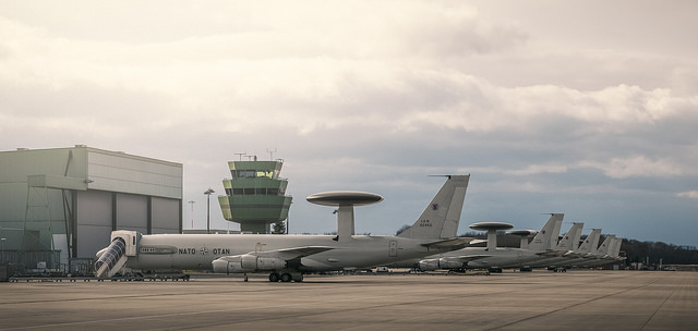 Geilenkirhenē Vācijā atrodas Gaisa spēku bāze, no kuras veic lidojumus NATO agrīnās brīdināšanas un kontroles sistēmas jeb AWACS (Airborne Warning & Control System) lidmašīnas. AWACS ir vienīgie NATO īpašumā esošie gaisakuģi. NATO neizmanto kopējo finansējumu, lai pirktu militāro spēju platformas, proti, kuģus un tankus, jo tā ir katras dalībvalsts individuāla izvēle un atbildība.