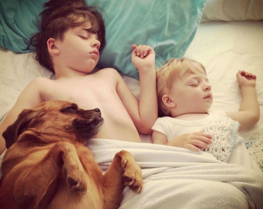 MĪĻI: Bērnu un suņu kopīga diendusa