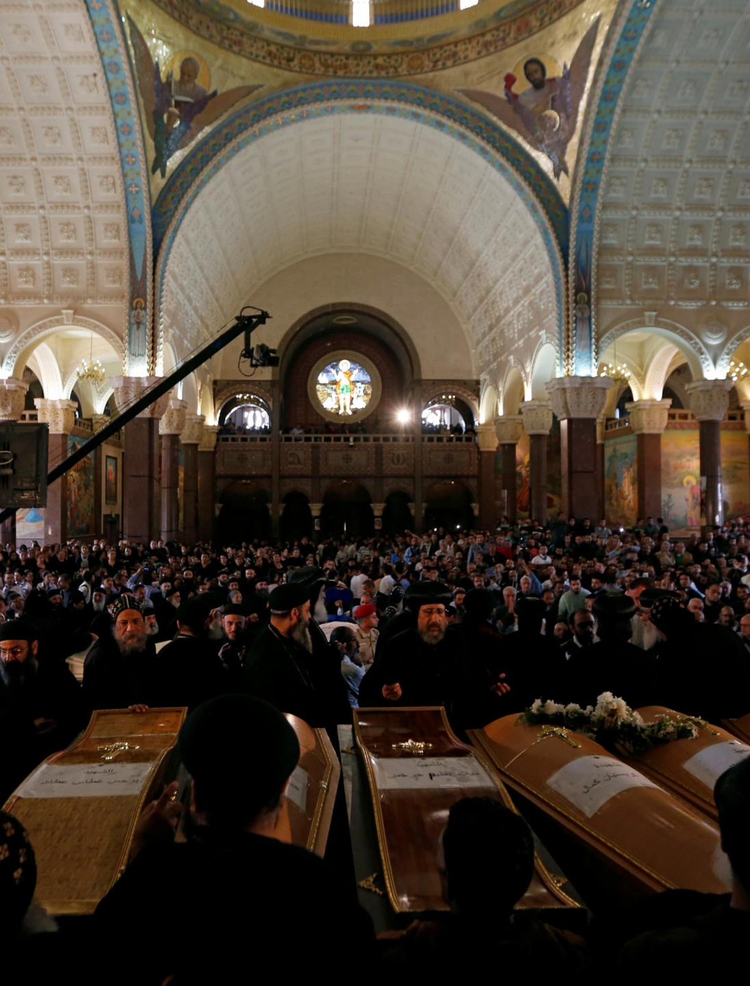 Šodien stingrā apsardzes un policijas uzraudzībā pēdējā gaitā tika izvadīti kristiešu baznīcu sprādzienos bojāgājušie. Jau vēstīts, ka pprādzienos divās kristiešu koptu baznīcās Ēģiptē svētdien gājuši bojā 38 un ievainoti vairāk nekā 100 cilvēki