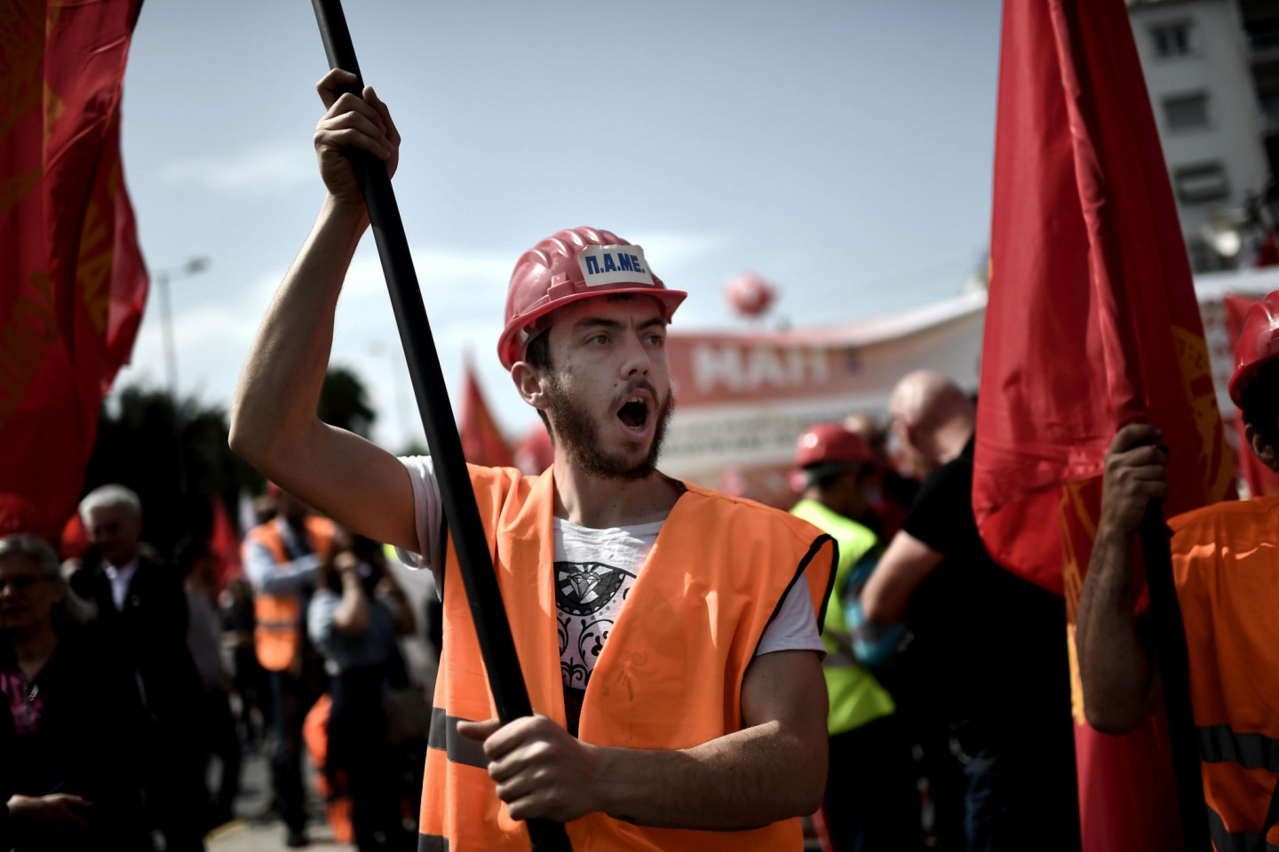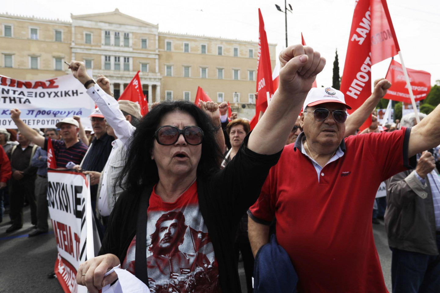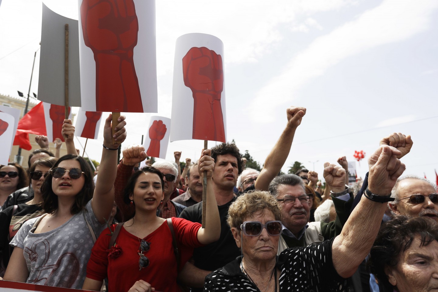Grieķijas arodbiedrības Darba svētkus pirmdien atzīmē ar 24 stundu valsts mēroga streiku un protestiem pret jauniem taupības pasākumiem, ko pieprasa valsts starptautiskie aizdevēji.