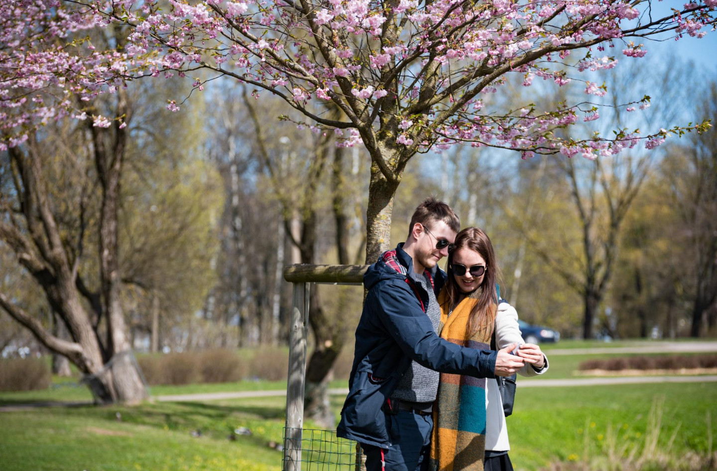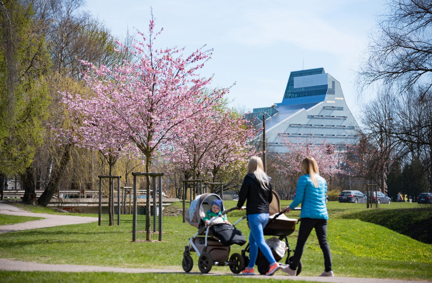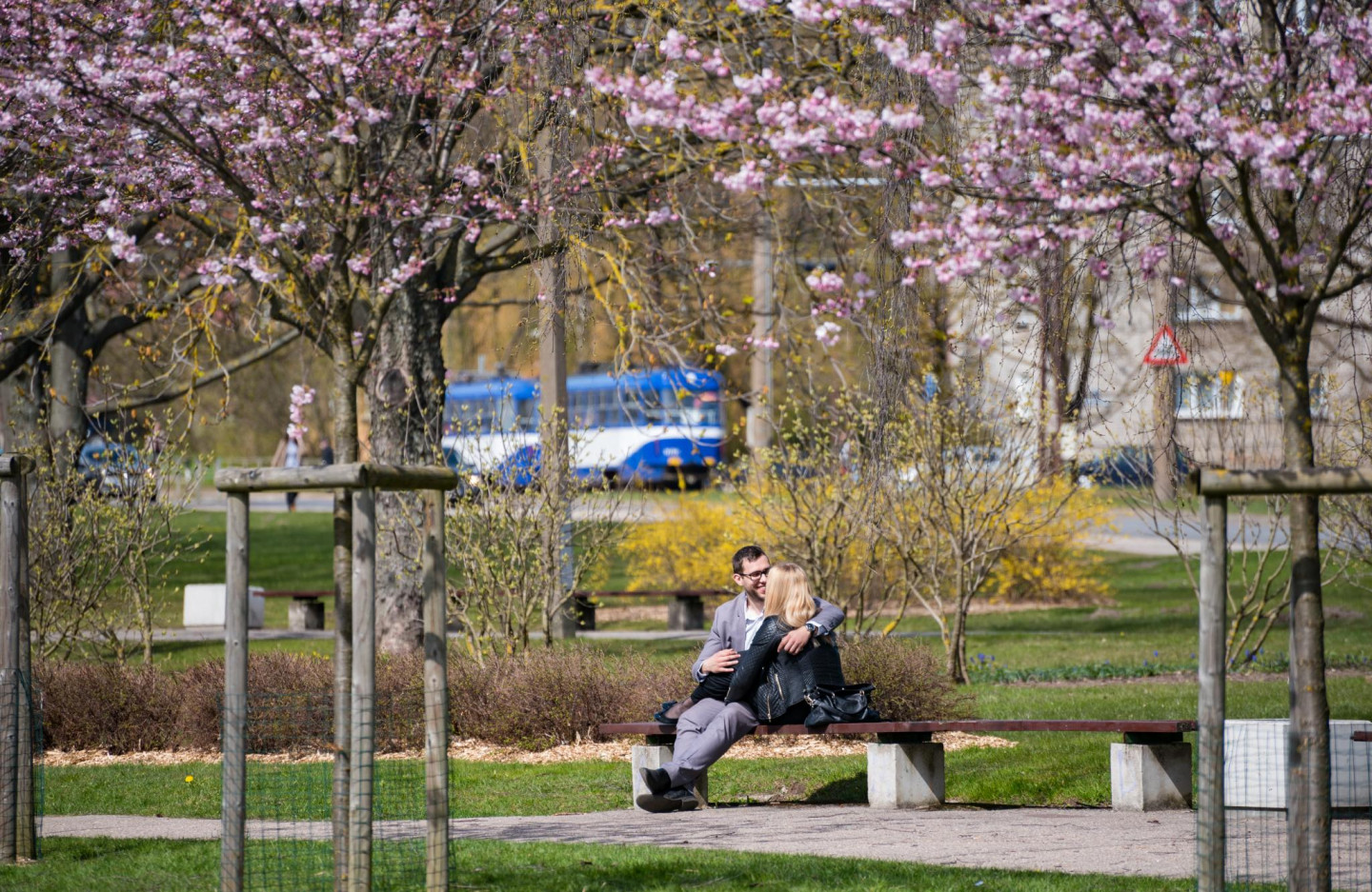 Rīgas iedzīvotāji un pilsētas viesi vēl pirms aukstāka laika iestāšanās steidz izbaudīt un nofotografēties pie pasakaini ziedošajiem ķiršu kokiem Uzvaras parkā.