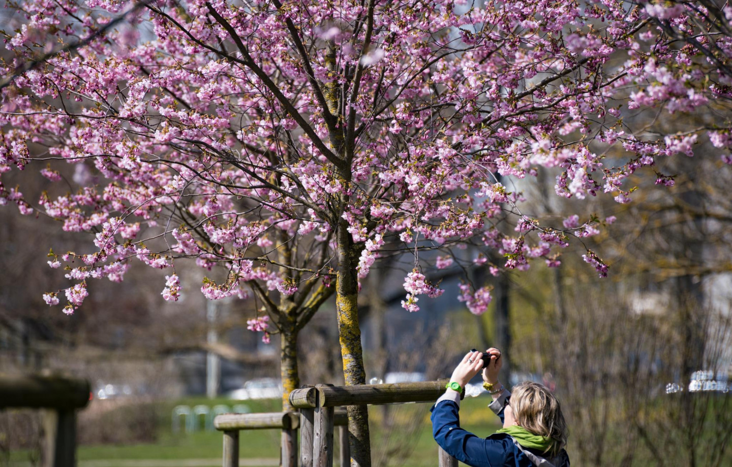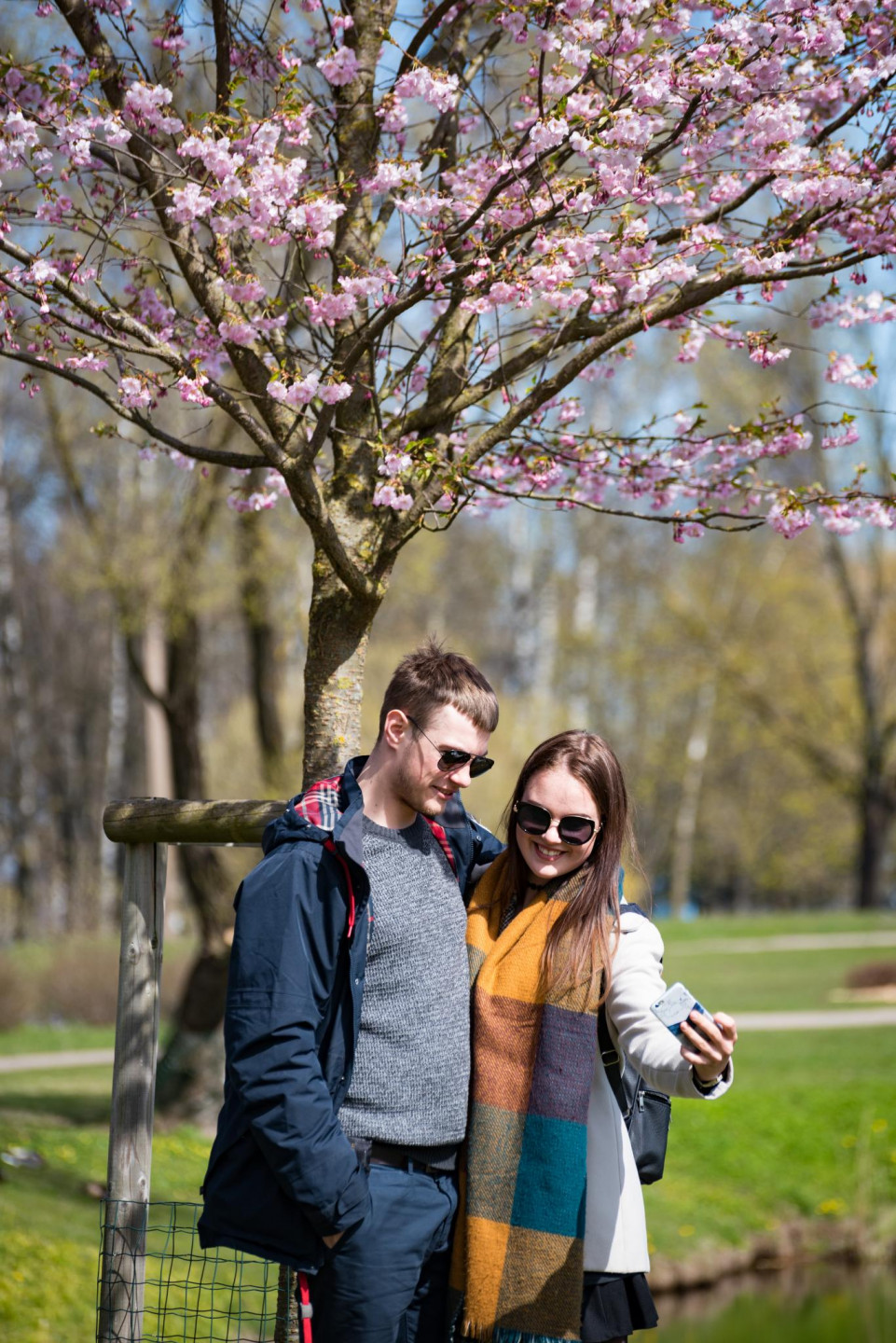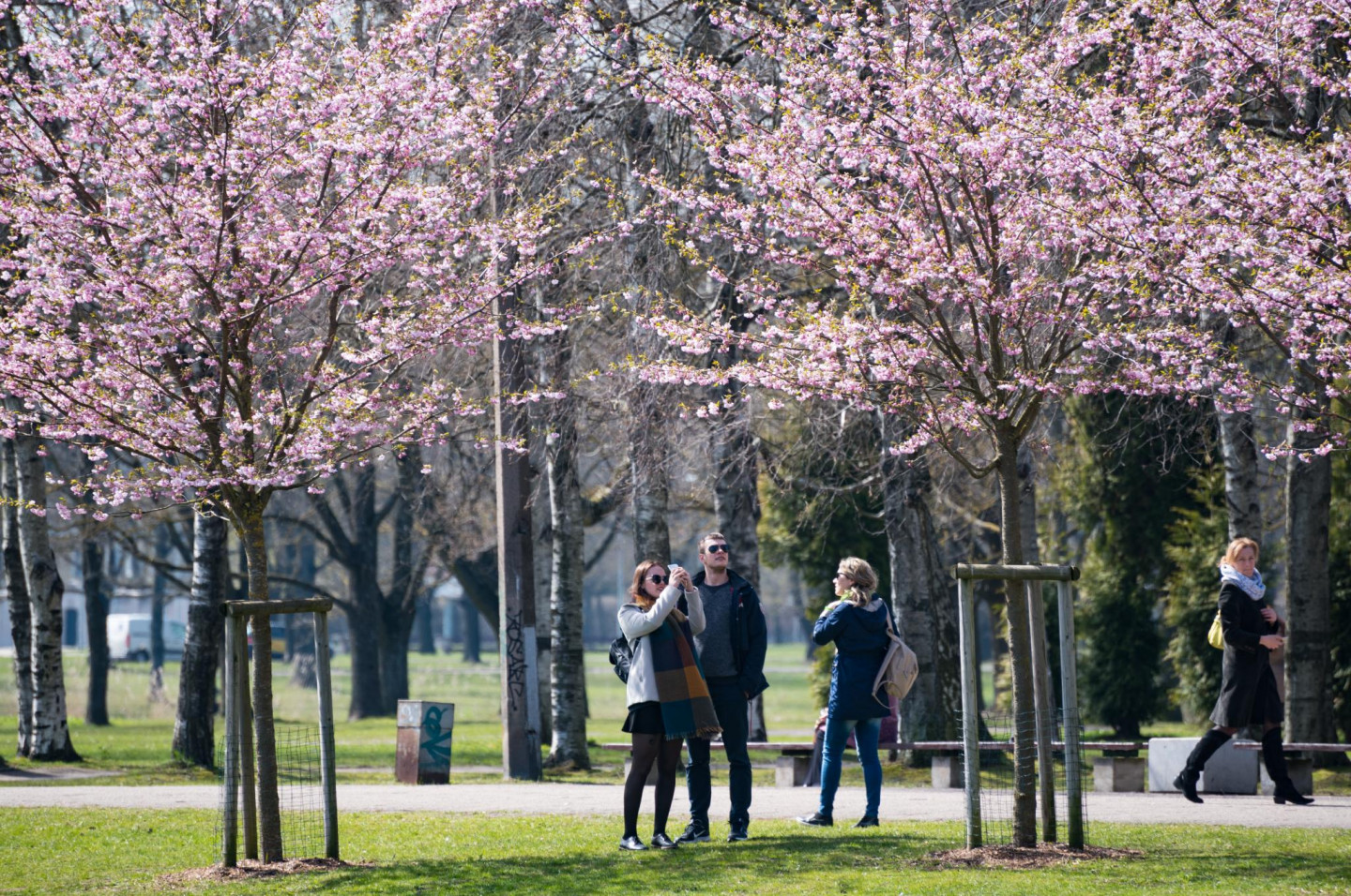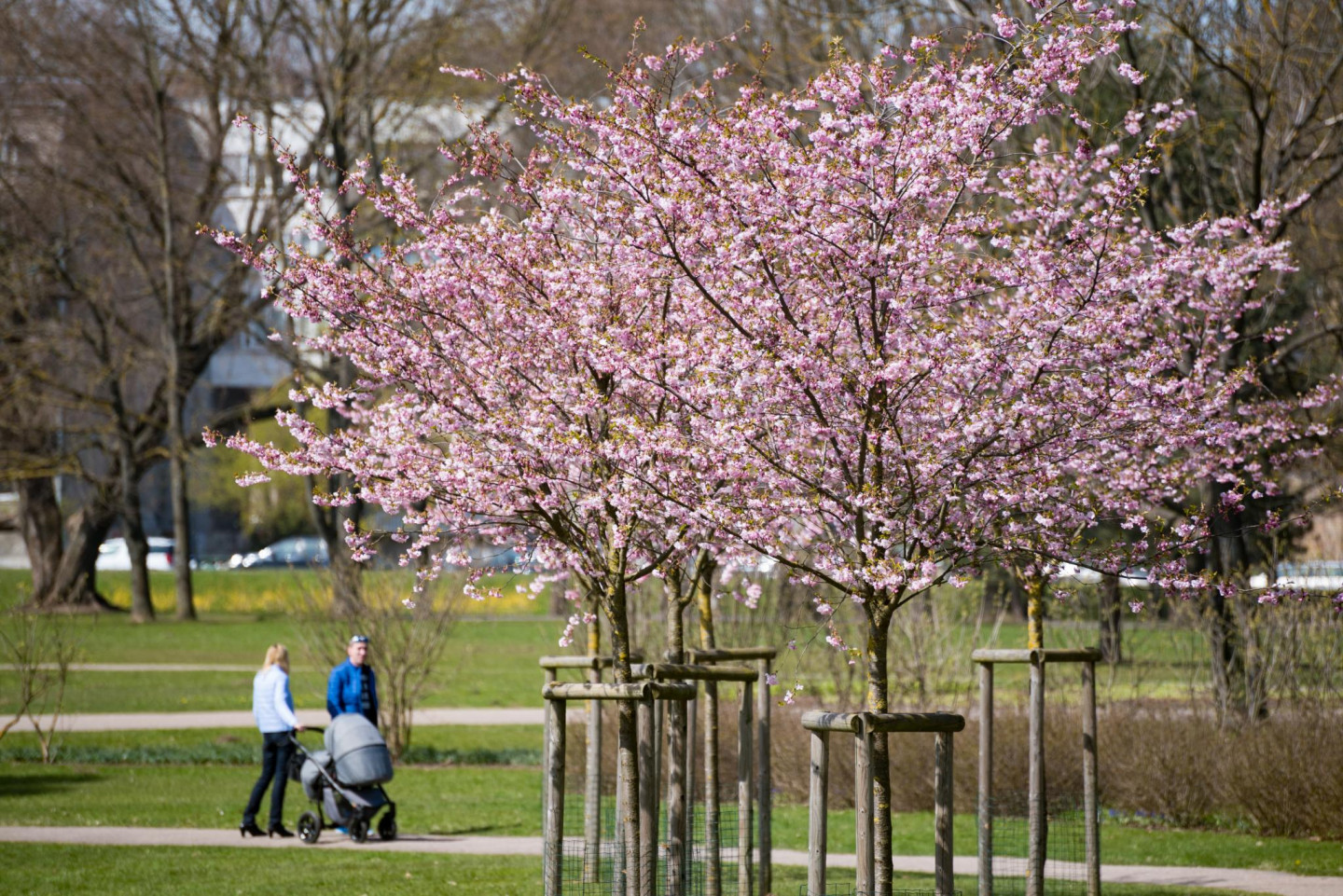 Rīgas iedzīvotāji un pilsētas viesi vēl pirms aukstāka laika iestāšanās steidz izbaudīt un nofotografēties pie pasakaini ziedošajiem ķiršu kokiem Uzvaras parkā.