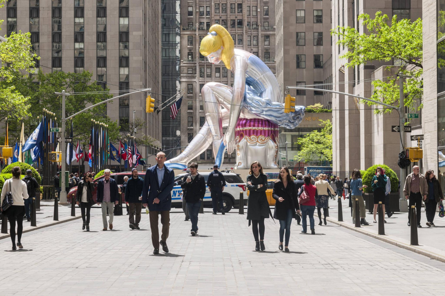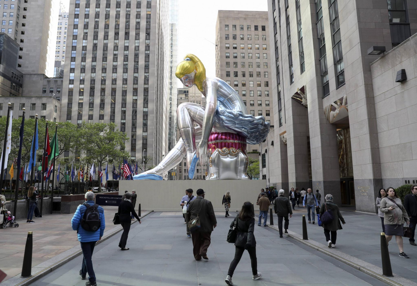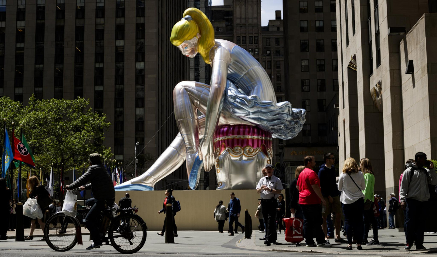 Amerikāņu mākslinieks Džefs Kūns pie Rokfellera centra izveidojis piepūšamu skulptūru “Seated Ballerina”. Tā ir aptuveni 15 metrus augsta un veidota pamatojoties uz kādu porcelāna figūriņu.