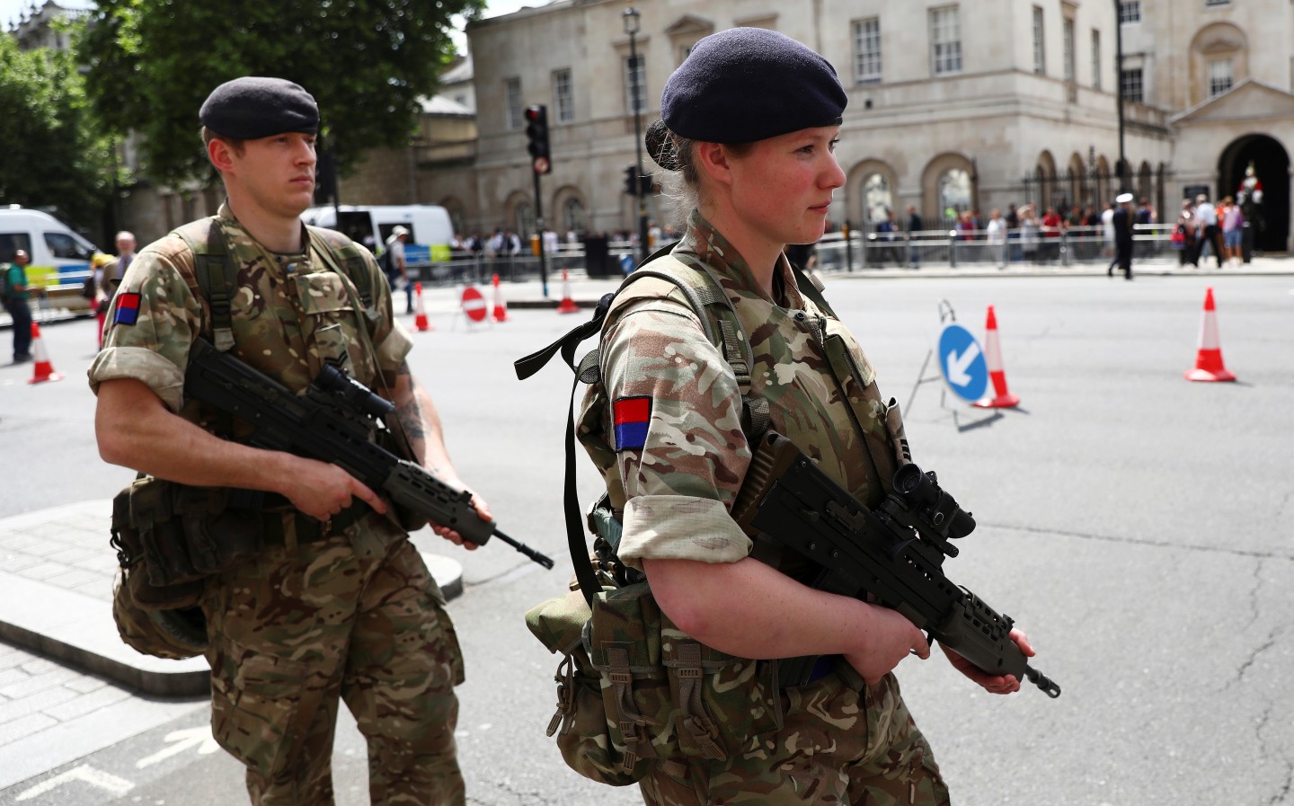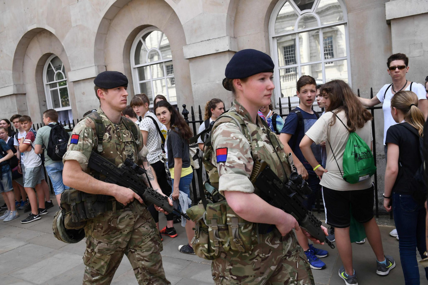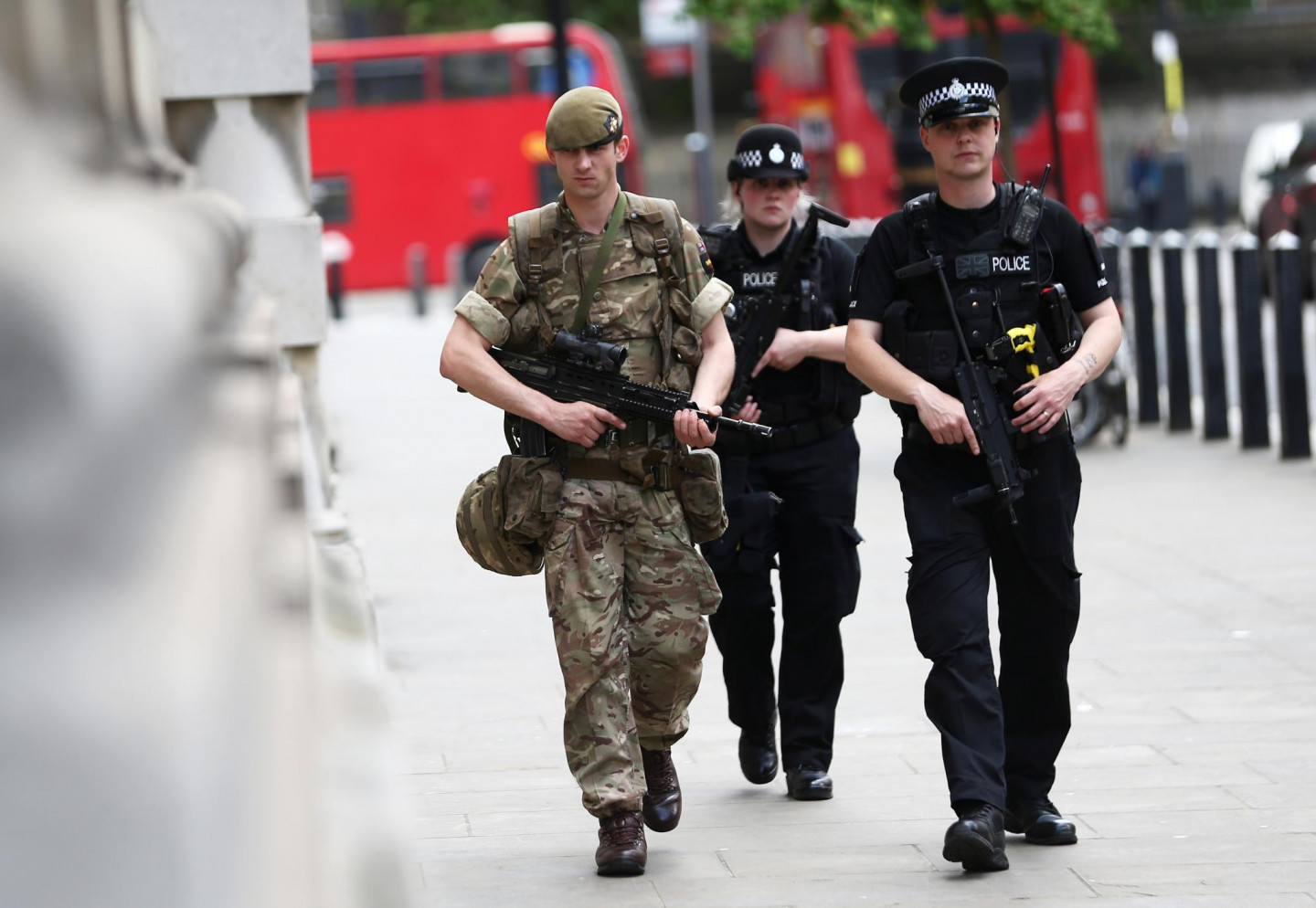 Pēc pirmdienas vakarā notikušā terorakta Mančestrā un terorisma draudu līmeņa paaugstināšanas līdz augstākajai pakāpei, arī Londonas ielās pastiprinātā drošības režīmā ir sākuši patrulēt karavīri un policisti.