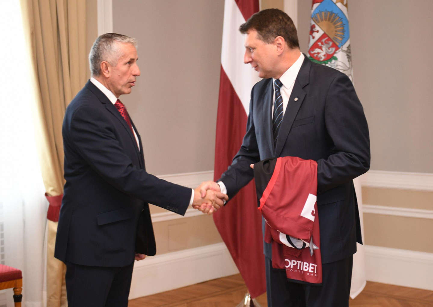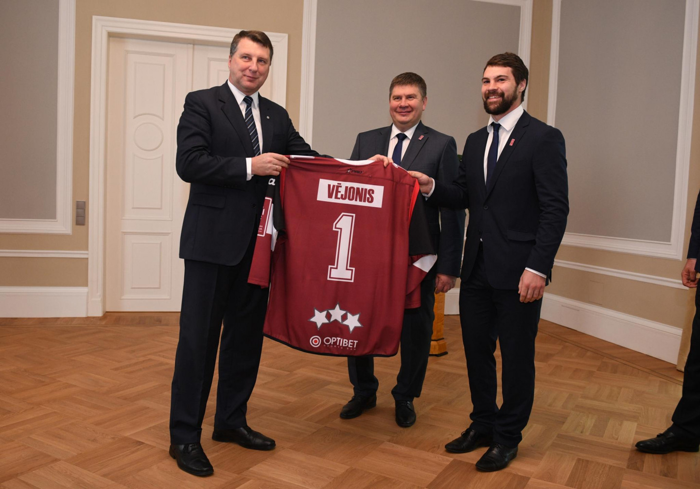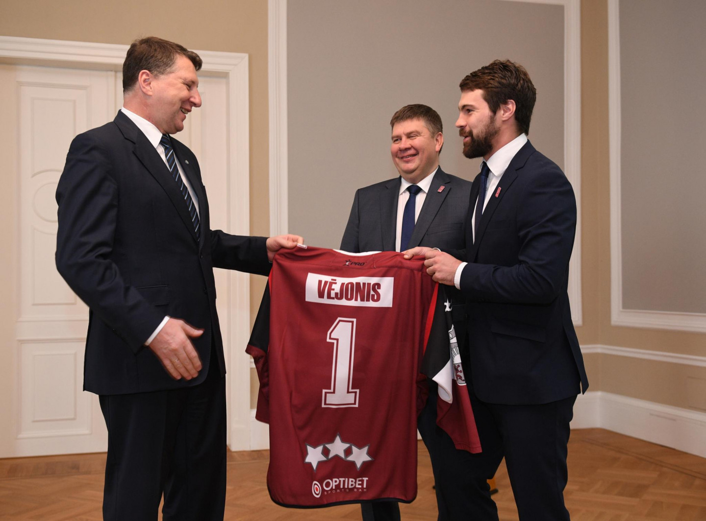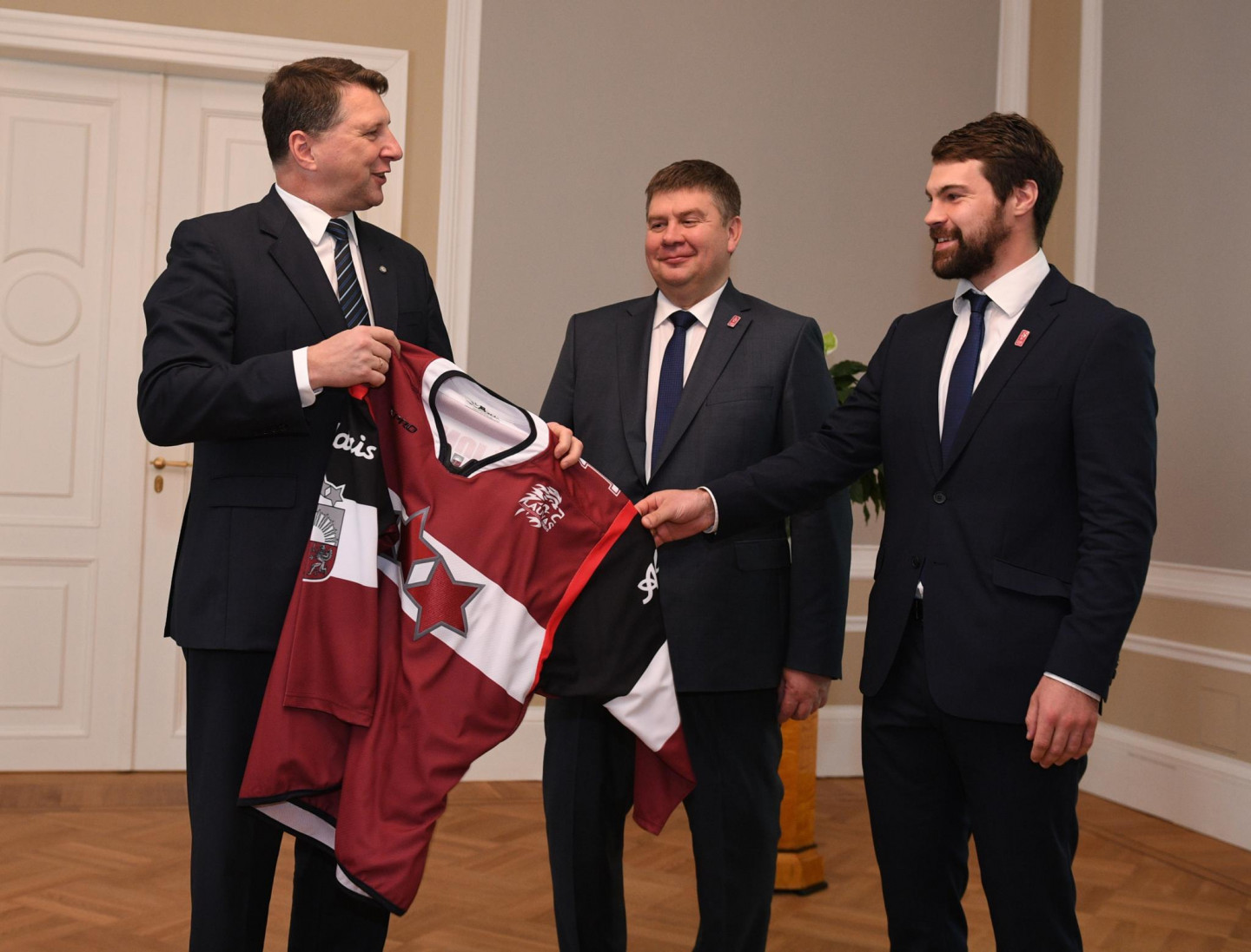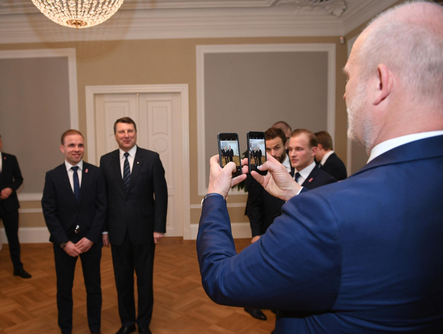 Šodien Latvijas Republikas prezidents Raimonds Vējonis Rīgas pilī tikās ar Latvijas hokeja izlasi, kas Latviju pārstāvēja pasaules hokeja čempionātā Ķelnē.