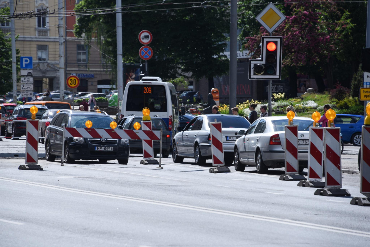 Šodien Brīvības un Matīsa ielu krustojuma rajonā vērojami iespaidīgi sastrēgumi. Šovasar par vismaz 12 miljoniem eiro mainīs asfalta segumu 10 Rīgas ielās, tai skaitā Brīvības.