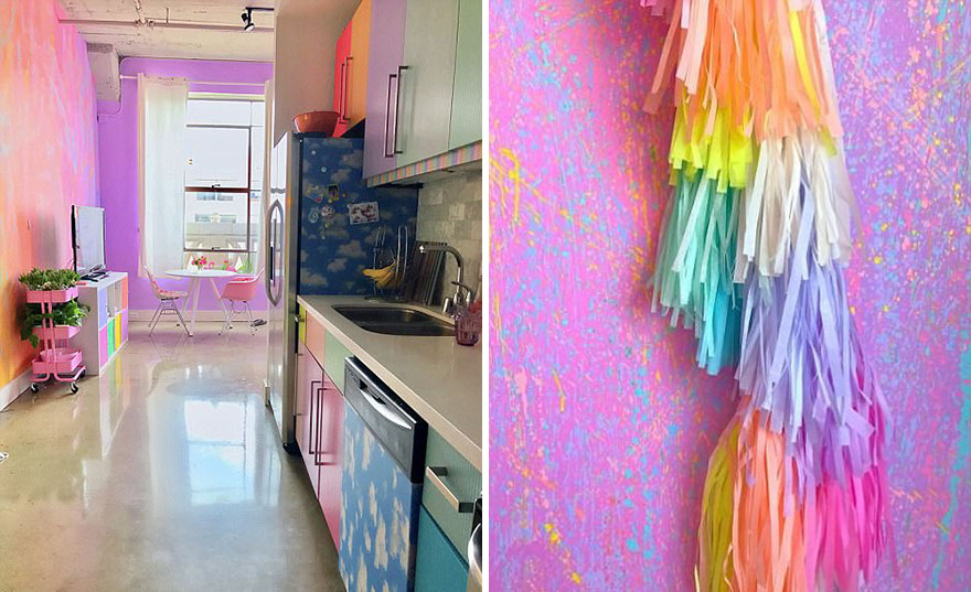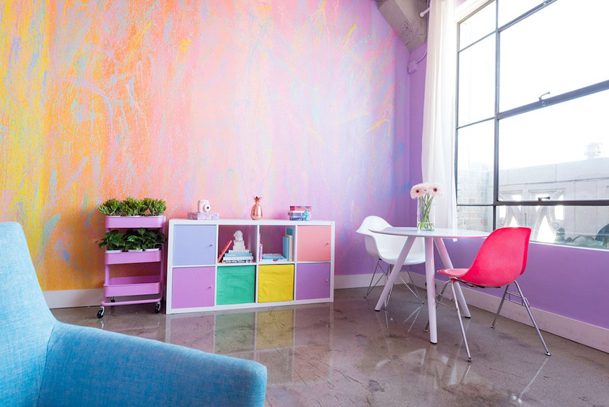 Māksliniece Armina Mucciolo izveidojusi ārkārtīgi krāsainu interjeru savā dzīvoklī, kas līdzinās varavīksnei. Krāsainās un ar ziediem veidotās sienas, pasteļa skapīši, varavīksnes krāsām izveidotās lampas, pat trauki atspoguļo pašu mākslinieci, kas arī ikdienā tendēta savu imidžu veidot spilgtu un krāsainu.