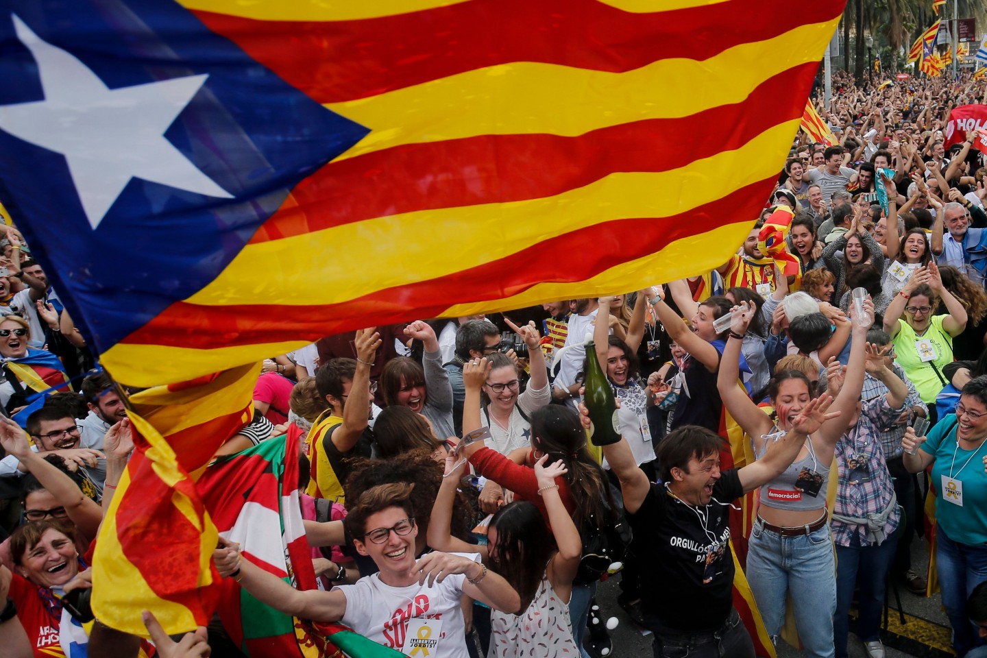 Katalonija pasludina neatkarību; cilvēki līksmo