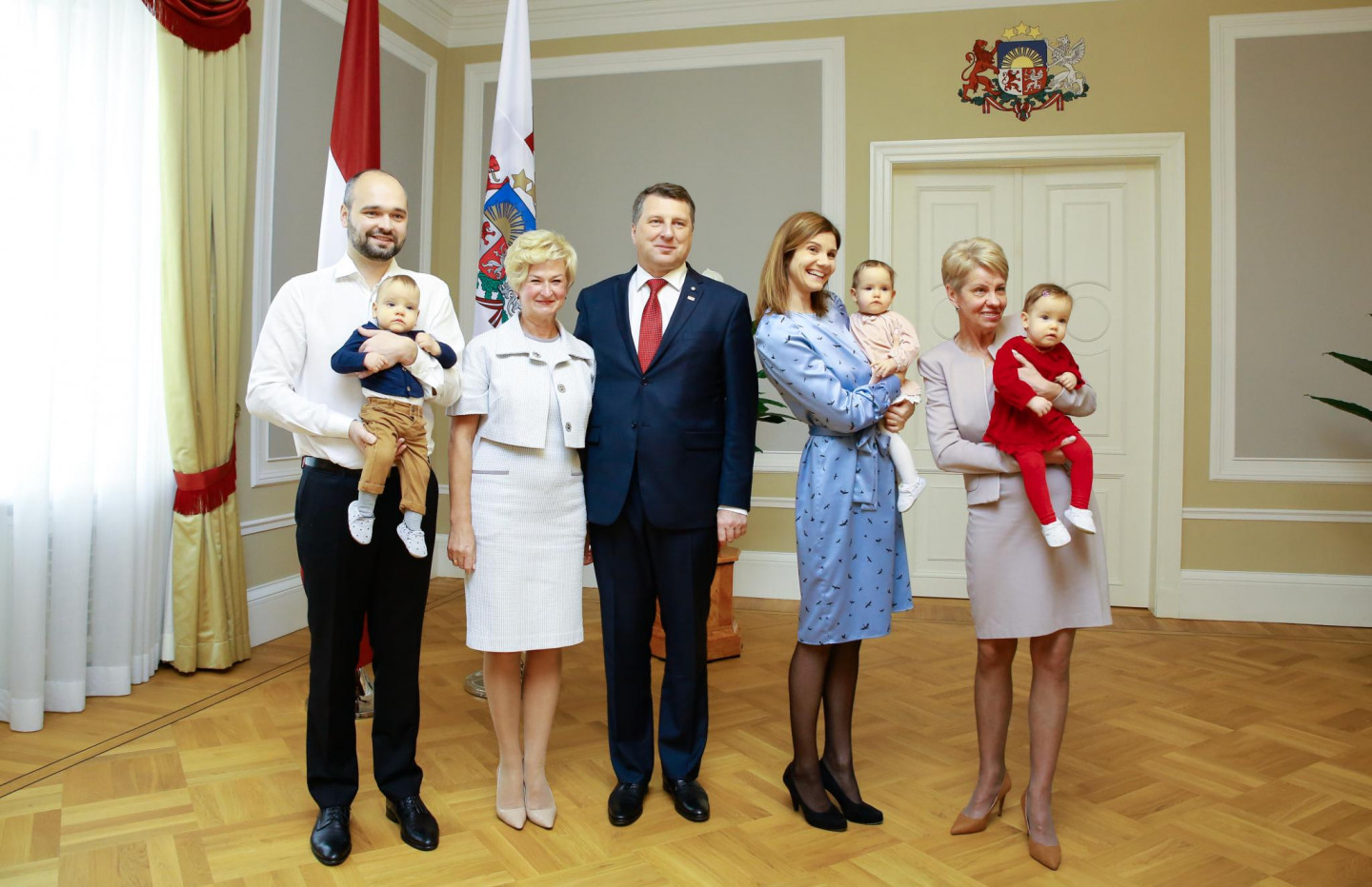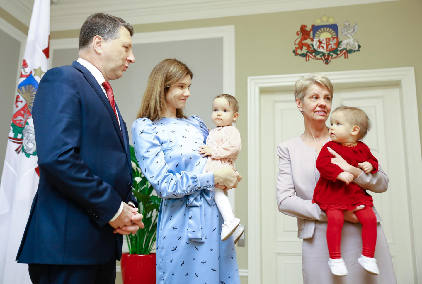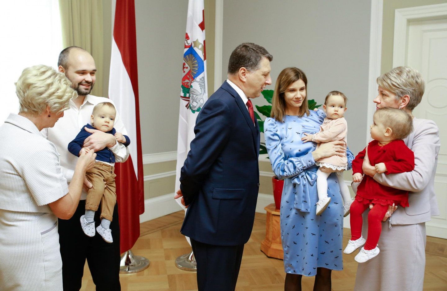 Rīgas pilī Valsts prezidents Raimonds Vējonis ar kundzi Ivetu Vējoni tikās ar Šponu ģimeni - 2017. gada janvārī dzimušajiem trīnīšiem un viņu vecākiem