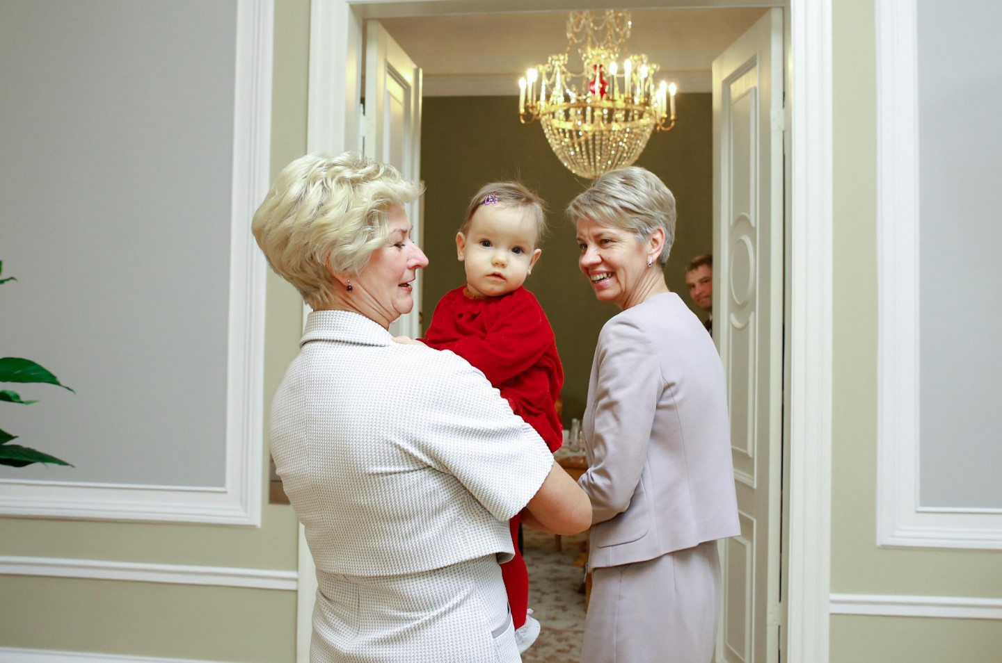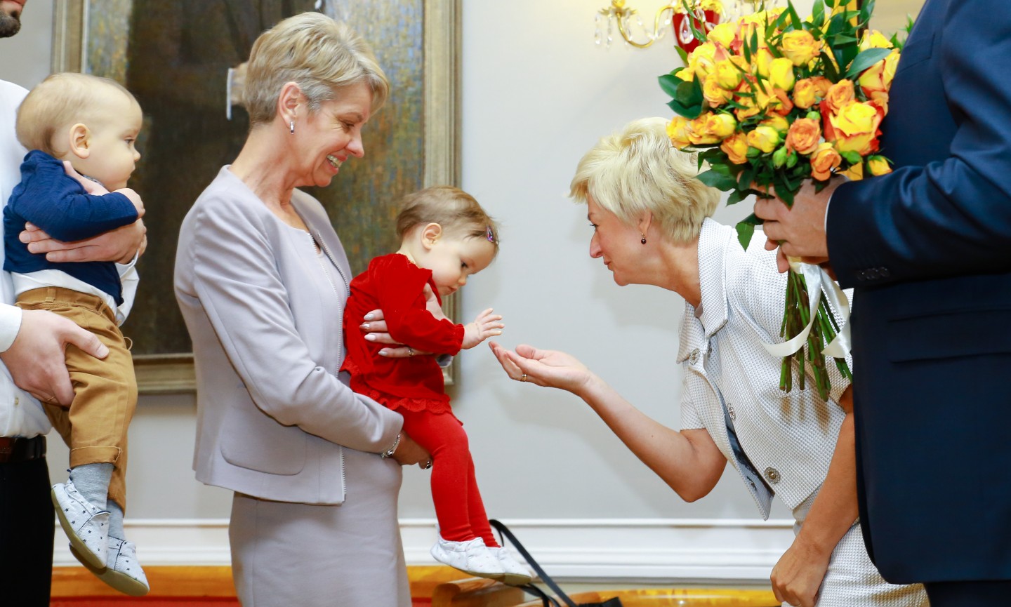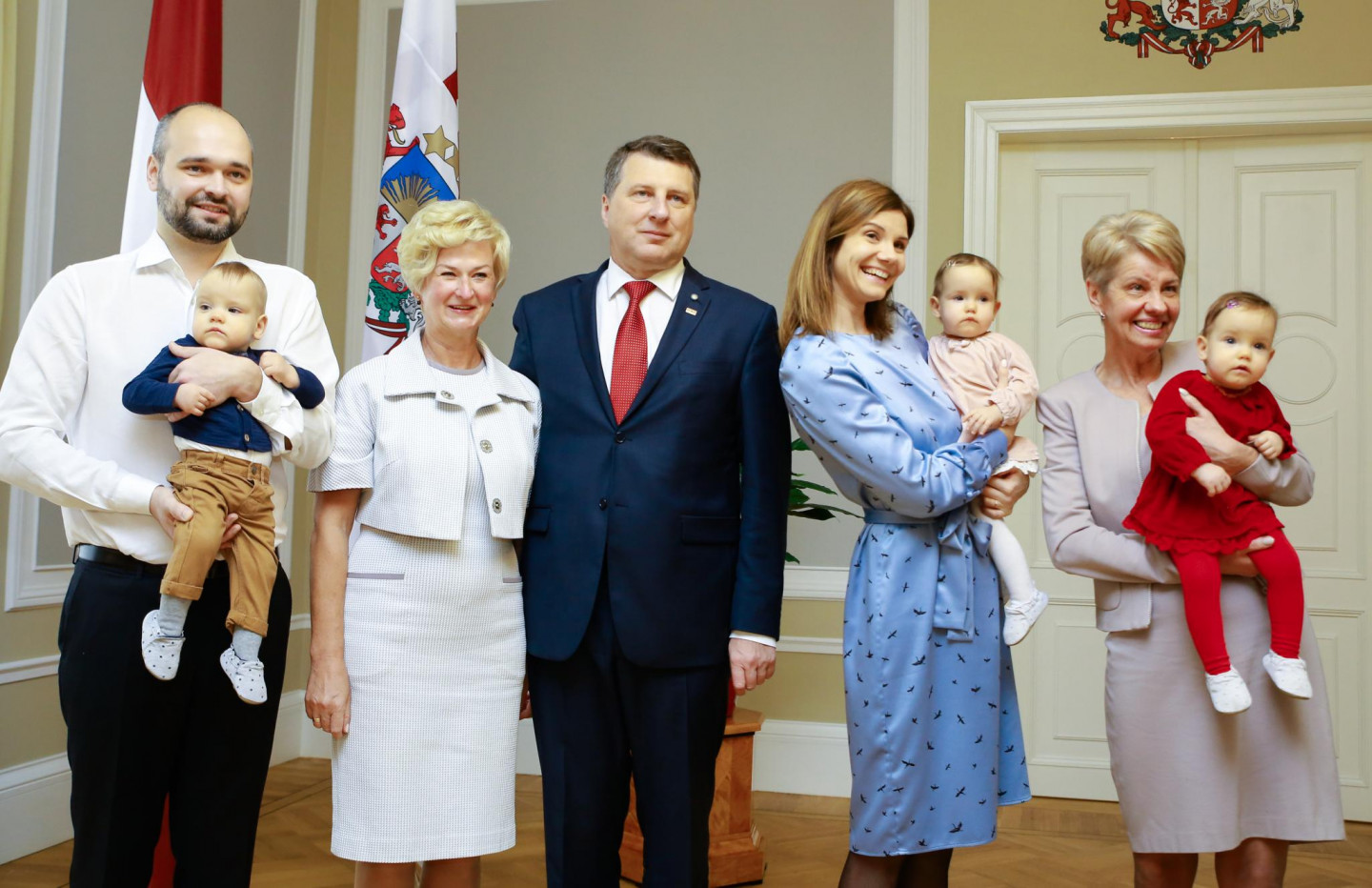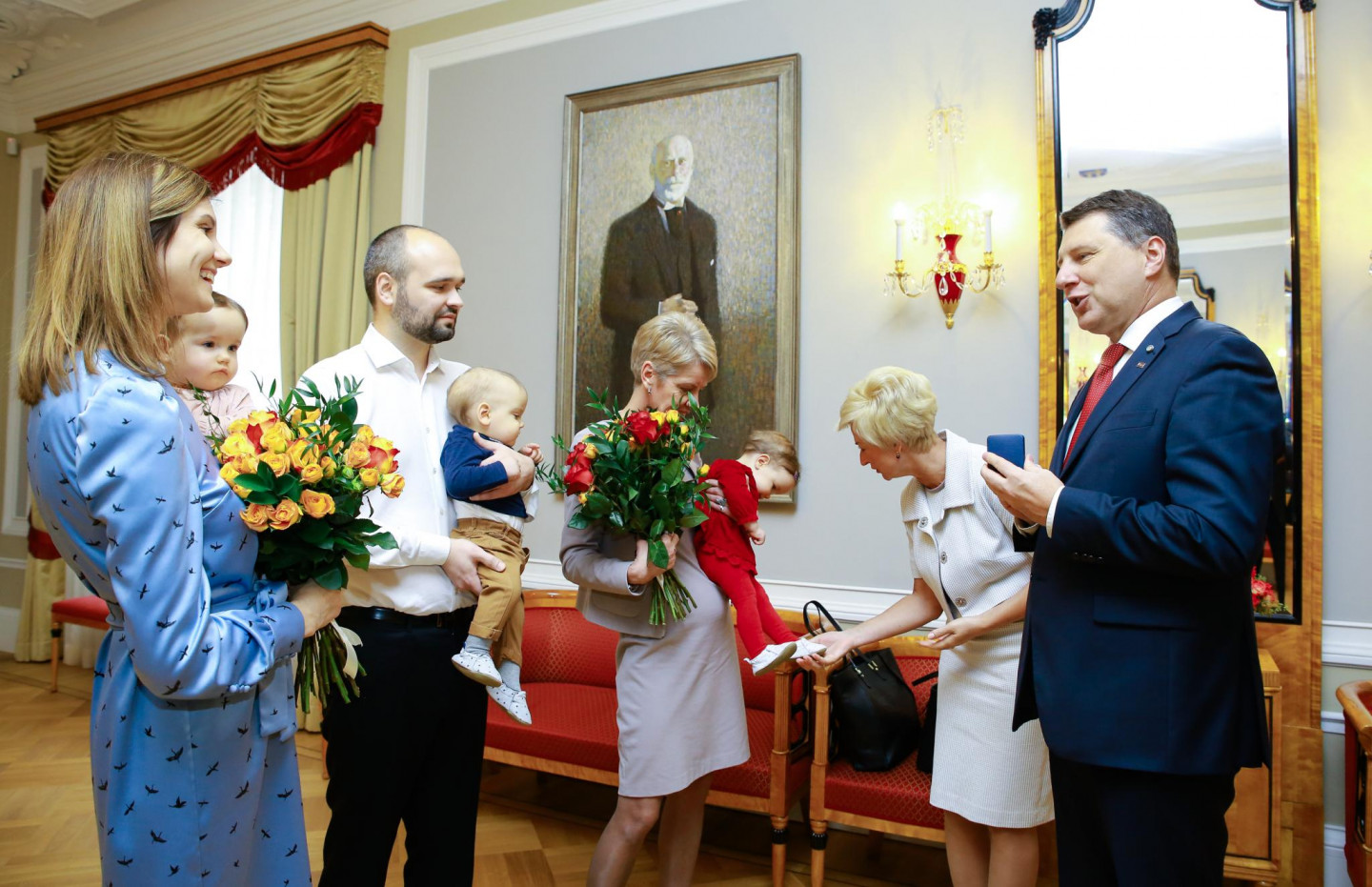 Rīgas pilī Valsts prezidents Raimonds Vējonis ar kundzi Ivetu Vējoni tikās ar Šponu ģimeni - 2017. gada janvārī dzimušajiem trīnīšiem un viņu vecākiem