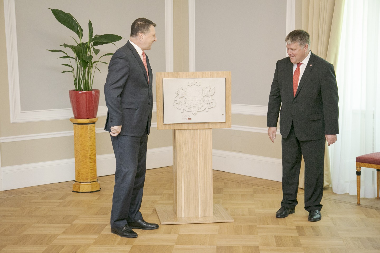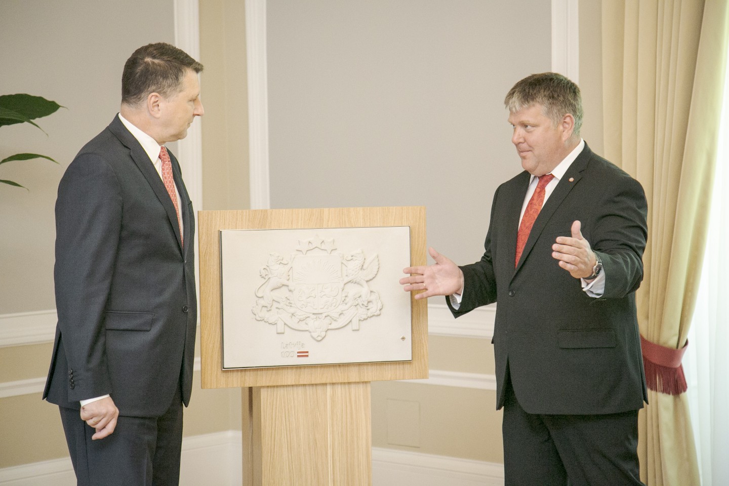 Svinot valsts simtgadi, būvmaisījumu ražotājs “Sakret” šodien, 9.maijā, uzdāvināja īpaši veidotu Latvijas Republikas ģerboni Valsts prezidenta kancelejai. Turpmākajos mēnešos uzņēmums dāvinās vairāk nekā simts ģerboņus dažādām Latvijas institūcijām un visām pašvaldībām. “Sakret” ģerbonis ir izliets no betona, apstrādāts ar īpašu aizsargkārtu un pirms projekta uzsākšanas saņēmis Valsts Heraldikas komisijas akceptu par tā precīzu izstrādi. Tas sver 15 kilogramus, ir 420x594 mm liels un 30 mm biezs, un veidots tā, lai varētu izvietot gan iekštelpās, gan ārpusē pie ēku fasādēm.