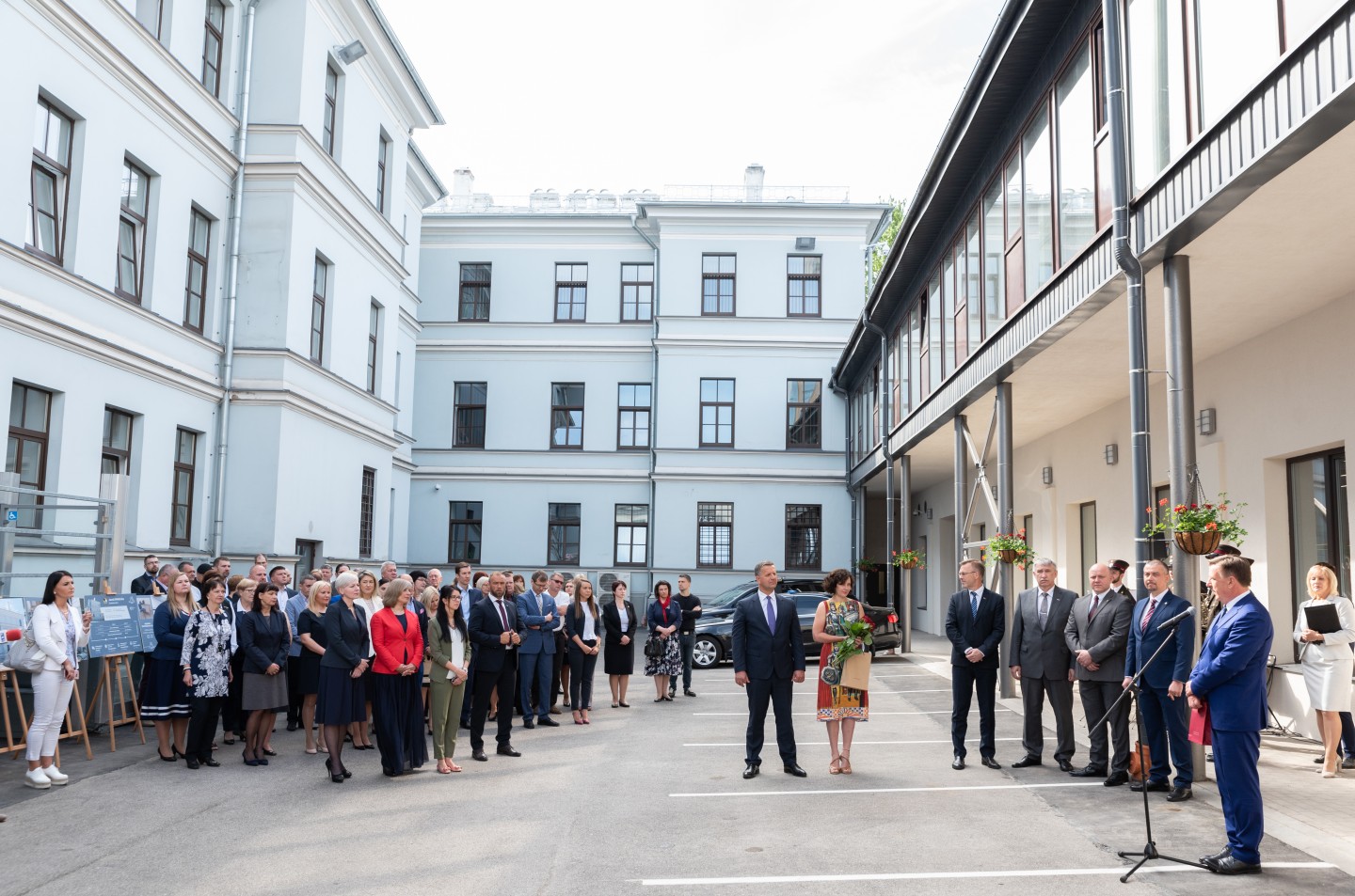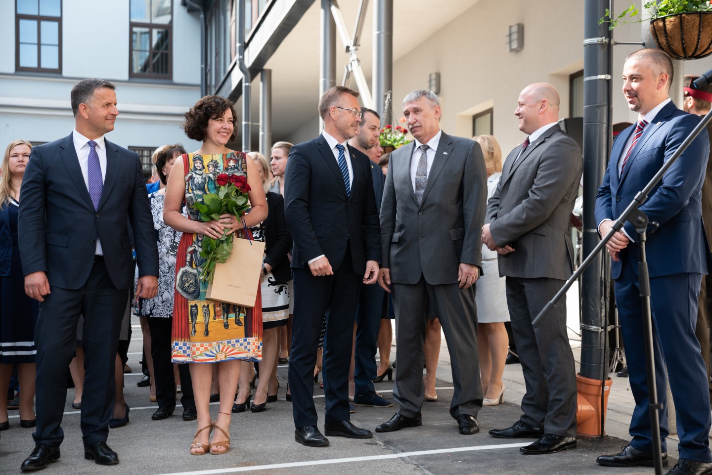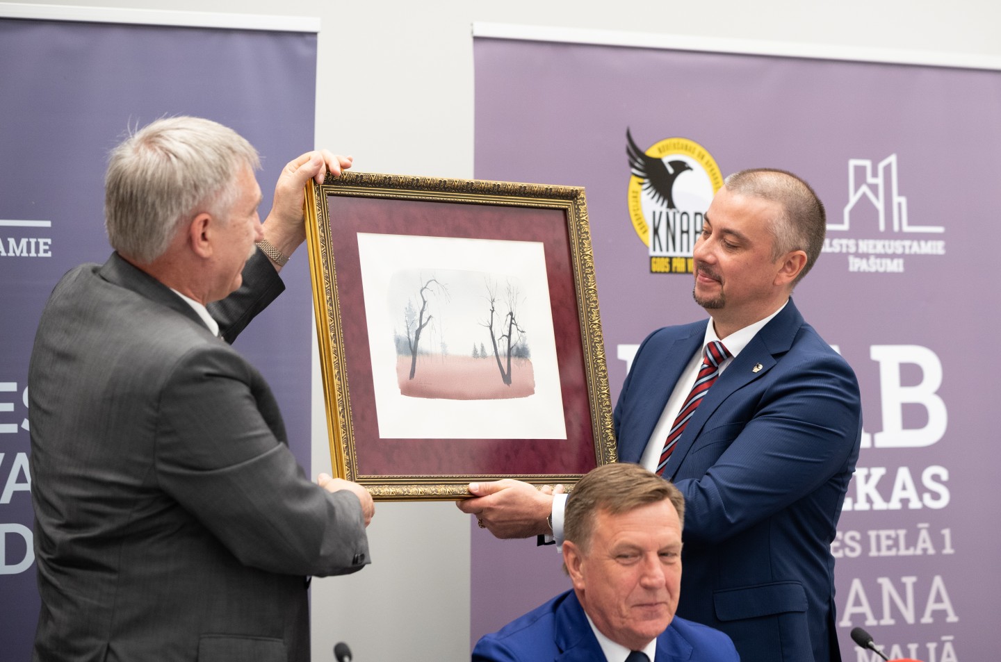 Rīgā, Citadeles ielā šodien ar militārā orķestra dalību, tēvreizi, karoga iesvētīšanu un jautrību izraisošām dāvanām atklāta jaunā Korupcijas novēršanas un apkarošanas biroja (KNAB) ēka. Atklāšanas ceremoniju pagodināja premjers Māris Kučinskis (ZZS), finanšu ministre Dana Reizniece-Ozola (ZZS), ģenerālprokurors Ēriks Kalnmeiers un citi viesi. Par pasākuma muzikālo noformējumu rūpējās militārais orķestris, bet jaunā KNAB karoga iesvētīšanu vadīja Nacionālo bruņoto spēku kapelāns, kurš savu uzrunu noslēdza ar tēvreizi. Iesvētīto karogu, kas tagad ir biroja otrais simbols premjers pasniedza KNAB priekšniekam.