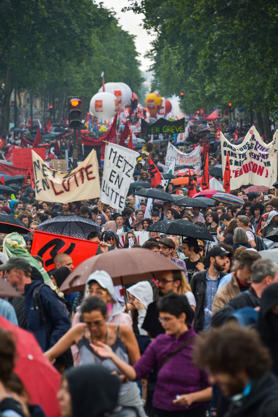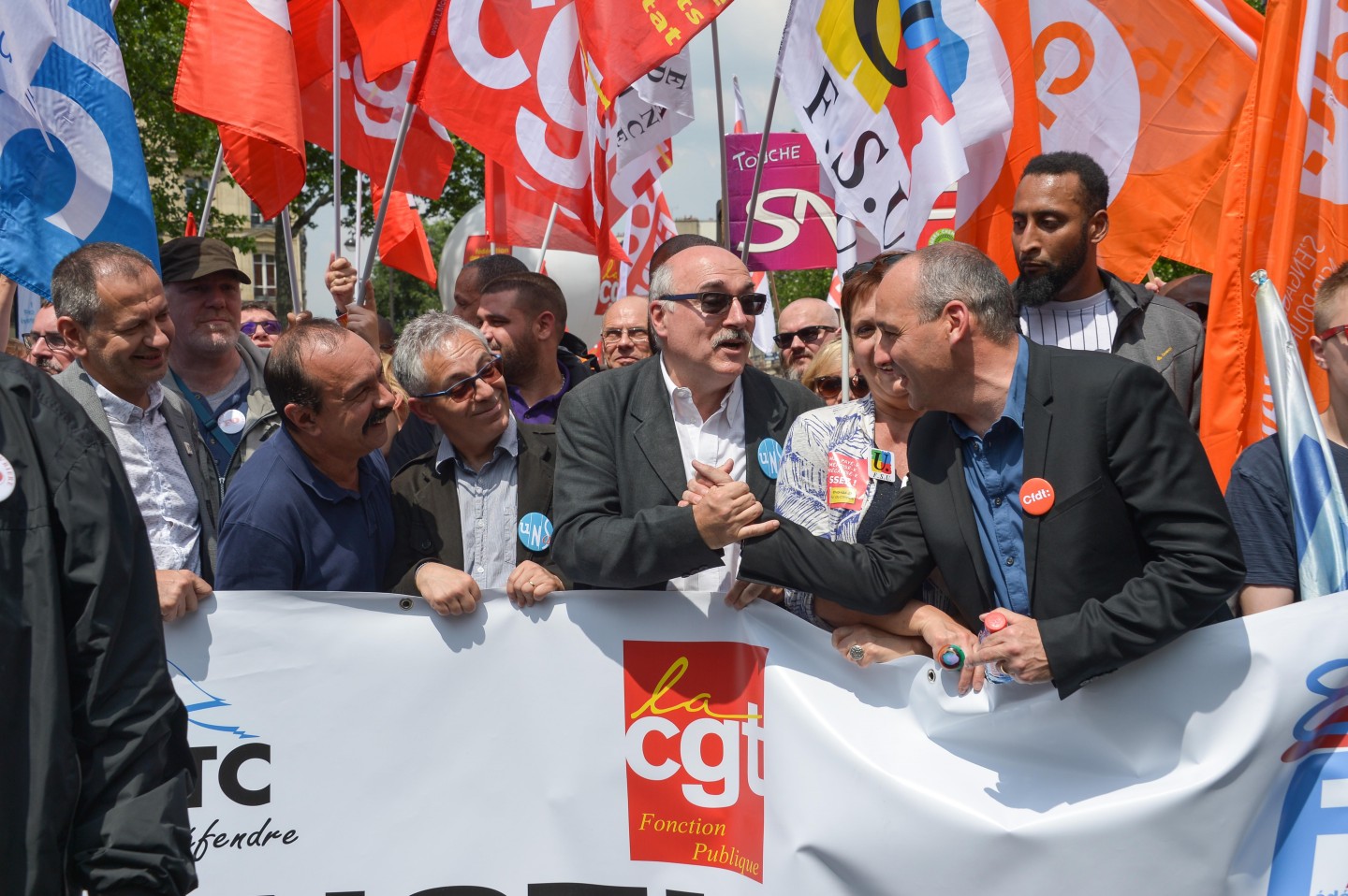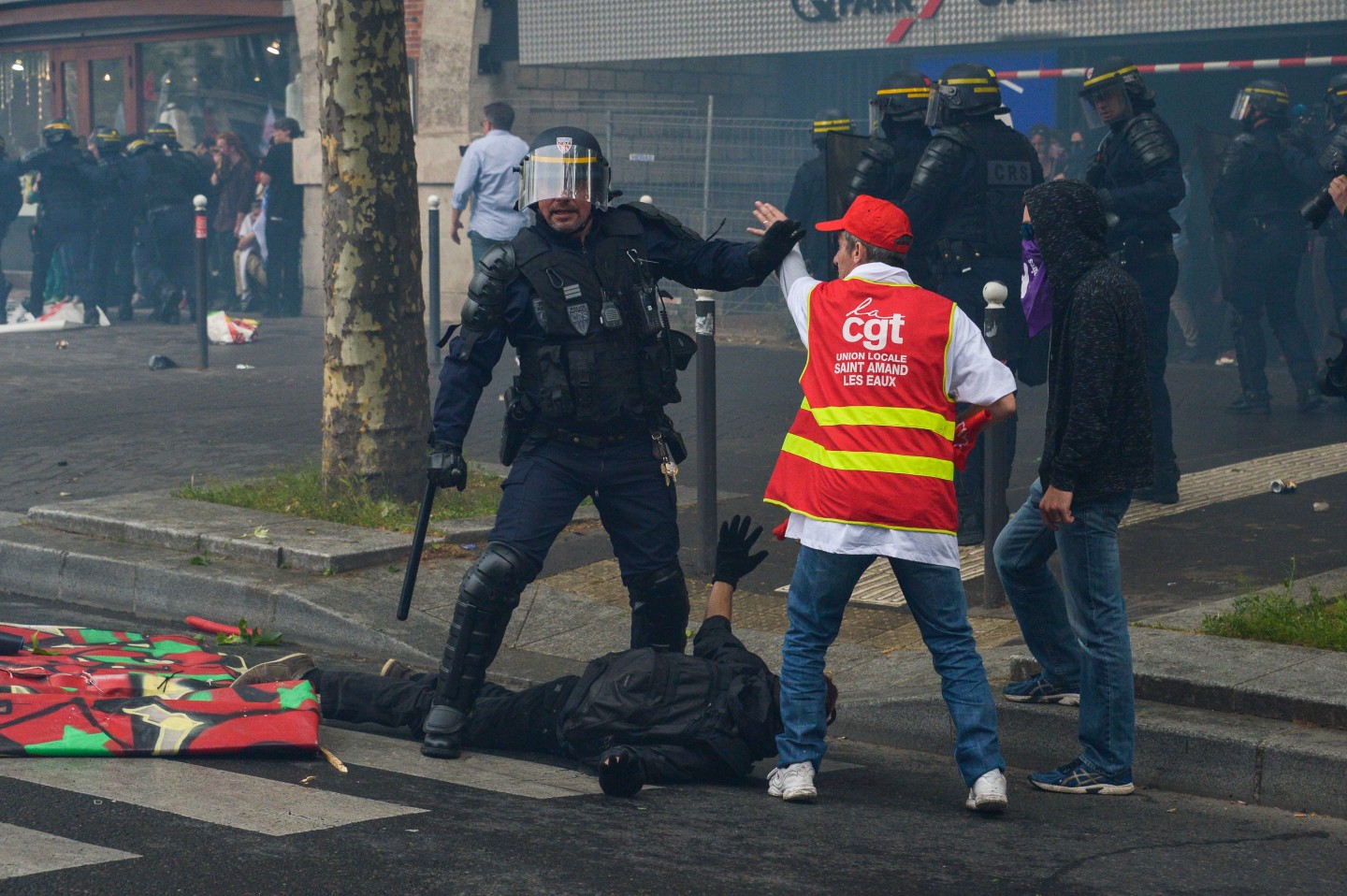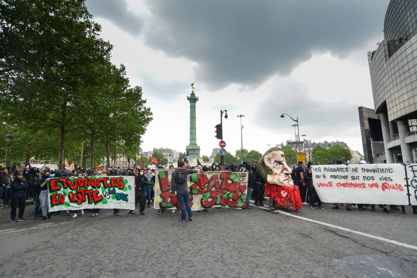 Parīzē otrdien notikušo protestu laikā izcēlās sadursmes starp maskējušos jauniešu grupām un policiju, kuru gaitā tika viegli ievainoti astoņi cilvēki, tai skaitā divi policisti, un policija aizturēja 20 cilvēkus. Sabiedriskā sektora darbinieku arodbiedrība pēcpusdienā rīkoja protesta gājienu, bet tā priekšgalā vietu ieņēma apmēram 200 jauniešu, no kuriem daudzi bija aizseguši sejas ar slēpotāju maskām. Daži no šiem jauniešiem izsita veikalu logus un apmētāja ar dažādiem priekšmetiem policistus, kuri lietoja asaru gāzi un stekus viņu izklīdināšanai. Arodbiedrības protesta dalībnieki bija spiesti apturēt gājienu, līdz nekārtības beidzās. Viņi sasniedza gājiena beigu punktu Nācijas laukumā Parīzes austrumos, kur daži demonstranti sadedzināja milzīgu papjēmašē lelli Francijas prezidenta Emanuela Makrona veidolā. Kad gājiens izklīda, vairāki desmiti cilvēku iegāja kādā vidusskolā, bet policija iejaucās, lai izbeigtu improvizēto ēkas ieņemšanu, un evakuēja cilvēkus no skolas telpām. Francijas sabiedriskajā sektorā strādājošie otrdien pievienojās streikojošajiem dzelzceļniekiem, lai protestētu pret prezidenta Emanuela Makrona ierosinātajām reformām. Sabiedriskā sektora reformas, kuras plānots īstenot nākamgad, paredz plašāku līgumdarbinieku izmantošanu un līdz 2022.gadam likvidēt 120 000 no pašreizējiem 5,6 miljoniem darbavietu. Daudzi civildienesta ierēdņi baidās pazaudēt savu īpašo statusu un šobrīd līdz mūža beigām garantētās darbavietas, kā tas šobrīd jau notiek ar tiem, kurus no jauna pieņem darbā valsts dzelzceļa uzņēmumā SNCF. Šis sabiedriskā sektora streiks ir jau trešais kopš Makrona nākšanas pie varas 2017.gadā.