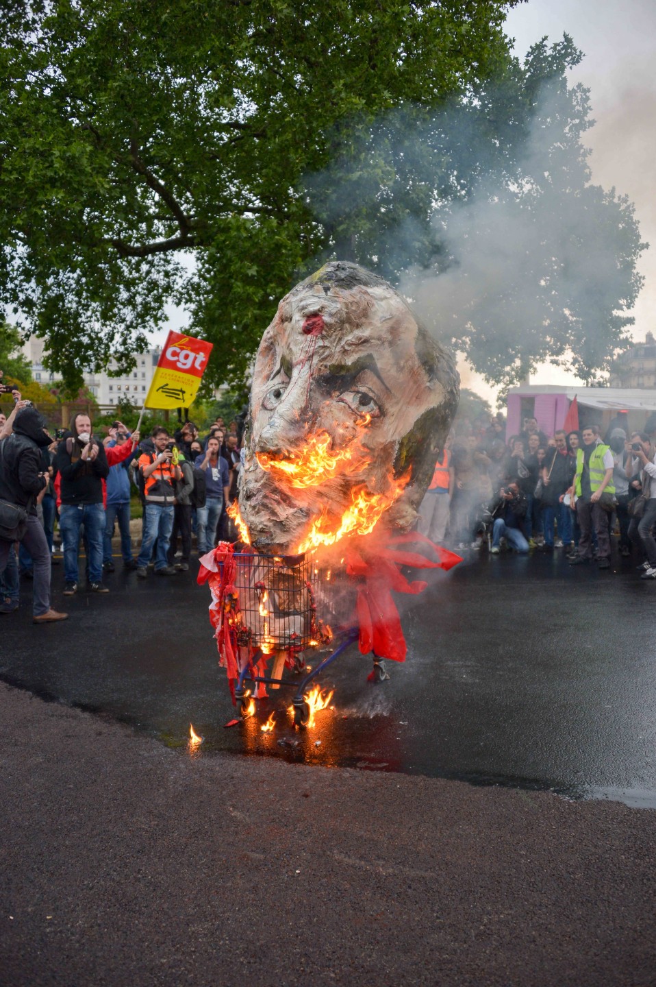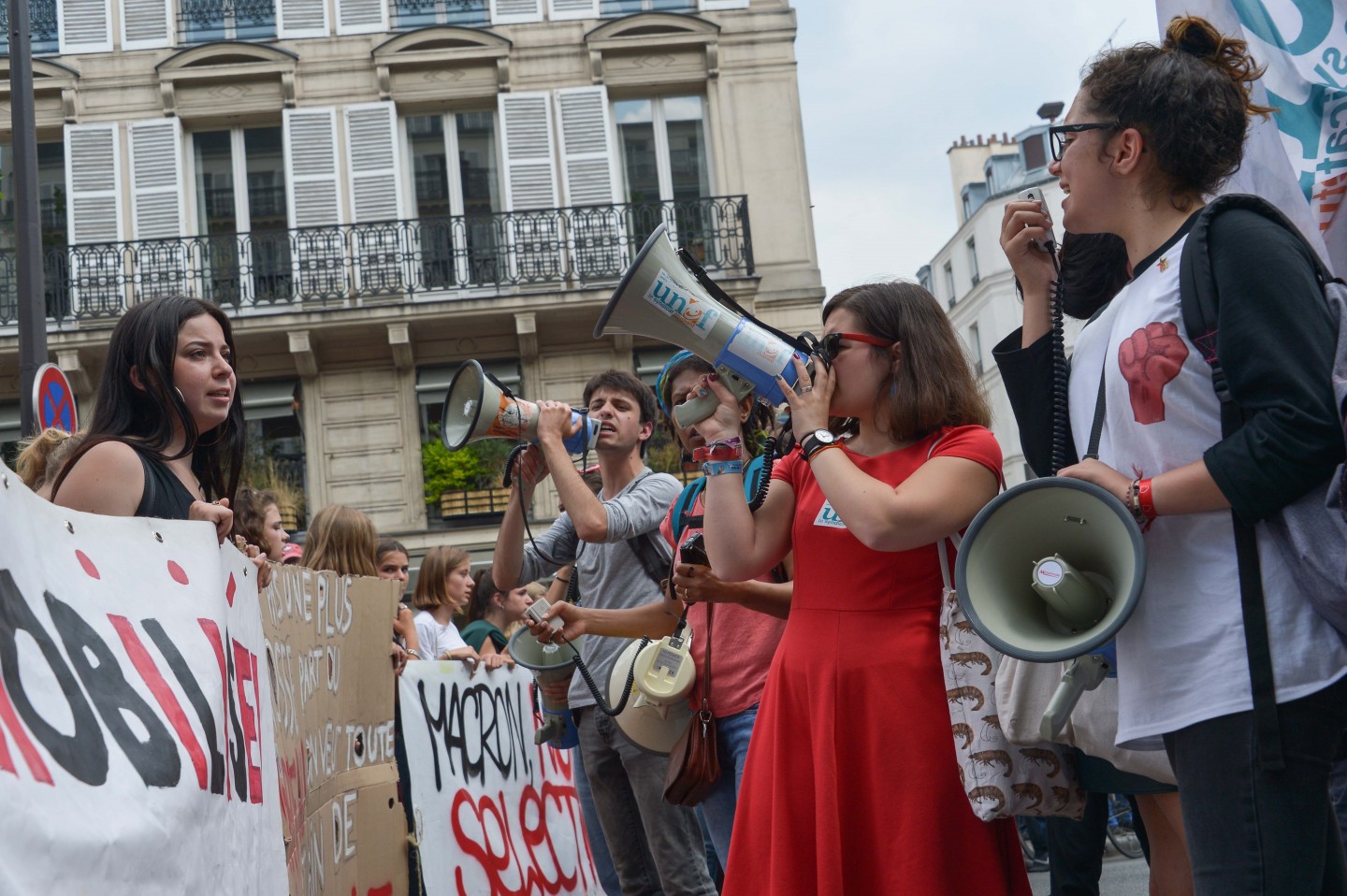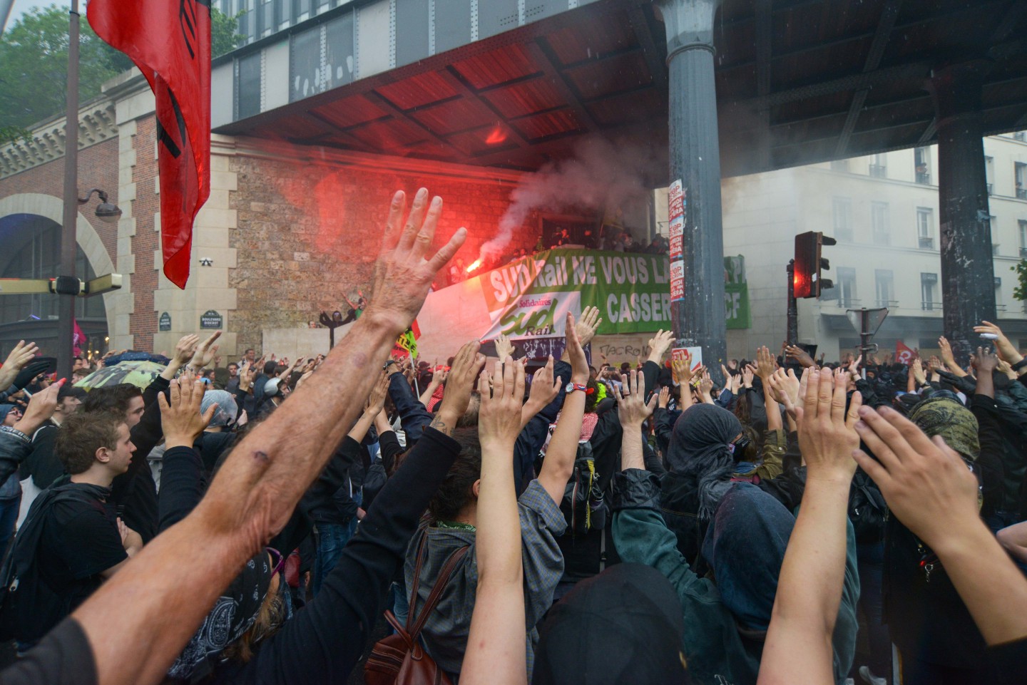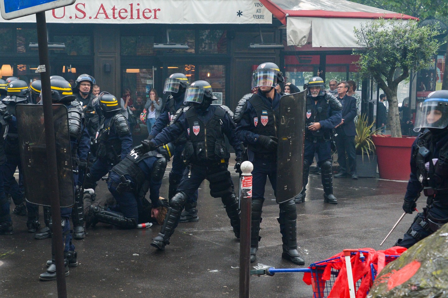 Parīzē otrdien notikušo protestu laikā izcēlās sadursmes starp maskējušos jauniešu grupām un policiju, kuru gaitā tika viegli ievainoti astoņi cilvēki, tai skaitā divi policisti, un policija aizturēja 20 cilvēkus. Sabiedriskā sektora darbinieku arodbiedrība pēcpusdienā rīkoja protesta gājienu, bet tā priekšgalā vietu ieņēma apmēram 200 jauniešu, no kuriem daudzi bija aizseguši sejas ar slēpotāju maskām. Daži no šiem jauniešiem izsita veikalu logus un apmētāja ar dažādiem priekšmetiem policistus, kuri lietoja asaru gāzi un stekus viņu izklīdināšanai. Arodbiedrības protesta dalībnieki bija spiesti apturēt gājienu, līdz nekārtības beidzās. Viņi sasniedza gājiena beigu punktu Nācijas laukumā Parīzes austrumos, kur daži demonstranti sadedzināja milzīgu papjēmašē lelli Francijas prezidenta Emanuela Makrona veidolā. Kad gājiens izklīda, vairāki desmiti cilvēku iegāja kādā vidusskolā, bet policija iejaucās, lai izbeigtu improvizēto ēkas ieņemšanu, un evakuēja cilvēkus no skolas telpām. Francijas sabiedriskajā sektorā strādājošie otrdien pievienojās streikojošajiem dzelzceļniekiem, lai protestētu pret prezidenta Emanuela Makrona ierosinātajām reformām. Sabiedriskā sektora reformas, kuras plānots īstenot nākamgad, paredz plašāku līgumdarbinieku izmantošanu un līdz 2022.gadam likvidēt 120 000 no pašreizējiem 5,6 miljoniem darbavietu. Daudzi civildienesta ierēdņi baidās pazaudēt savu īpašo statusu un šobrīd līdz mūža beigām garantētās darbavietas, kā tas šobrīd jau notiek ar tiem, kurus no jauna pieņem darbā valsts dzelzceļa uzņēmumā SNCF. Šis sabiedriskā sektora streiks ir jau trešais kopš Makrona nākšanas pie varas 2017.gadā.