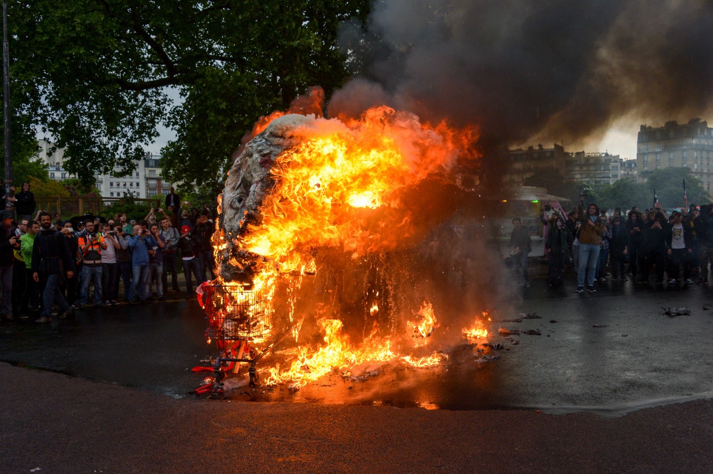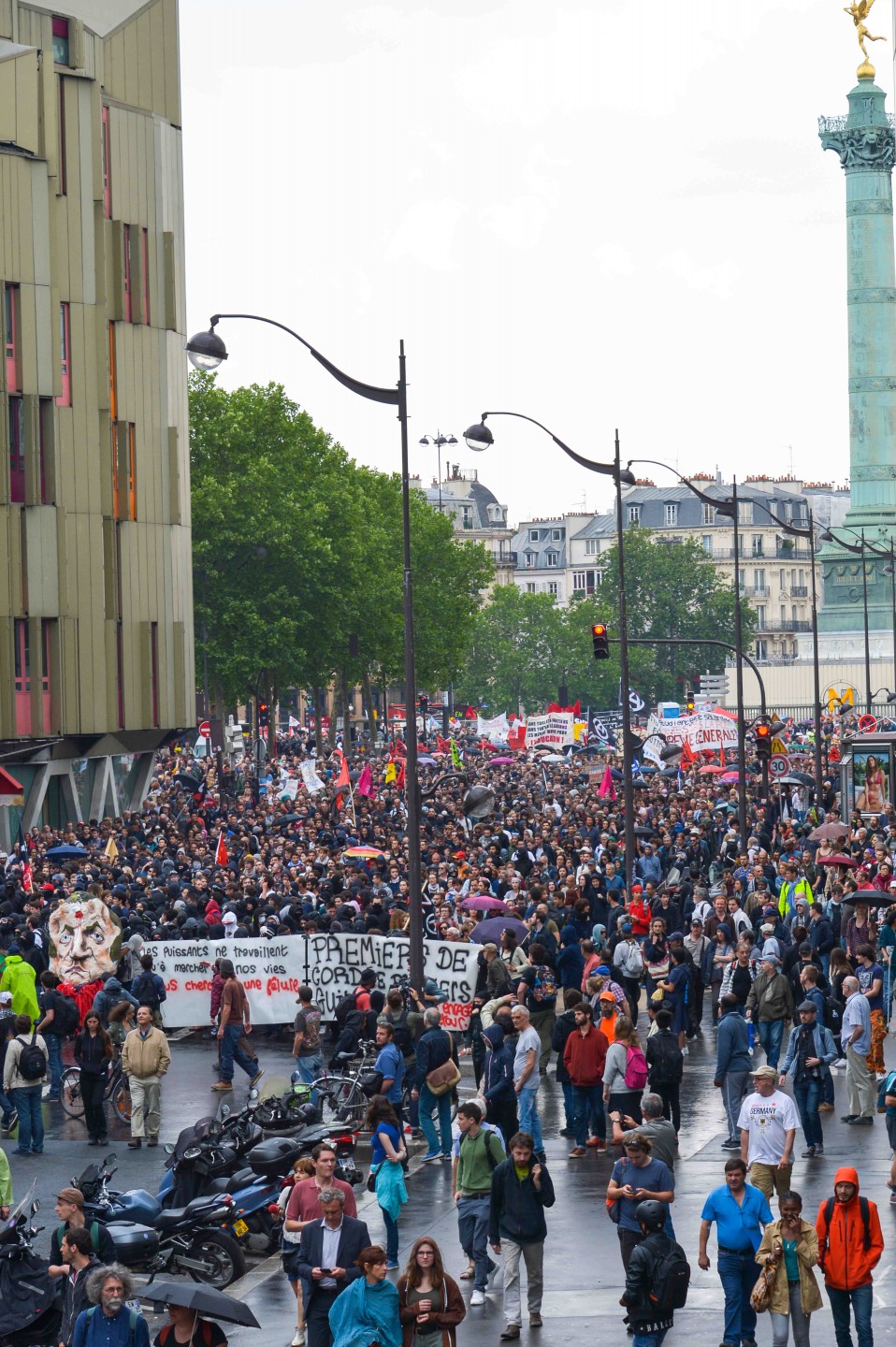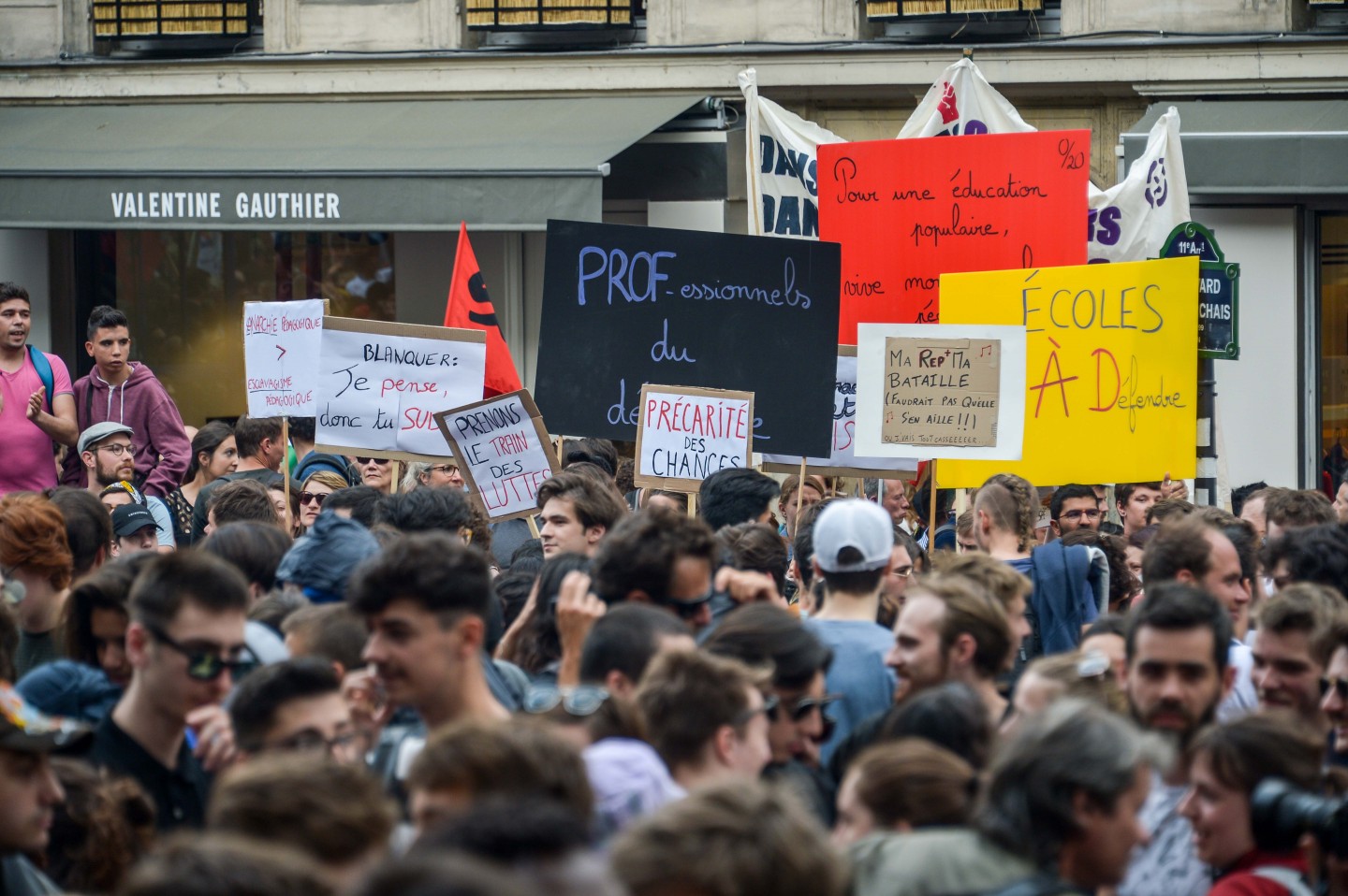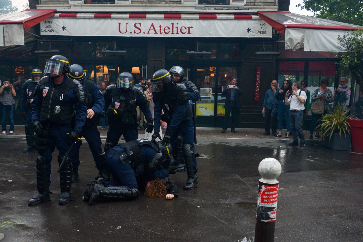Parīzē otrdien notikušo protestu laikā izcēlās sadursmes starp maskējušos jauniešu grupām un policiju, kuru gaitā tika viegli ievainoti astoņi cilvēki, tai skaitā divi policisti, un policija aizturēja 20 cilvēkus. Sabiedriskā sektora darbinieku arodbiedrība pēcpusdienā rīkoja protesta gājienu, bet tā priekšgalā vietu ieņēma apmēram 200 jauniešu, no kuriem daudzi bija aizseguši sejas ar slēpotāju maskām. Daži no šiem jauniešiem izsita veikalu logus un apmētāja ar dažādiem priekšmetiem policistus, kuri lietoja asaru gāzi un stekus viņu izklīdināšanai. Arodbiedrības protesta dalībnieki bija spiesti apturēt gājienu, līdz nekārtības beidzās. Viņi sasniedza gājiena beigu punktu Nācijas laukumā Parīzes austrumos, kur daži demonstranti sadedzināja milzīgu papjēmašē lelli Francijas prezidenta Emanuela Makrona veidolā. Kad gājiens izklīda, vairāki desmiti cilvēku iegāja kādā vidusskolā, bet policija iejaucās, lai izbeigtu improvizēto ēkas ieņemšanu, un evakuēja cilvēkus no skolas telpām. Francijas sabiedriskajā sektorā strādājošie otrdien pievienojās streikojošajiem dzelzceļniekiem, lai protestētu pret prezidenta Emanuela Makrona ierosinātajām reformām. Sabiedriskā sektora reformas, kuras plānots īstenot nākamgad, paredz plašāku līgumdarbinieku izmantošanu un līdz 2022.gadam likvidēt 120 000 no pašreizējiem 5,6 miljoniem darbavietu. Daudzi civildienesta ierēdņi baidās pazaudēt savu īpašo statusu un šobrīd līdz mūža beigām garantētās darbavietas, kā tas šobrīd jau notiek ar tiem, kurus no jauna pieņem darbā valsts dzelzceļa uzņēmumā SNCF. Šis sabiedriskā sektora streiks ir jau trešais kopš Makrona nākšanas pie varas 2017.gadā.