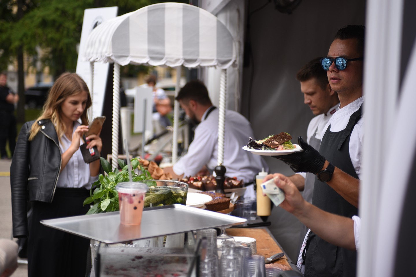 Šodien plkst. 13:00 pie Latvijas Nacionālā mākslas muzeja tika atvērts “Live Rīga Dziesmusvētku restorāns”. Restorāns darbosies trīs dienas, un tajā piedalās desmit populāri Rīgas restorāni un to šefpavāri. Restorāns būs ne tikai vieta, kur baudīt gardu ēdienu, bet tas darbosies arī kā viena no publiskajām svētku skatīšanās vietām pilsētvidē. “Live Rīga Dziesmusvētku restorānā” piedalīsies un līdzās viens otram zem klajas debess trīs dienu garumā apmeklētājus priecēs restorāni Entresol, Ferma, Vīna bārs Garage, International, Kaļķu vārti, Kolonāde.Mūsu stāsti.., MUUSU, Osta, Rocket Bean Roastery, Valmiermuižas alus vēstniecība Rīgā. Paralēli vēderpriekiem visas dienas garumā uz lielā ekrāna tiks rādīti deju koncertu ieraksti, Dziesmu un Deju svētku vēstnešu stāsti, translācijas no LTV Dziesmu un Deju svētku studijas, kā arī translētas tiešraides no deju lieluzveduma “Māras zeme” un noslēguma koncerta “Zvaigžņu ceļā” no Mežaparka estrādes. Restorāna darba laiki: 6. jūlijā no plkst. 13:00 līdz 22:00, 7.jūlijā no plkst. 12:00 līdz 00:30, 8.jūlijā no plkst. 12:00 līdz 00:00.