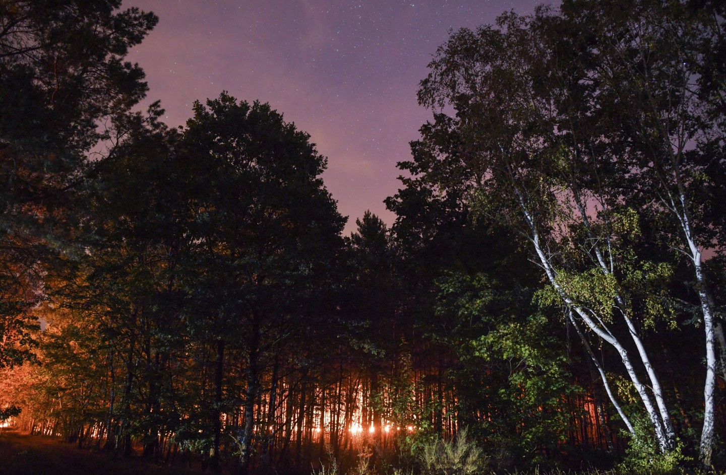 Uz austrumiem no Berlīnes strauji izplatoties mežu ugunsgrēkam, kas pārņēmis jau 400 futbola laukumiem atbilstošu platību, piektdien evakuēti trīs ciemati. Savas mājas Troienbīcenes mazpilsētas apkārtnē, kas atrodas aptuveni 50 kilometrus no Vācijas galvaspilsētas, bijuši spiesti atstāt vairāk nekā 500 cilvēki. Lai gan liesmu izplatīšanos joprojām nav izdevies apturēt, pagaidām neviena ēka nav cietusi, pavēstījis vietējās municipālās padomes pārstāvis. Tikmēr policija ziņo, ka mēģinājumus ugunsgrēku apslāpēt kavē Otrā pasaules kara munīcija, kuru joprojām slēpj zeme apkārtnes mežos un kas varētu eksplodēt liesmu radītā karstuma ietekmē. Ugunsgrēks sākās ceturtdienas pēcpusdienā, un jau līdz vakaram varasiestādes bija evakuējušas Fronsdorfas, Klausdorfas un Tīfenbrunnenes ciematus. Naktī uz piektdienu vēju nestie dūmi jau sasniedza Berlīni, un varasiestādes aicinājušas vairāku apkaimju iedzīvotājus nevērt vaļā logus. Vairāki simti ugunsdzēsēju pie Troienbīcenes veido izcirtumus, lai ierobežotu uguns izplatību.