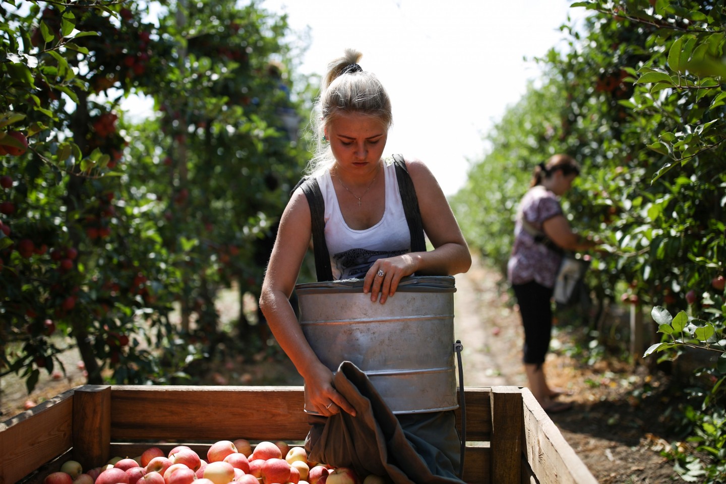 Bagātīga ābolu raža šogad novākta Kreivijā, Krasnodaras apgabalā. Āboli tiks pārstrādāti uzņēmuma "Alma Production" vajadzībām.