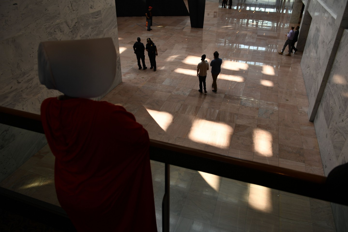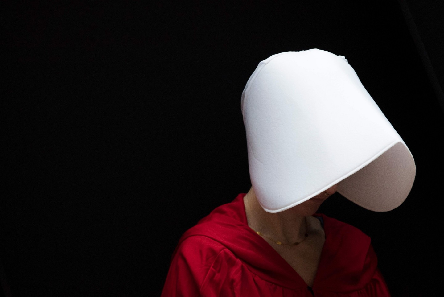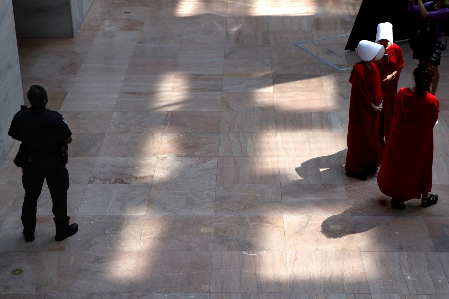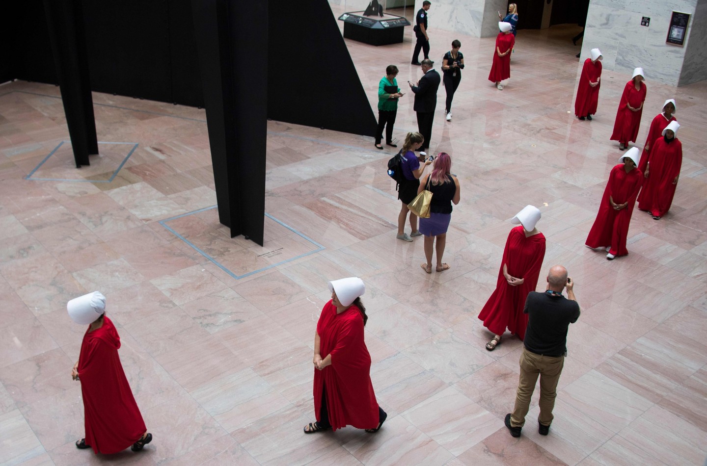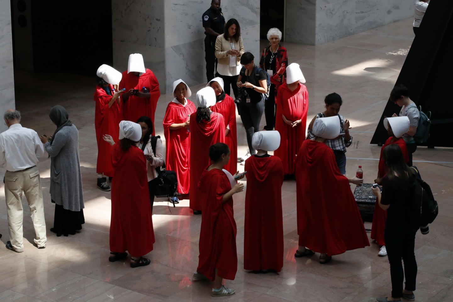 Sievietes, ģērbušās kā seriāla "Kalpones stāsts" varones, ASV protestēja par jaunāko ASV Augstākās tiesas tiesneša nominantu Bretu Kavanu, kurš iestājas pret abortiem un pārstāv sievietēm nelabvēlīgus uzskatus.