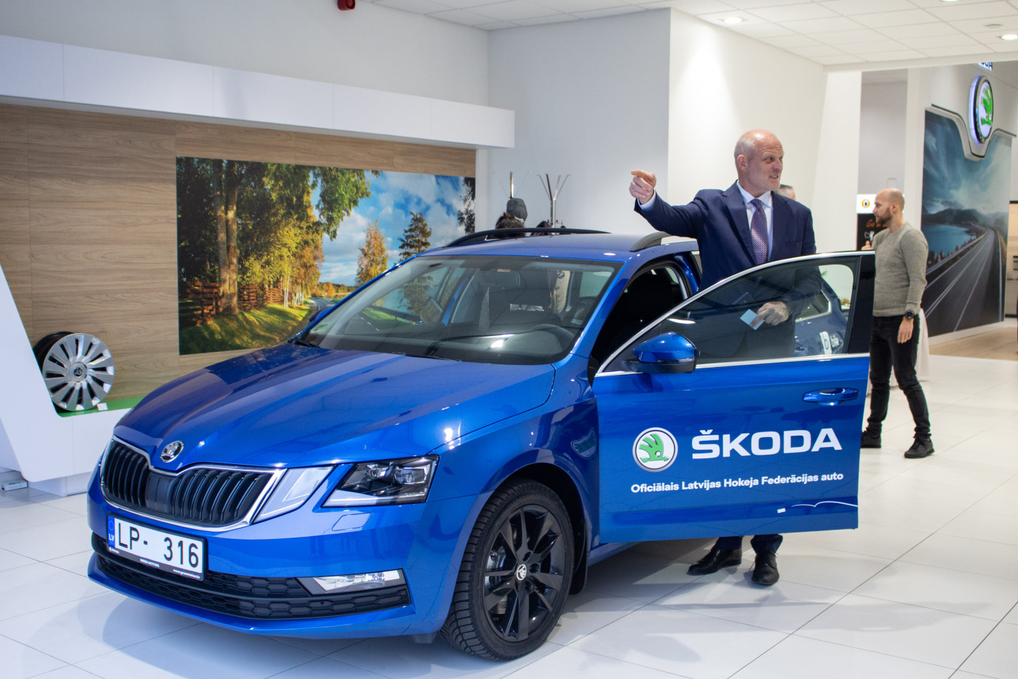 Latvijas Hokeja federācijai (LHF) un valstsvienības galvenajam trenerim Bobam Hārtlijam šodien svinīgā pasākumā pasniegtas "Škoda" automašīnas. Kanādiešu speciālists Hārtlijs ieradies Latvijā, kur kopā ar valstsvienību gatavojas šonedēļ gaidāmajam "Euro Ice Hockey Challenge" (EIHC) turnīram Minskā. Tajā komanda spēkosies ar Slovēniju, Franciju un mājinieci Baltkrieviju.Pirmo maču šajā EIHC turnīrā Latvijas hokejisti aizvadīs ceturtdien pret Slovēnijas komandu, dienu vēlāk tiksies ar Franciju, bet turnīru noslēgs sestdien ar spēli pret mājiniekiem Baltkrieviju.
