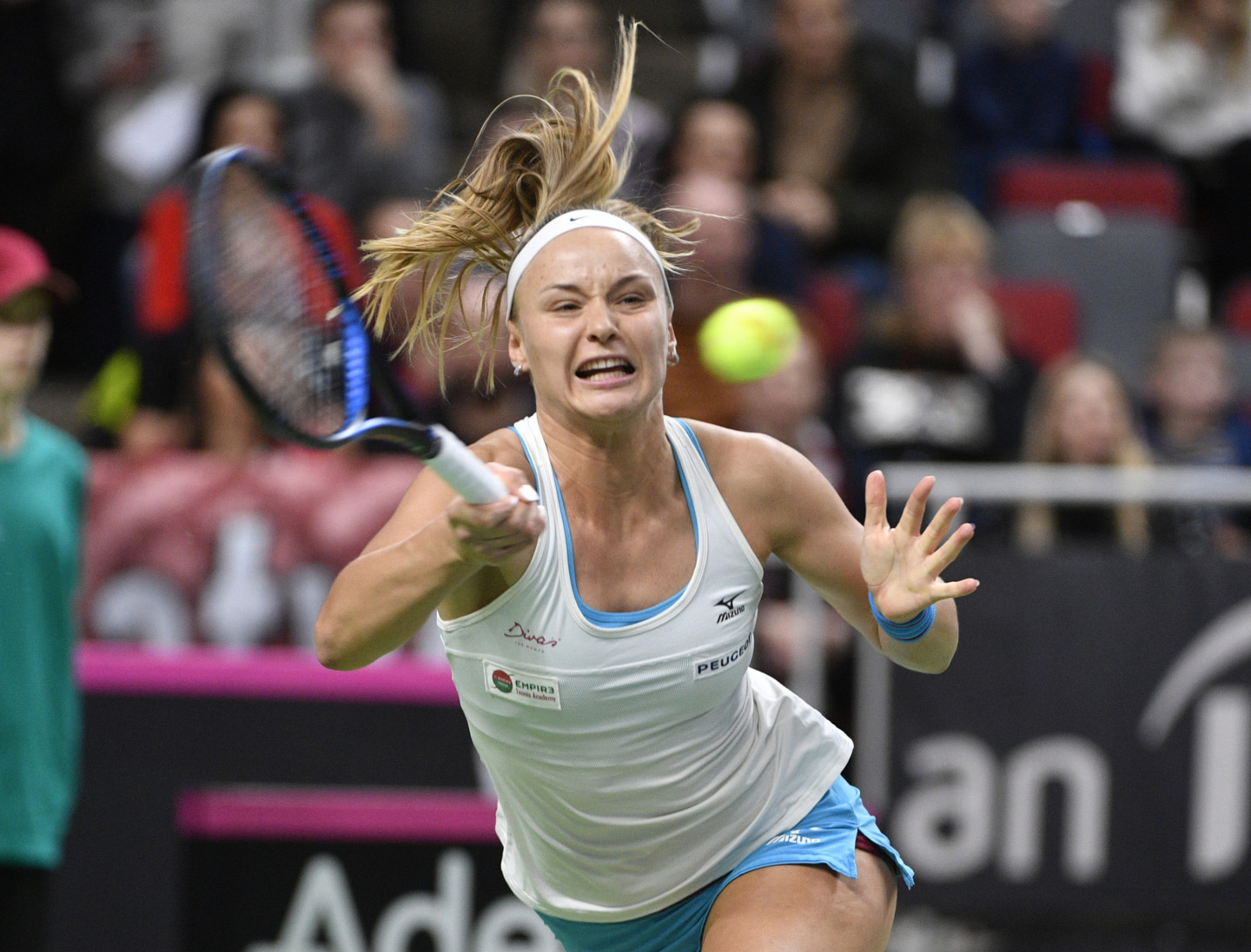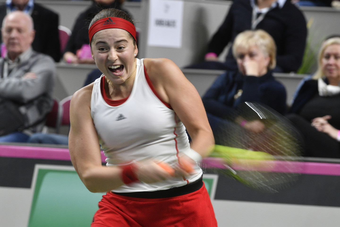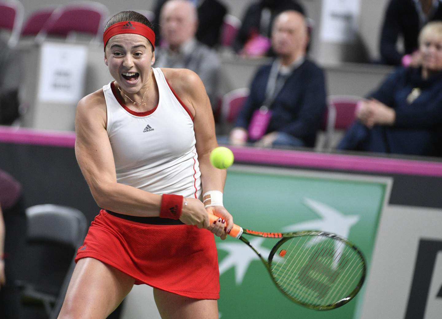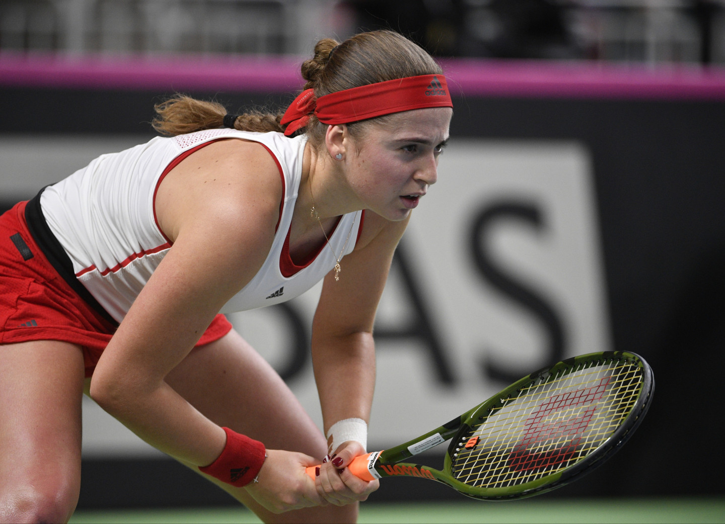 Latvijas sieviešu tenisa otrā rakete Aļona Ostapenko Federāciju kausa Pasaules otrās grupas pirmās kārtas duelī šodien aizvadīja cīņu pret slovākieti Rebeku Šramkovu.
