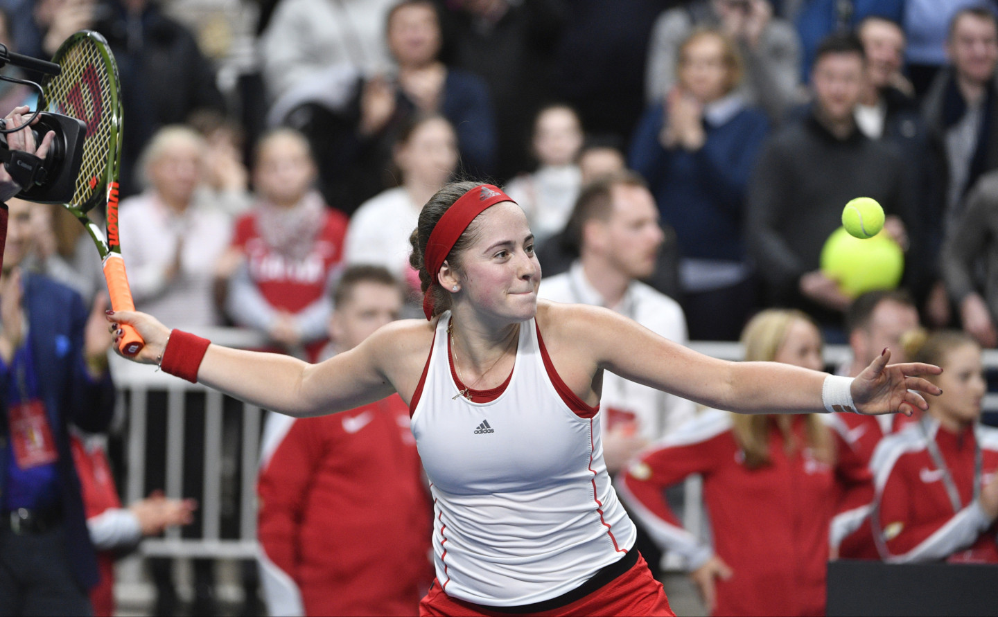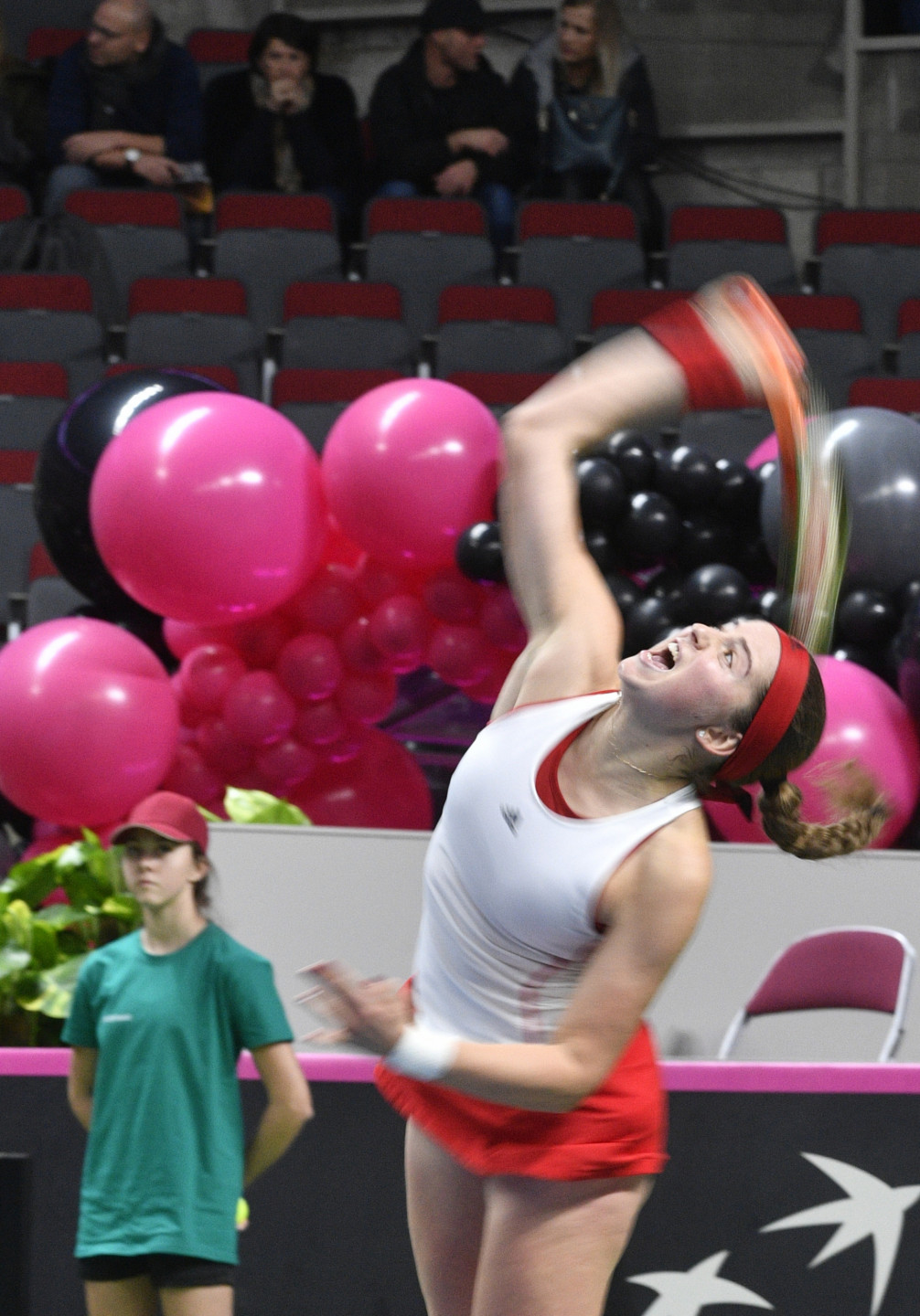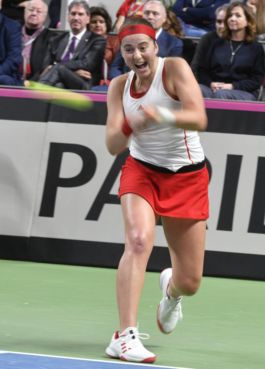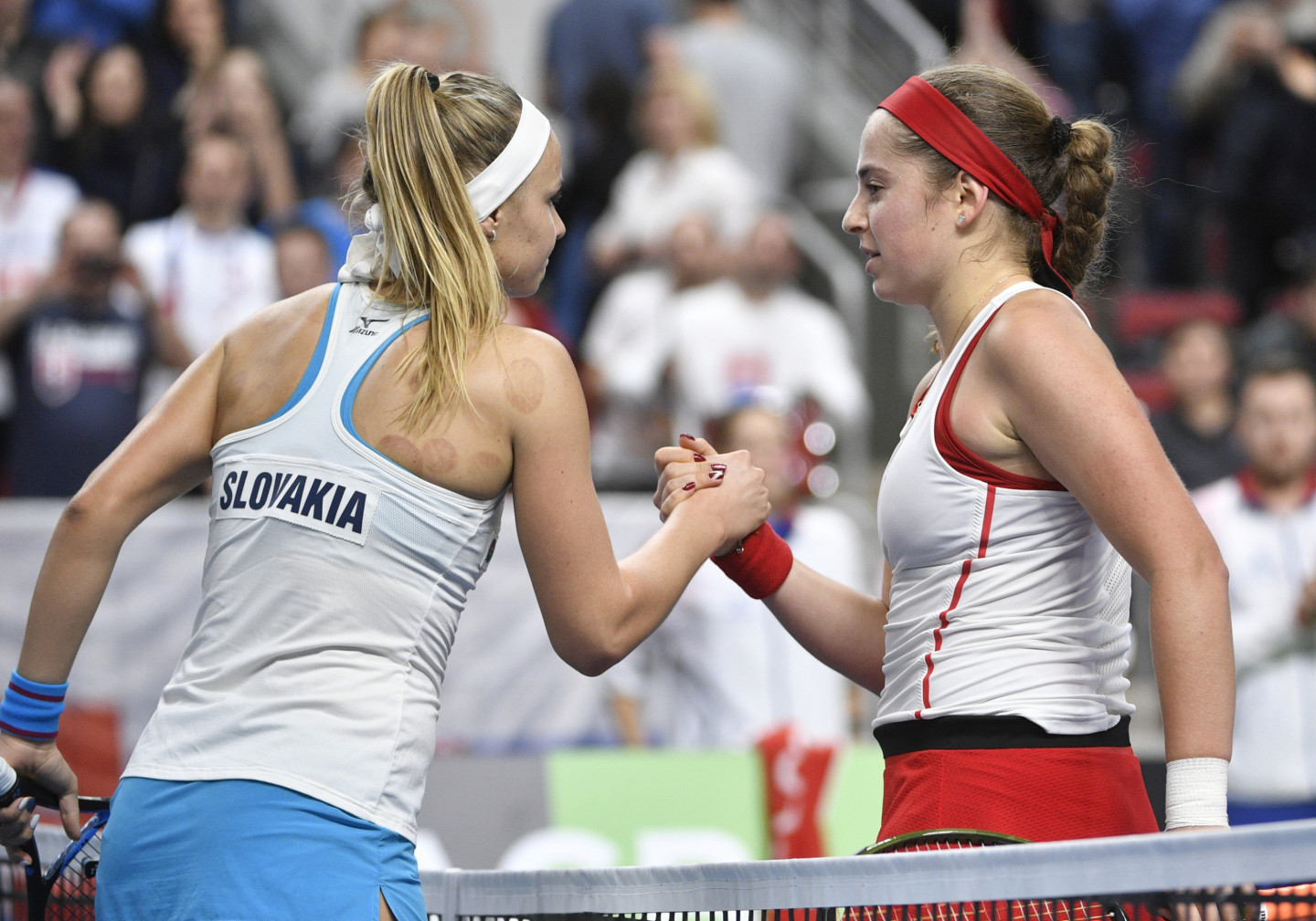 Latvijas sieviešu tenisa otrā rakete Aļona Ostapenko Federāciju kausa Pasaules otrās grupas pirmās kārtas duelī šodien aizvadīja cīņu pret slovākieti Rebeku Šramkovu.