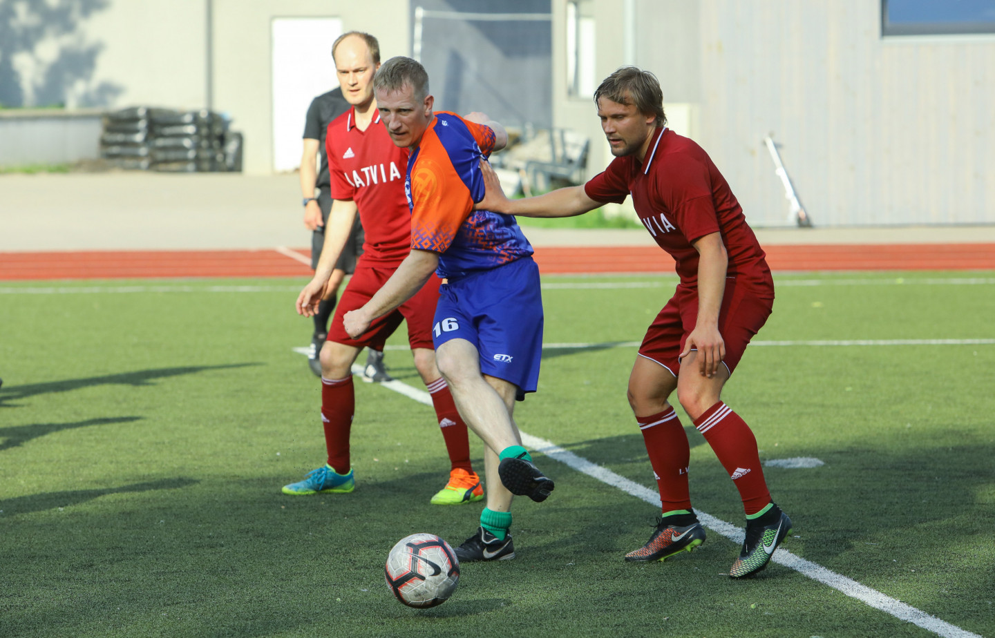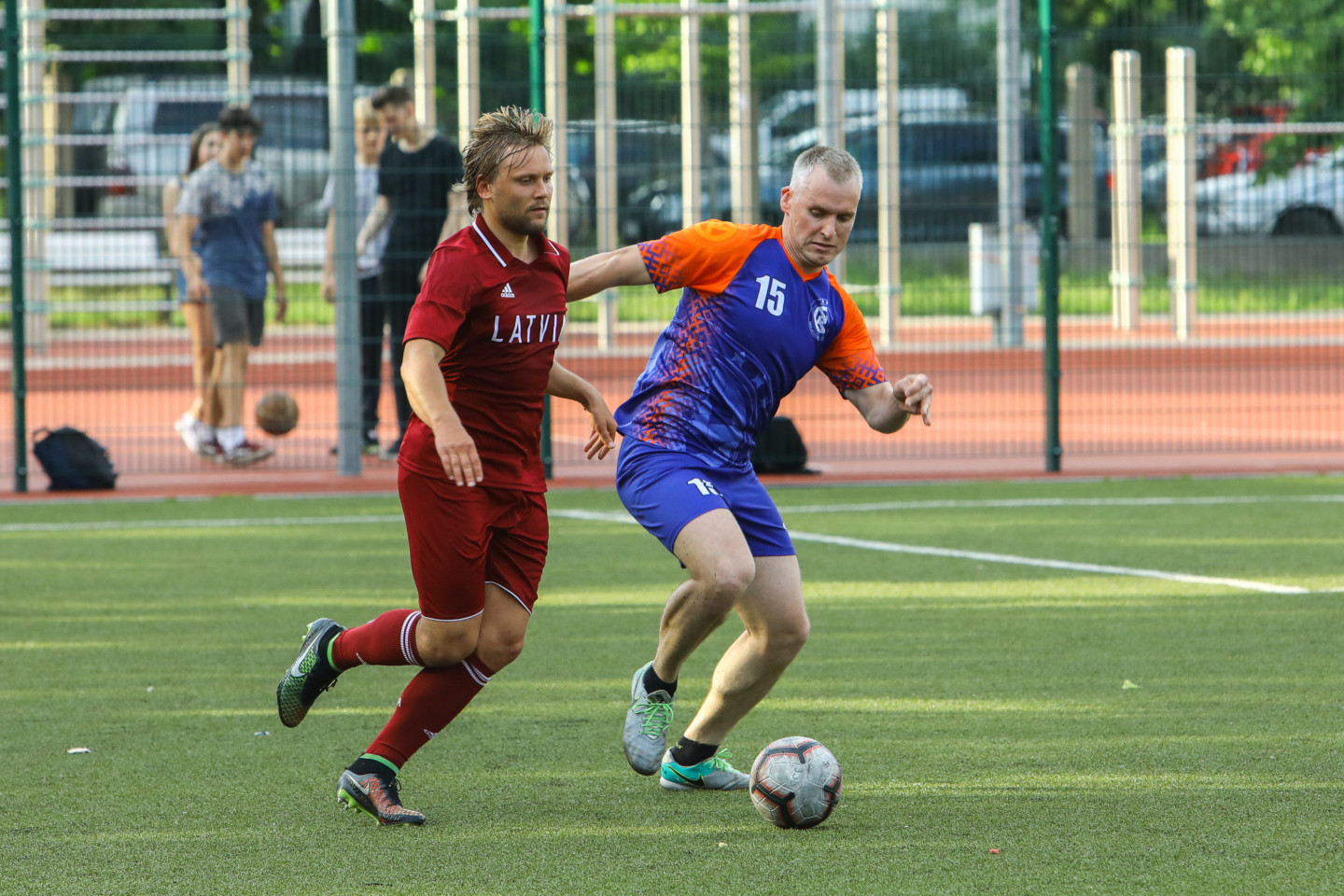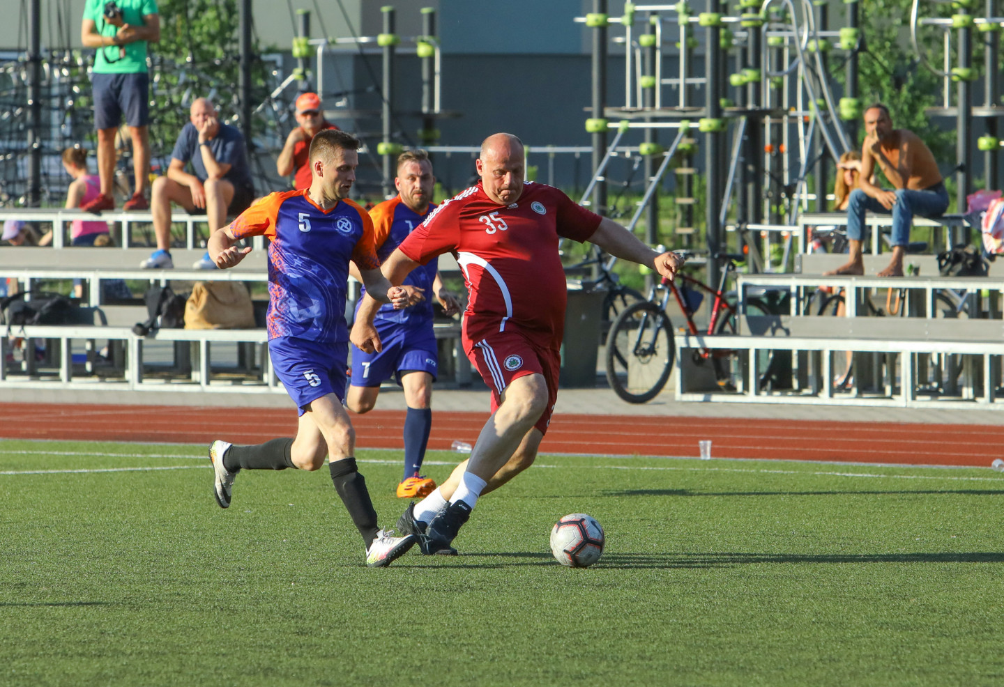 Rīgas Klasiskās ģimnāzijas futbola laukumā notika draudzības spēle starp Saeimas un Nacionālo bruņoto spēku Apvienotā štāba komandam.