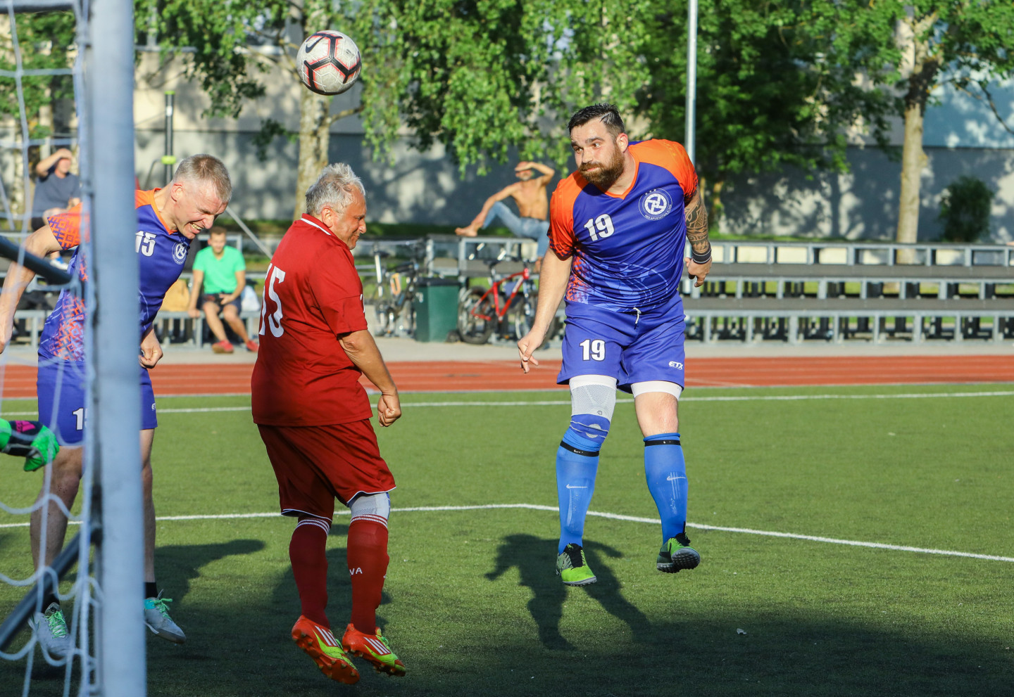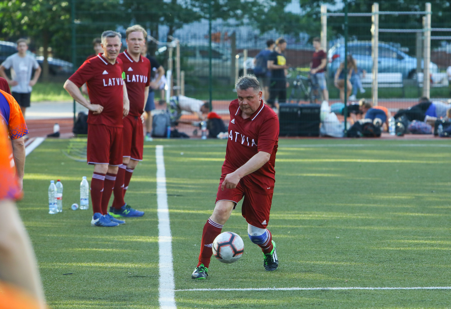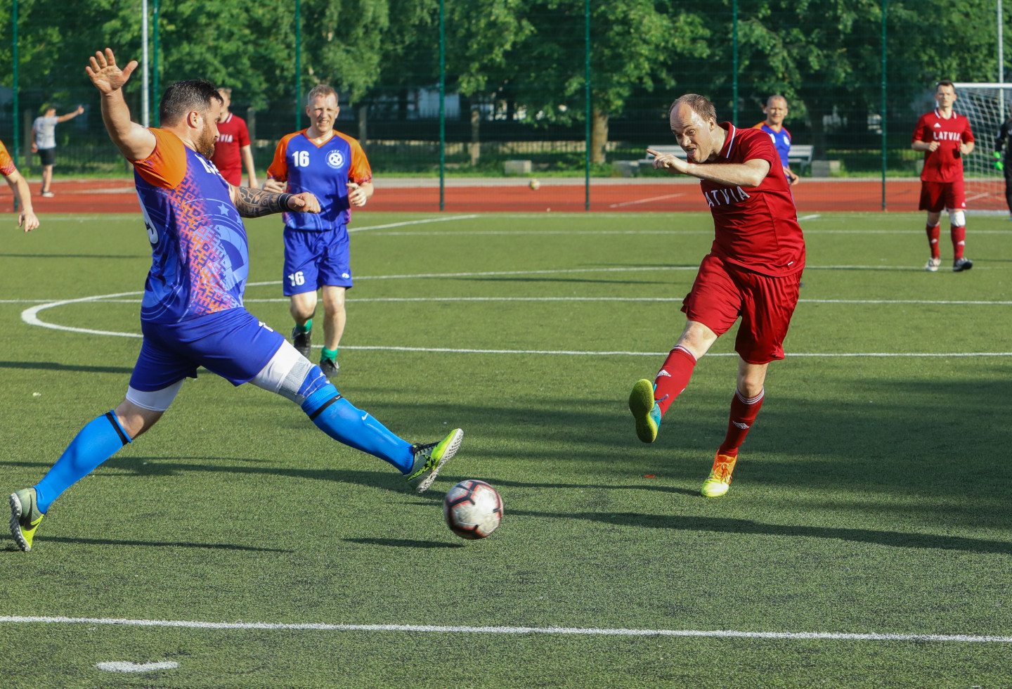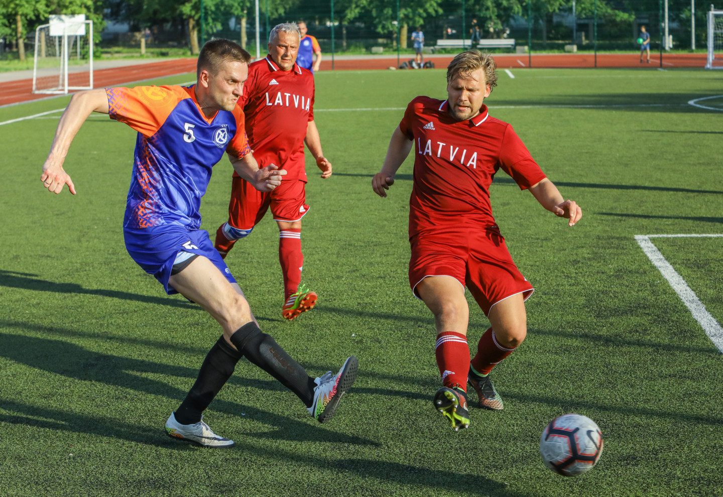 Rīgas Klasiskās ģimnāzijas futbola laukumā notika draudzības spēle starp Saeimas un Nacionālo bruņoto spēku Apvienotā štāba komandam.