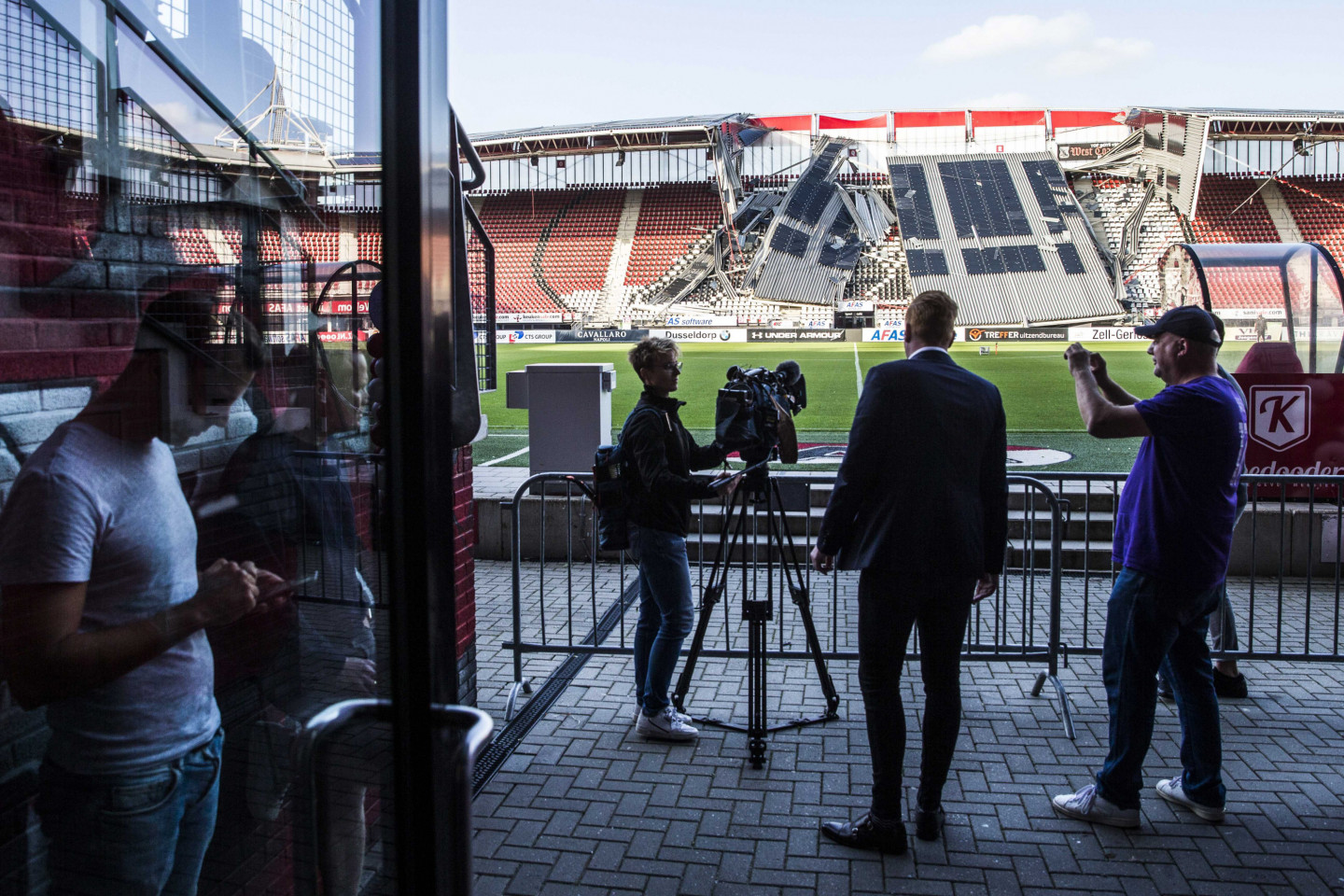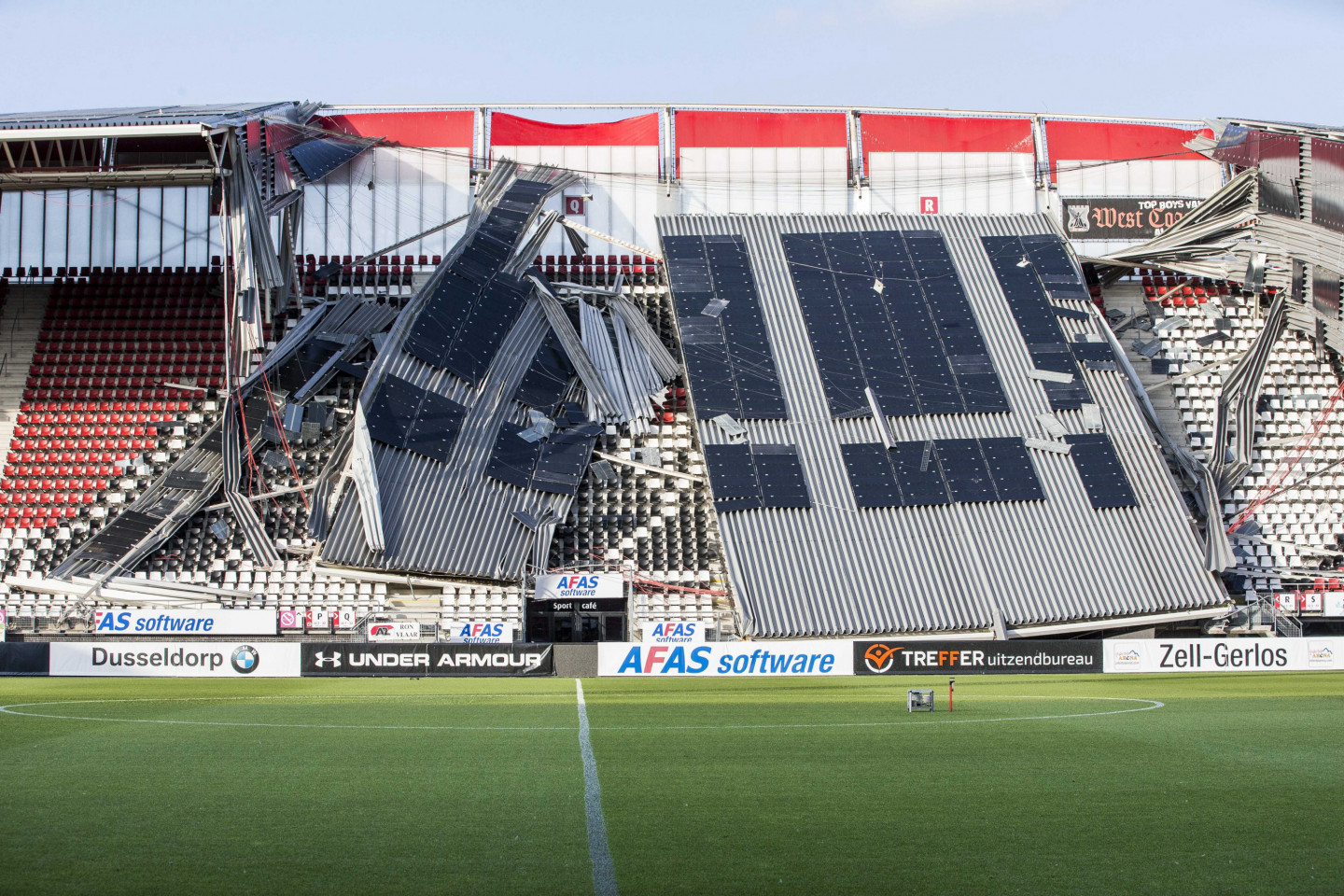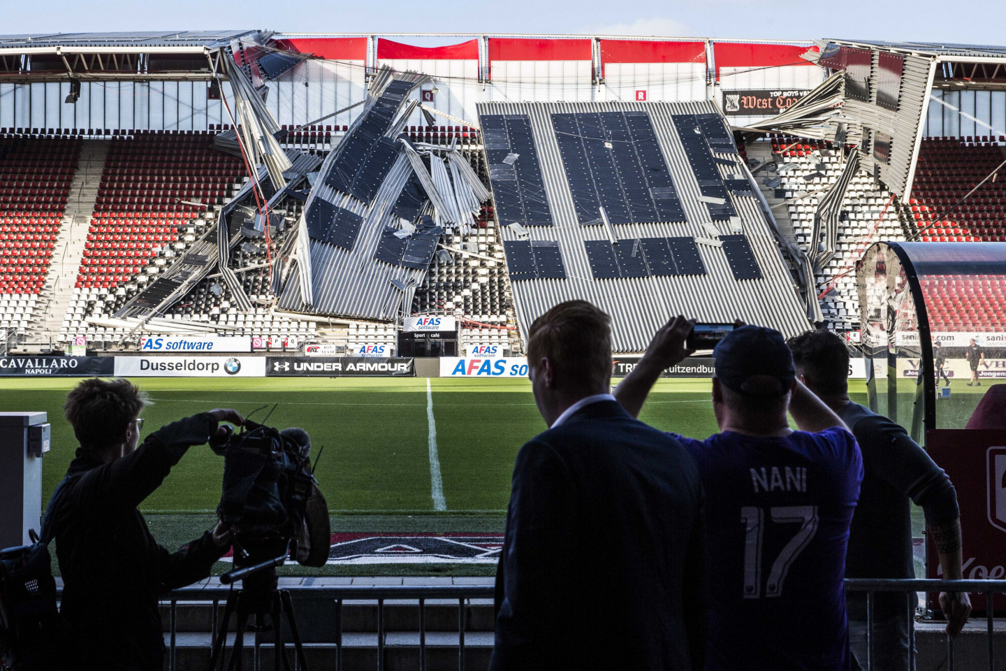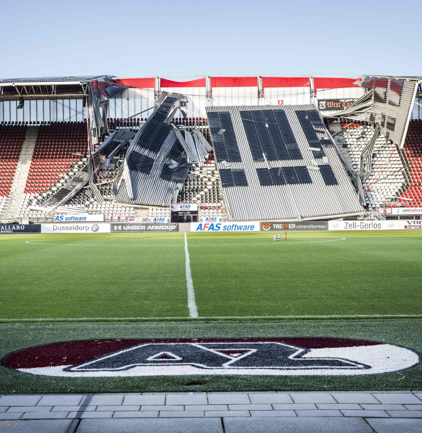 Sestdien Nīderlandes augstākās futbola līgas kluba "Alkmaar" stadionam iebruka jumts, kas pārsedz vienu no tribīnēm, taču negadījumā cietušo nav. Kā ziņo raidsabiedrība NOS, stadions ir slēgts un turpmākā tā ekspluatācija tiks vērtēta pirmdien. Plānots, ka tiks uzsākta izmeklēšana. "Stadionu var izmantot tikai tad, kad tas ir drošs. Šobrīd tā tas nav," NOS citē kluba direktora Roberta Ēnhorna teikto. Alkmāras vienībai nākamajā nedēļā paredzētas divas mājas spēles. Ceturtdien "Akmaar" komandai UEFA Eiropas līgas mačā jātiekas ar Ukrainas klubu "Mariupol", bet trīs dienas vēlāk jāaizvada spēles vietējā čempionātā. "Akmaar" kluba stadions durvis vēra 2006.gadā. Kā vēsta NOS, uz tā jumta uzstādīti 1700 saules paneļi un jau vienreiz, 2016.gadā, tas iebruka. "Alkmaar" ir divkārtēja Nīderlandes čempione, savu līdz šim pēdējo titulu izcīnot pirms desmit gadiem. Iepriekšējā sezonā šī komanda Nīderlandes meistarsacīkstēs ieņēma ceturto vietu. 2011.gada jūlijā, iebrūkot "Twente" kluba stadiona jumtam, gāja bojā divi cilvēki.