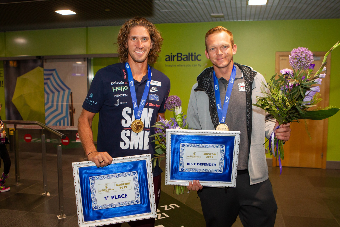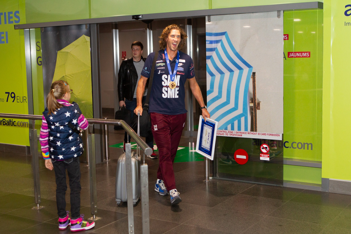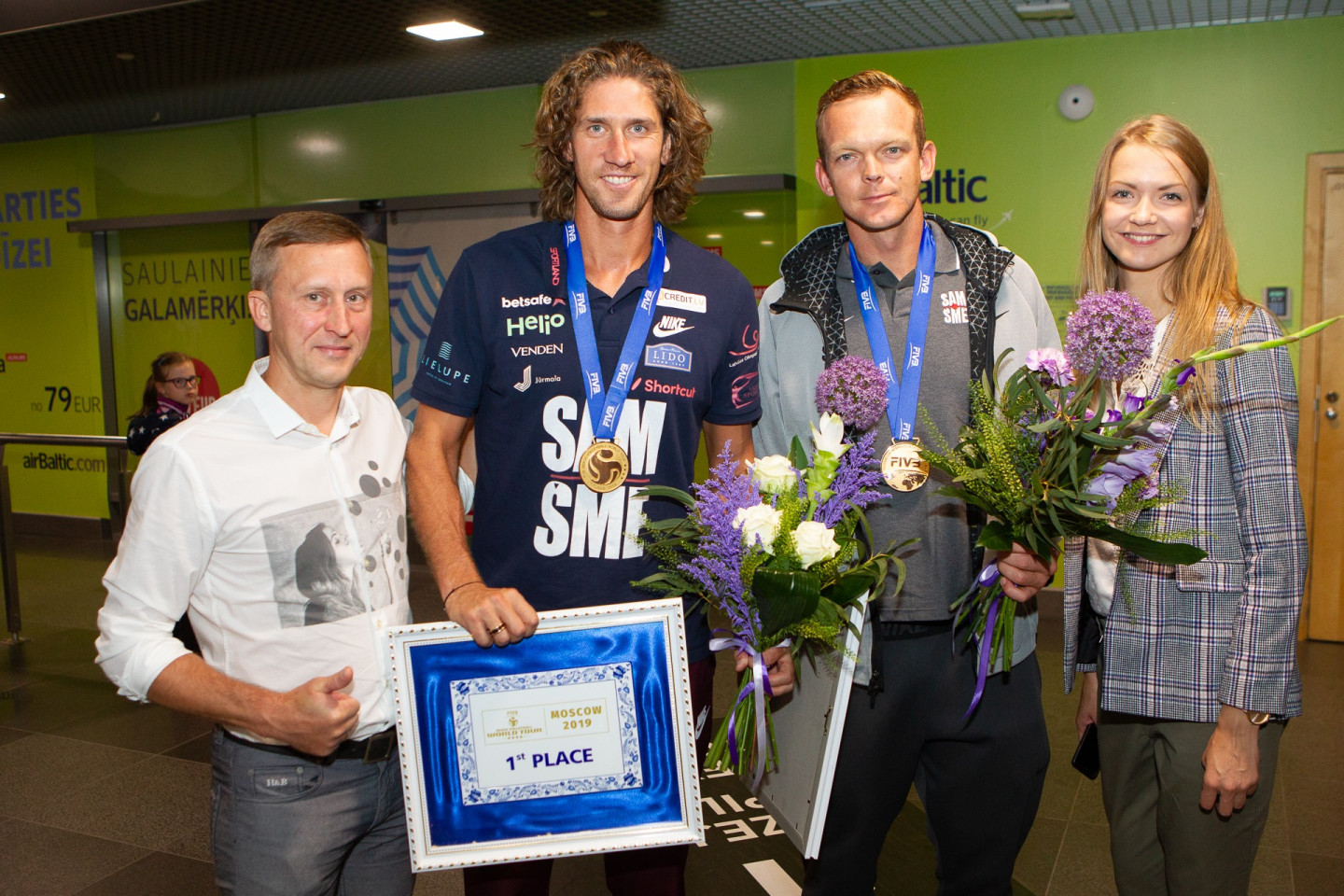 Jau ziņots, ka vakar Latvijas pludmales volejbolisti Aleksandrs Samoilovs/Jānis Šmēdiņš Maskavā triumfēja Pasaules tūres četru zvaigžņu turnīrā, tiekot pie sava pirmā titula šajā sezonā. Latvijas Volejbola Federācija sagaidīja sportistus Rīgas lidostā.
