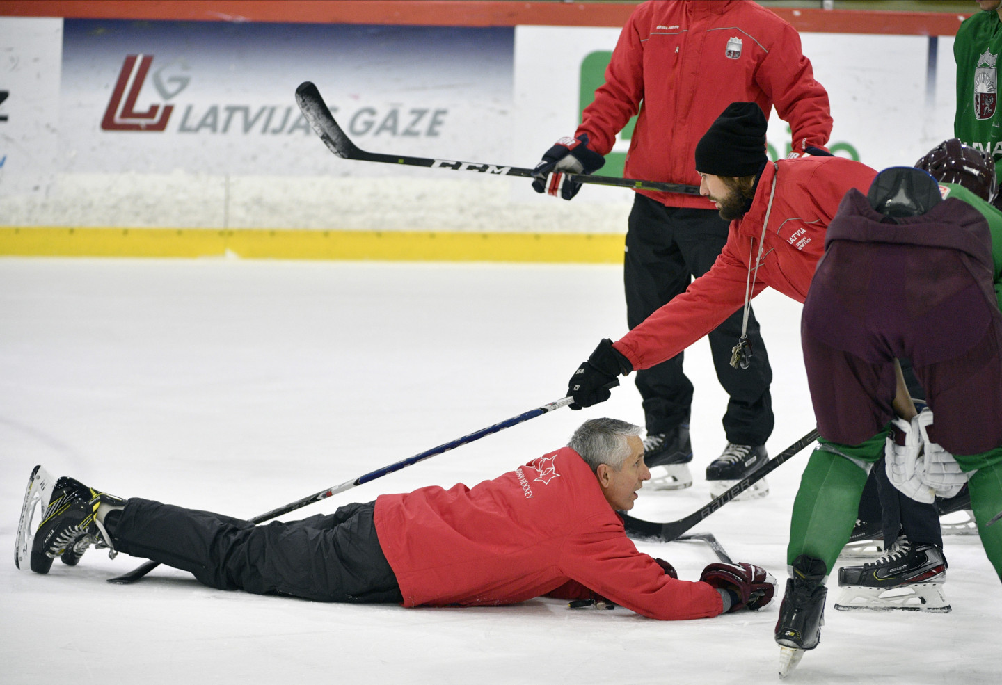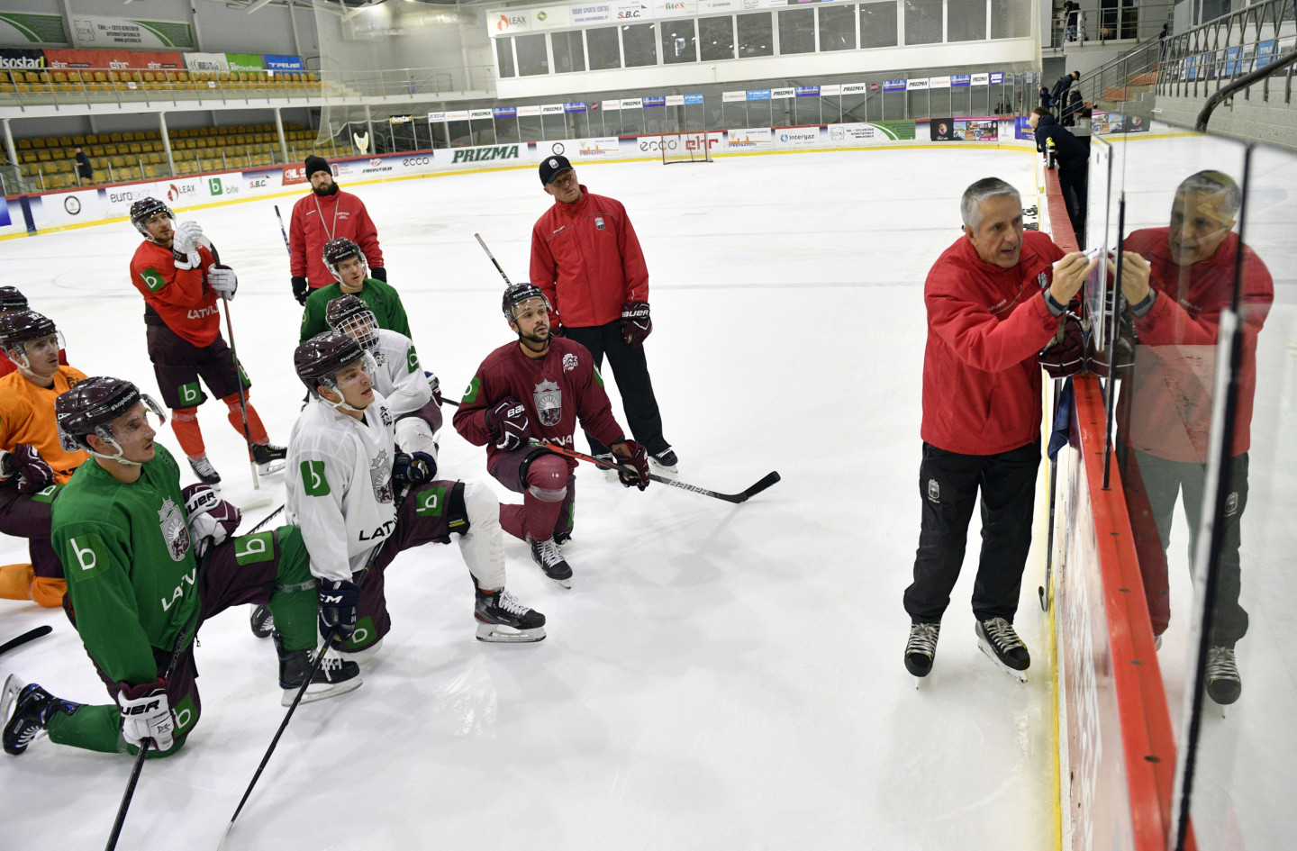 Pirmdien tika aizvadīts Latvijas hokeja izlases treniņš pirms "Turkish Airlines" Četru nāciju turnīra Liepājā.