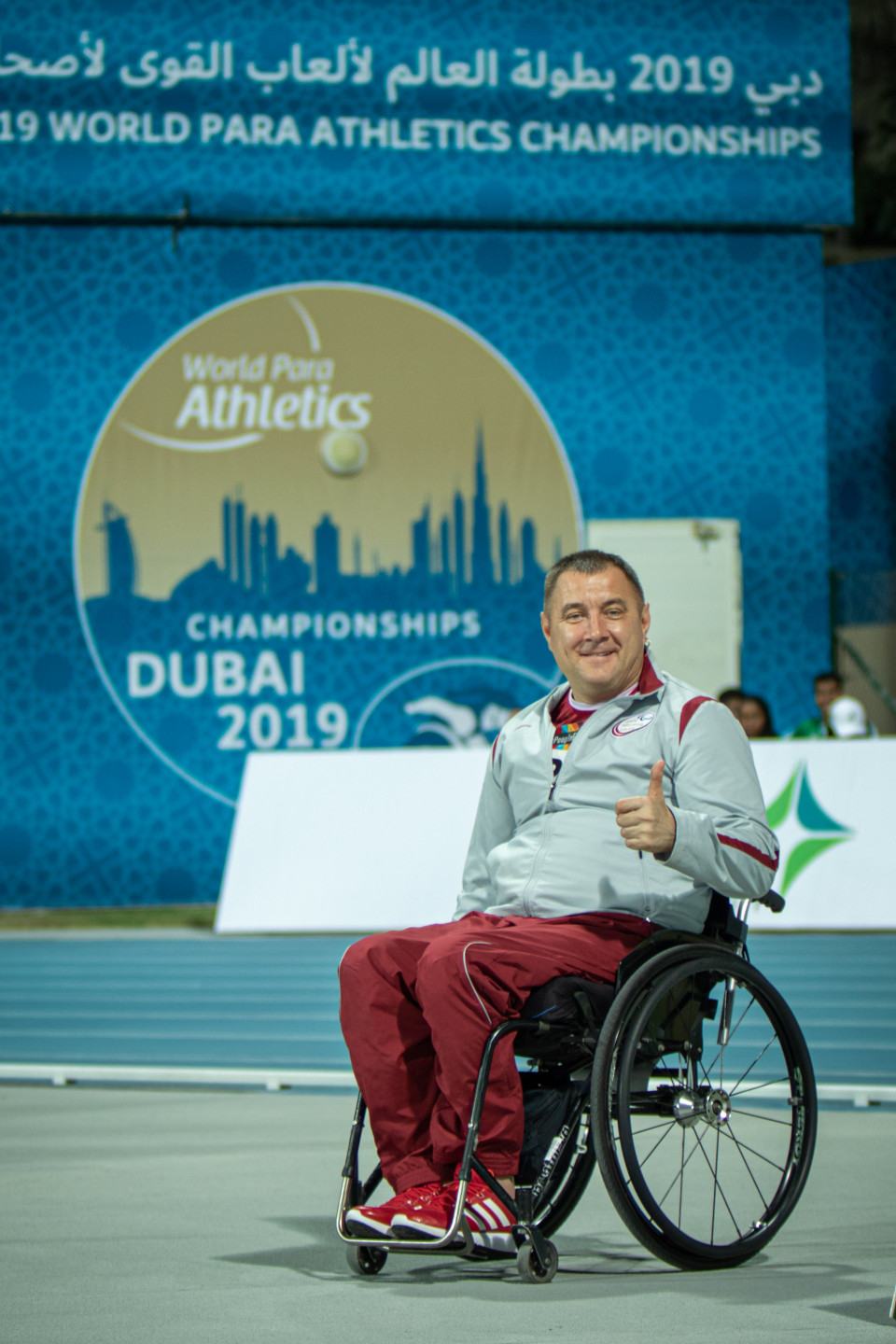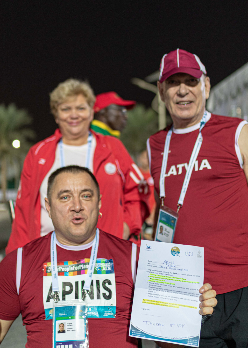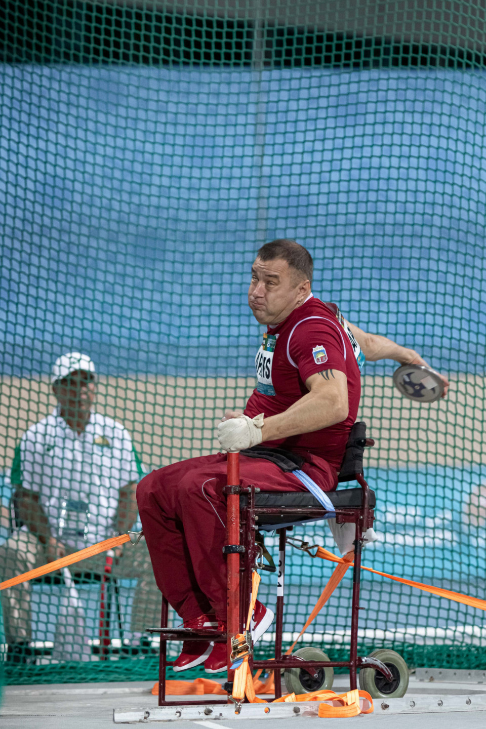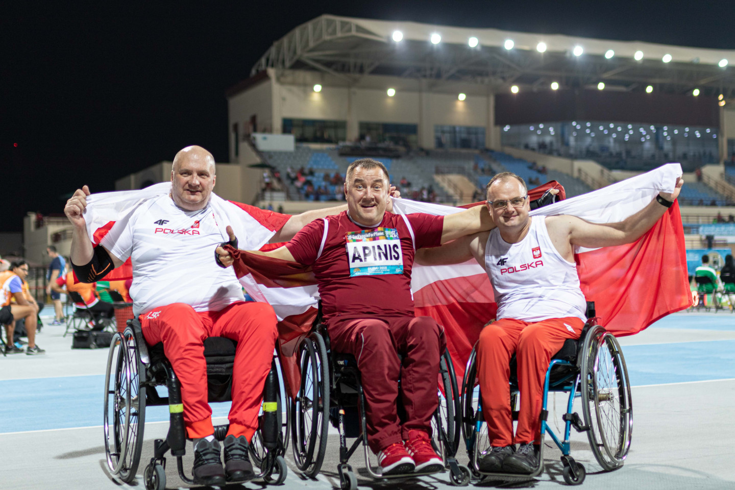 Latvijas paralimpietis Aigars Apinis Pasaules čempionātā paravieglatlētikā Dubaijā izcīnījis zelta medaļu diska mešanā. Deviņu fināla sportistu konkurencē viņš aizmetis disku vistālāk – 21,05 metrus. Šī ir jau astotā zelta medaļa diska mešanā, ko Aigars Apinis pasaules čempionātos un Paralimpiskajās spēlēs kopš 2000. gada izcīnījis Latvijai. "Šis bija viens no grūtākajiem pasaules čempionātiem garās sezonas dēļ – pirms sacensībām bija intensīvs un ilgstošs gatavošanās periods. Paralimpiešiem mešanas disciplīnās šādās garās sezonās sagatavošanos traucē arī laika apstākļi, jo Latvijā cilvēkiem ar invaliditāti nav piemērotas vietas treniņiem rudens un ziemas sezonā. Taču kopumā es jūtu ļoti lielu gandarījumu par padarīto un sasniegto rezultātu. Esmu patiesi priecīgs, ka varēsim apbalvošanā atkal dzirdēt Latvijas himnu," saka pasaules čempions Aigars Apinis. "Mēs, visa Latvija, varam patiesi lepoties ar Aigaru, viņa neatlaidību, darbaspējām un sasniegumiem. Viņš kārtējo reizi ir apstiprinājis savu čempiona titulu. Ceturtdien sacensībās un šodien apbalvošanas ceremonijā Latvijas vārdu dzirdēs vairāk nekā 1400 čempionāta dalībnieku un skatītāju, un vēl vairāki miljoni skatītāju pie TV ekrāniem, sociālajos tīklos un citos medijos," saka Latvijas Paralimpiskās komitejas prezidente Daiga Dadzīte. Apbalvošanas ceremonija Dubaijā notika šodien plkst. 15.15 (pēc Latvijas laika).